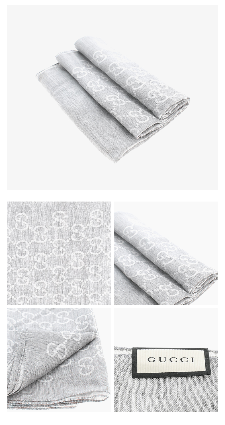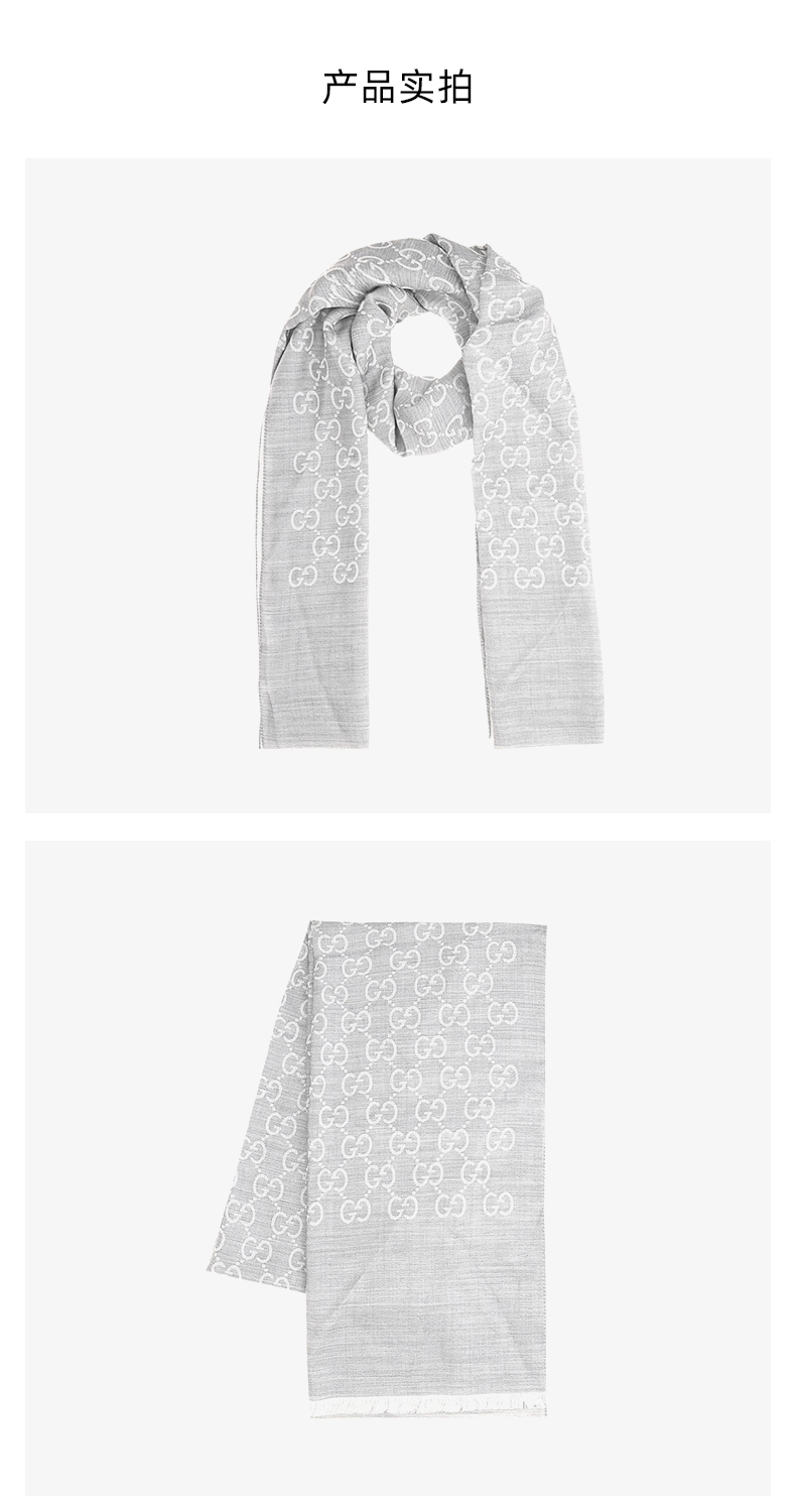 GUCCI 女士羊毛真丝围巾 165904 浅灰色