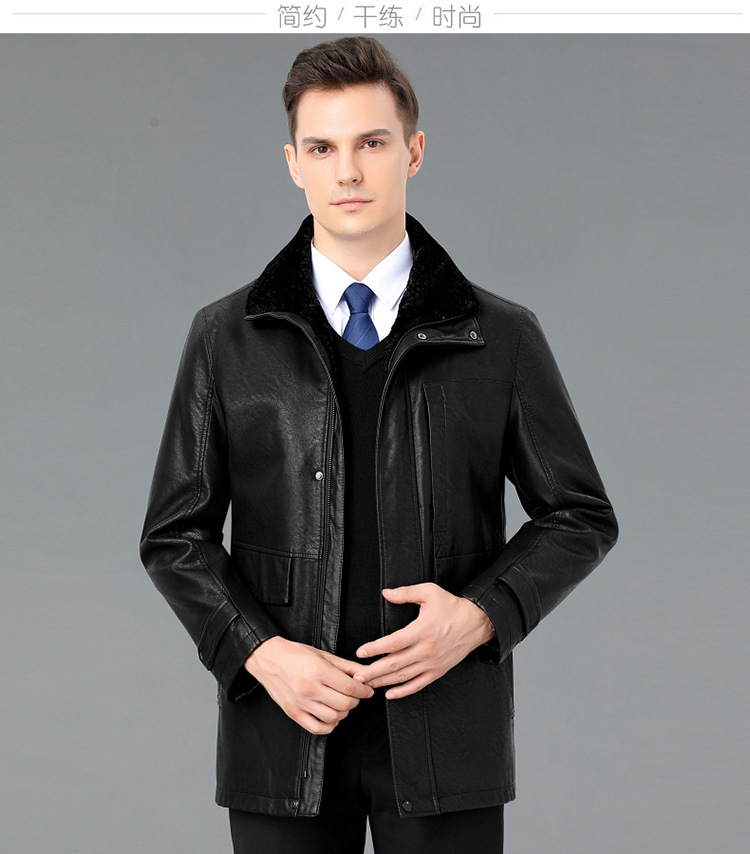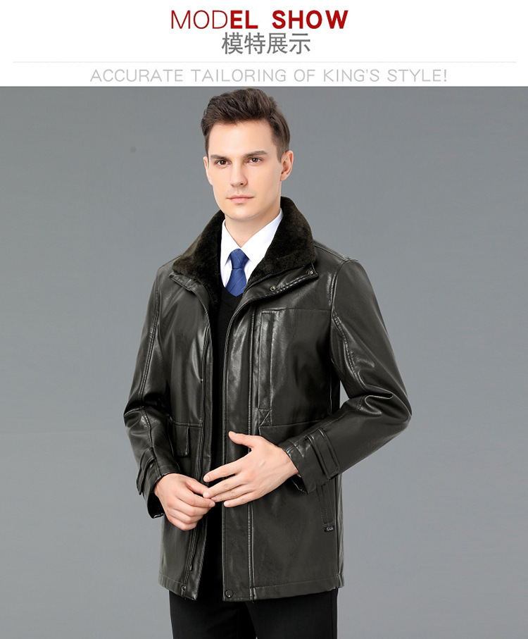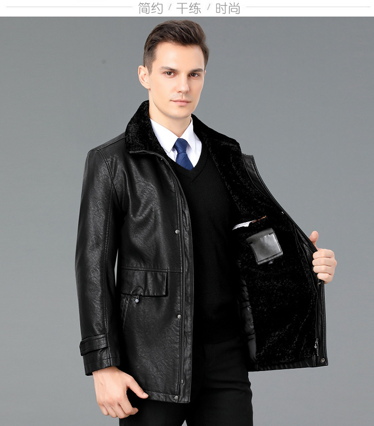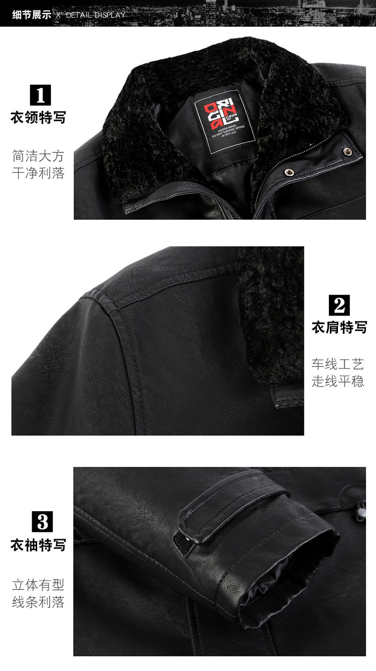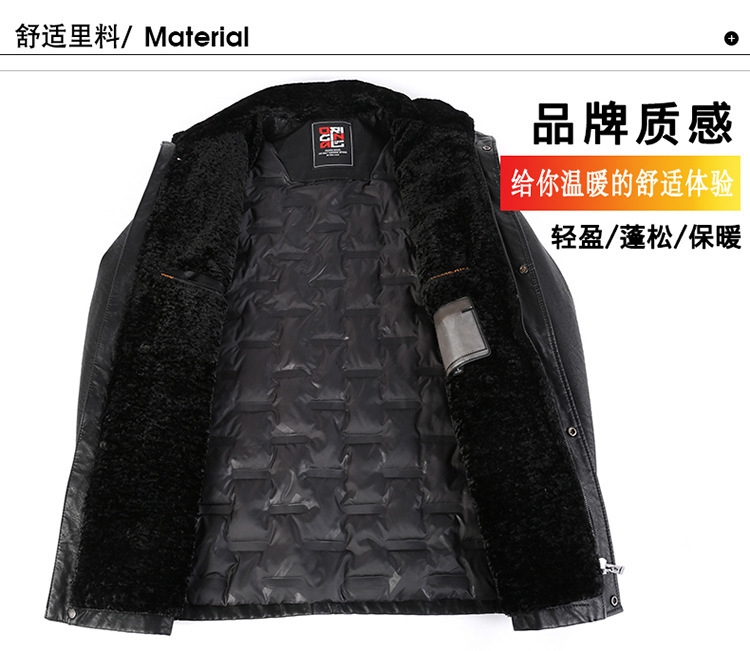 2021新款秋冬季皮毛一体男休闲皮衣加厚羊羔绒翻领男士皮外套