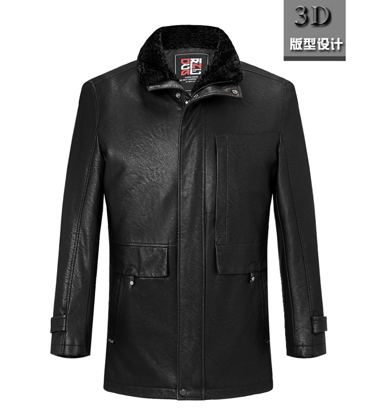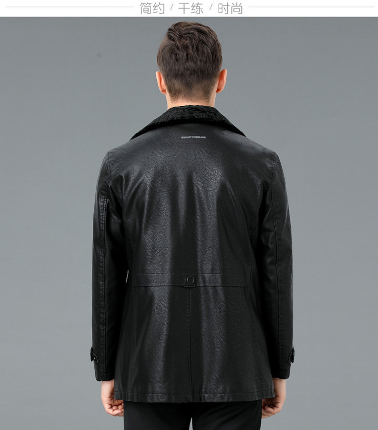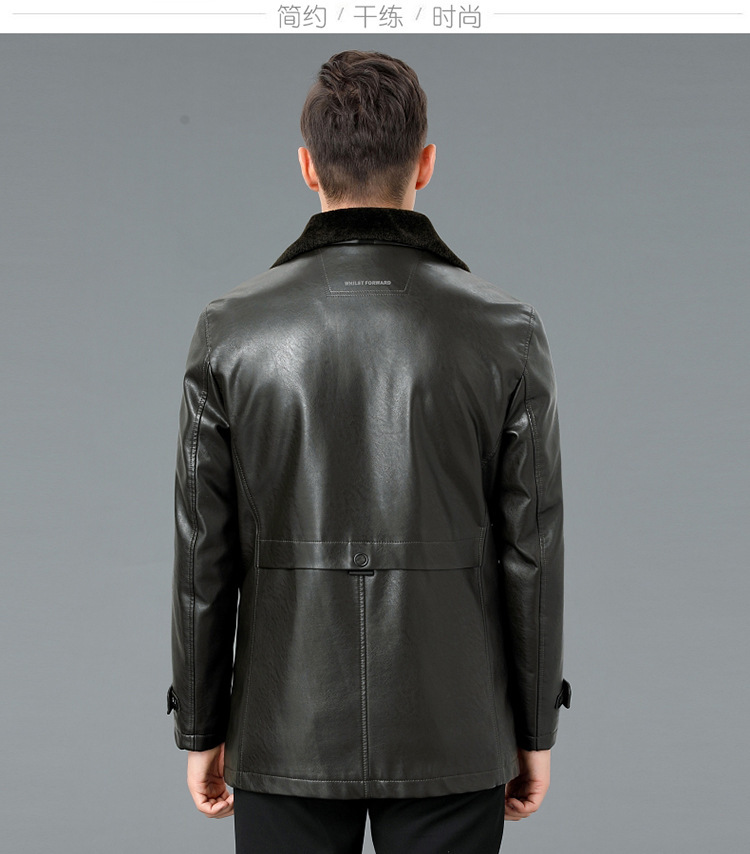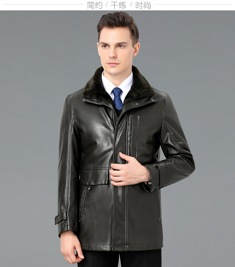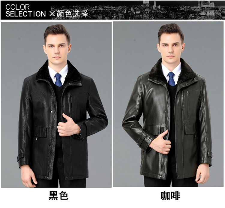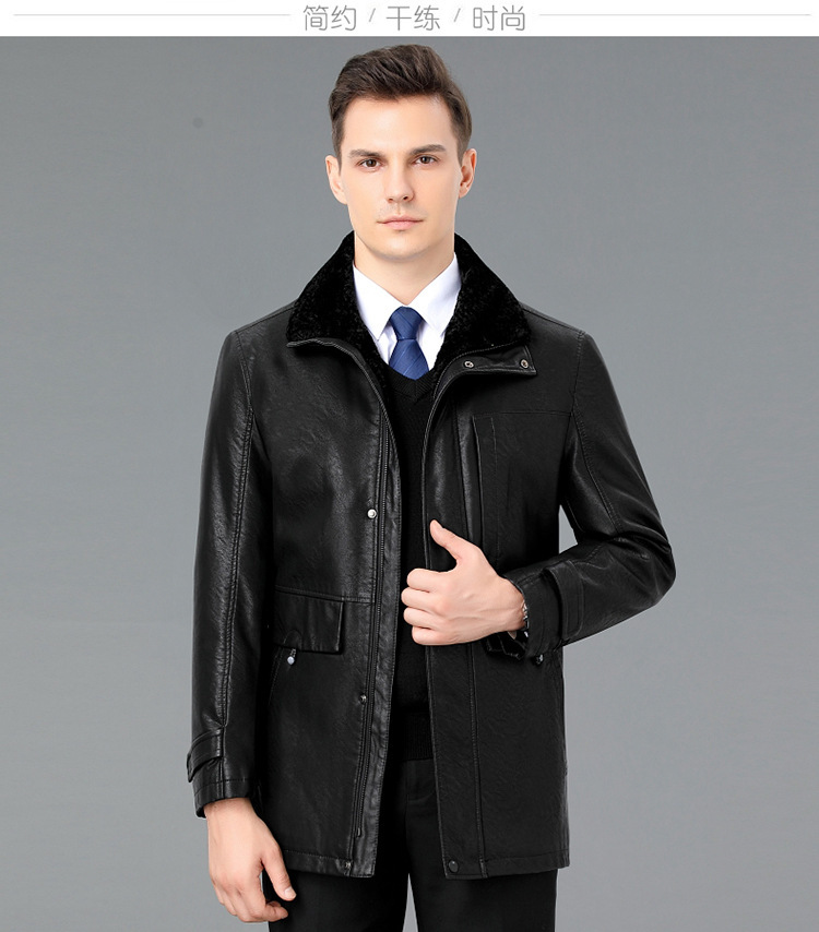 2021新款秋冬季皮毛一体男休闲皮衣加厚羊羔绒翻领男士皮外套
