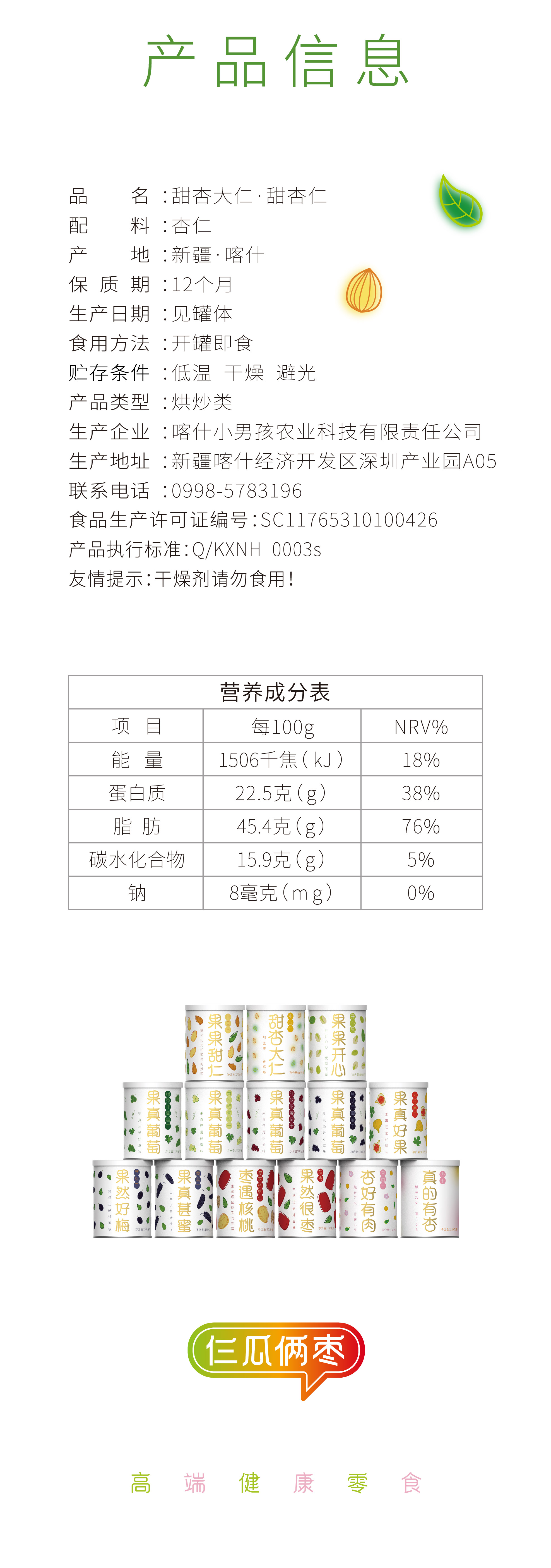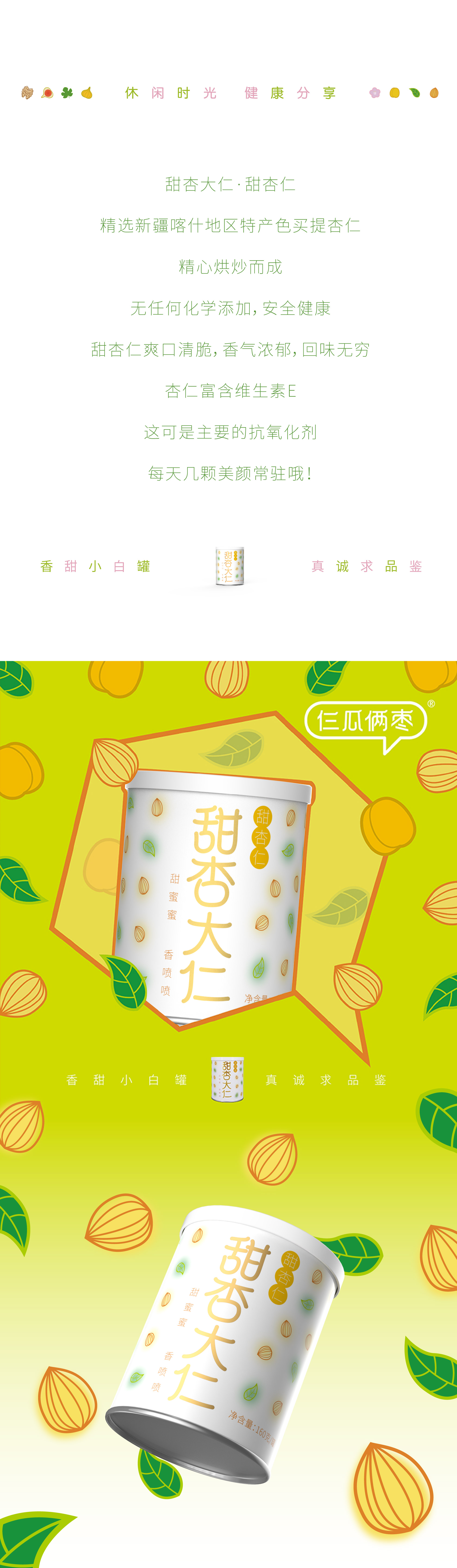 仨瓜俩枣—甜杏大仁 · 杏仁 160g/罐