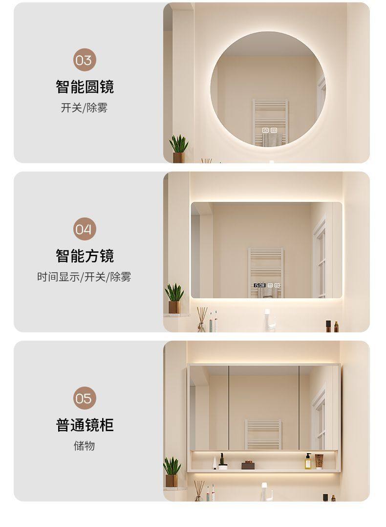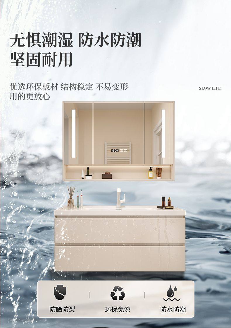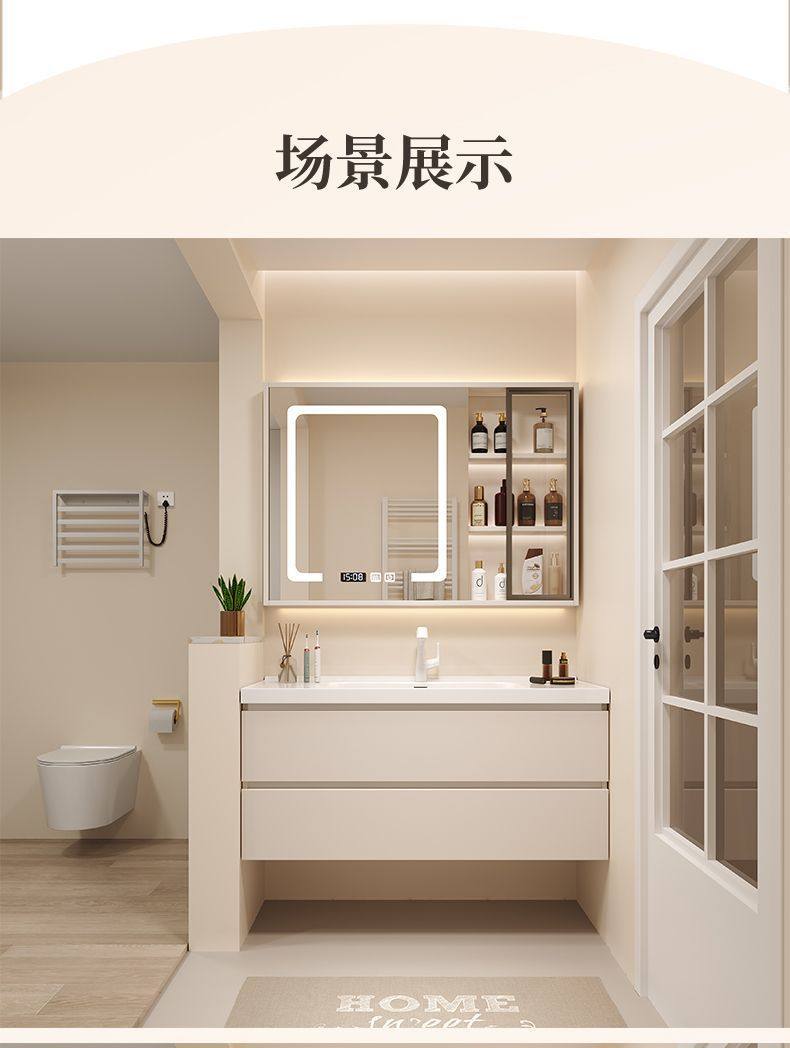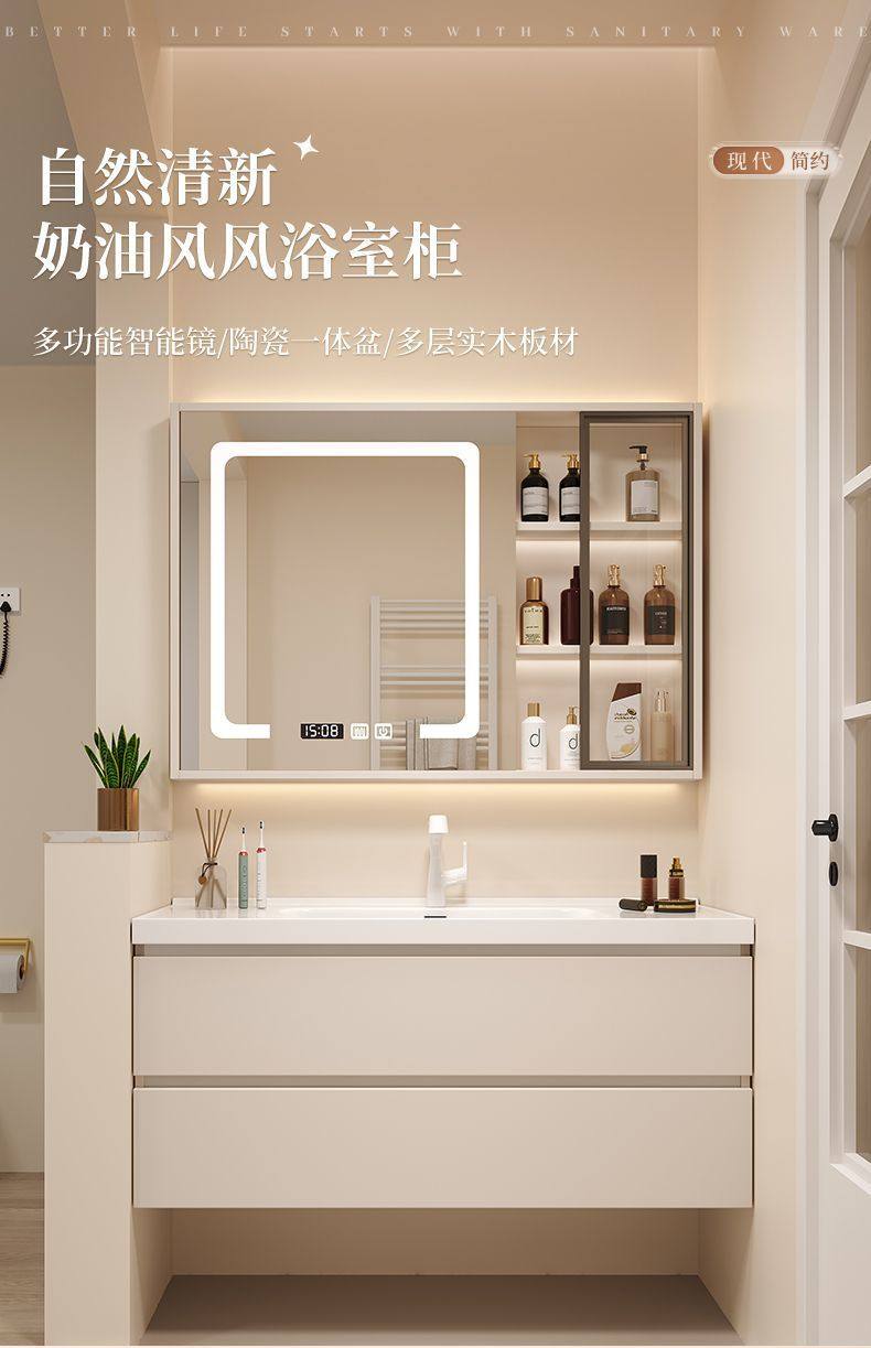 镜柜多层洗脸盆陶瓷家用实木小户型卫浴奶油盆智能组合一体浴室柜