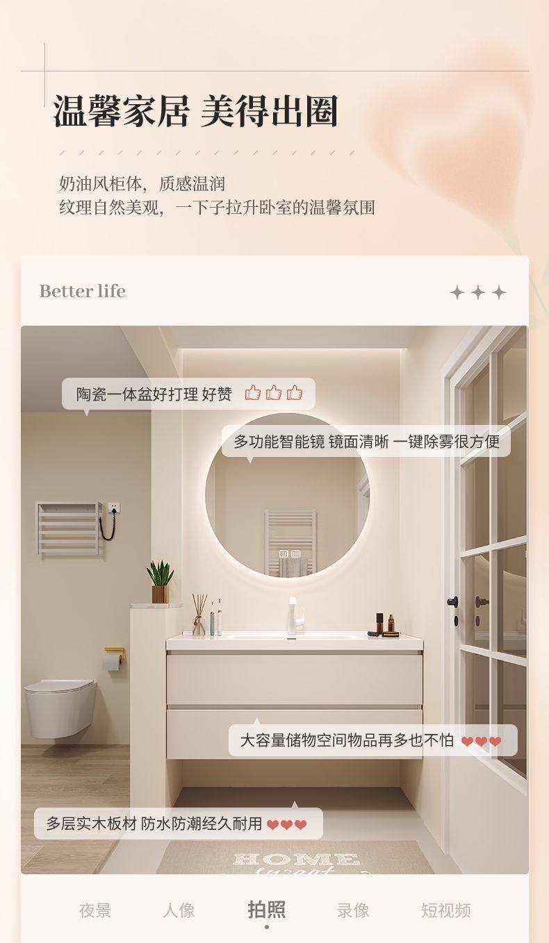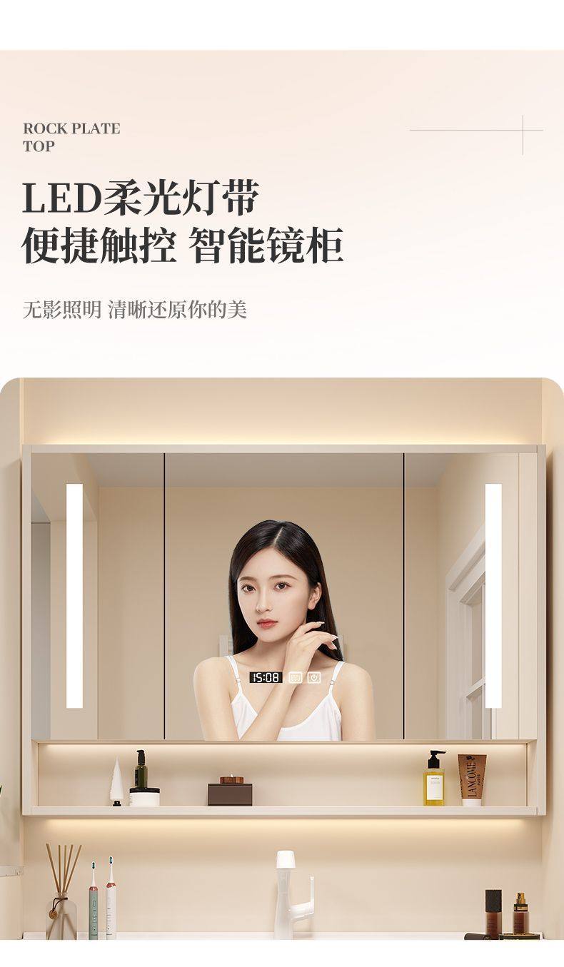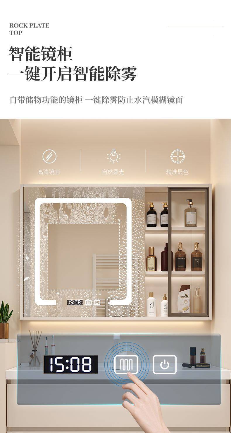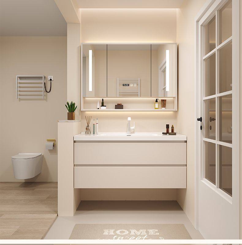 镜柜多层洗脸盆陶瓷家用实木小户型卫浴奶油盆智能组合一体浴室柜
