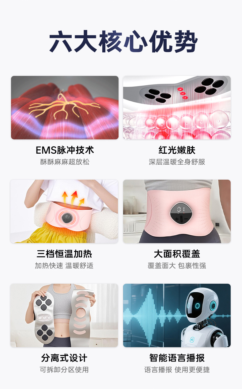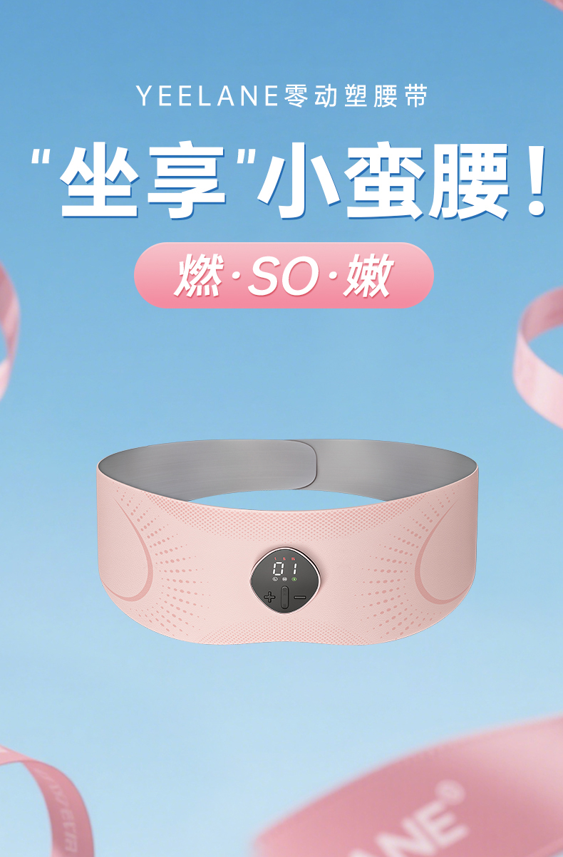 【坐享小蛮腰】YEELANE零动塑腰带LS31 红光嫩肤 3D环绕收腰 EMS脉冲技术 三档恒温加热 大面积覆盖 分离式设置 智能语音播报 25分钟智能定时