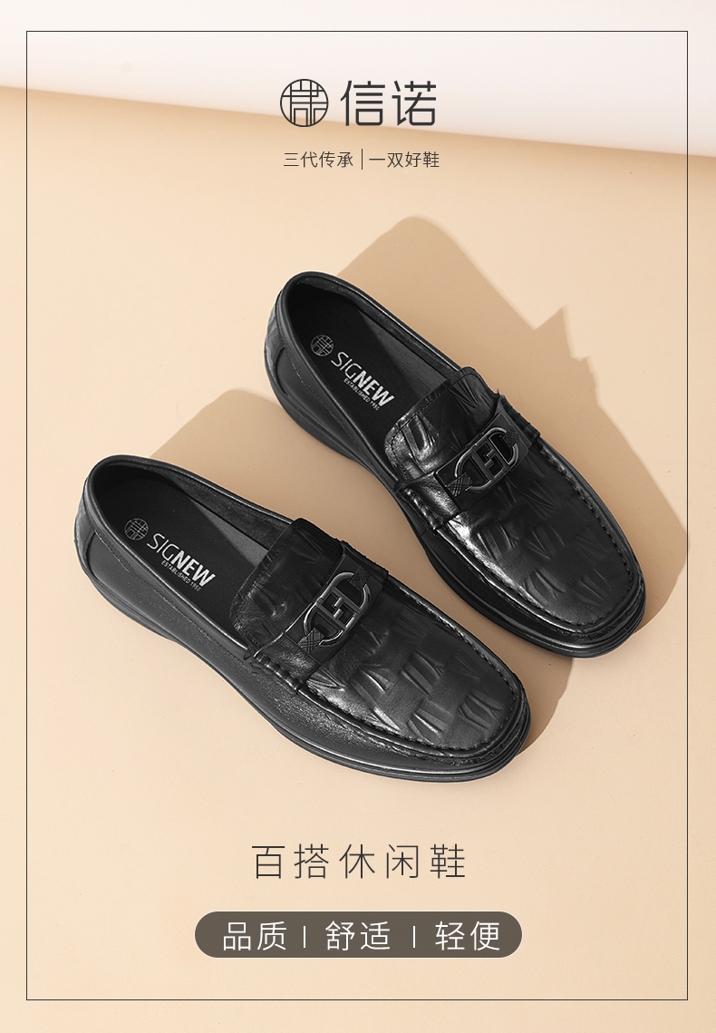 信诺真皮男士豆豆鞋2025新款春季商务休闲乐福鞋中年爸爸鞋男皮鞋N5C115-16