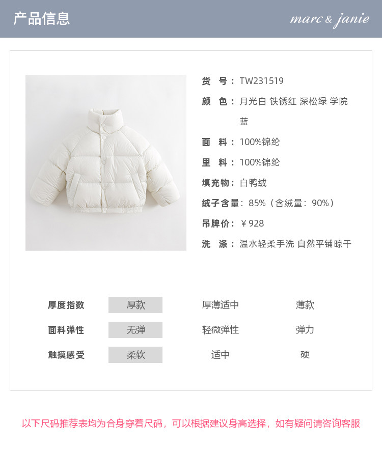 【三防】马克珍妮冬装新款男女童美式校园加厚面包服羽绒服231519