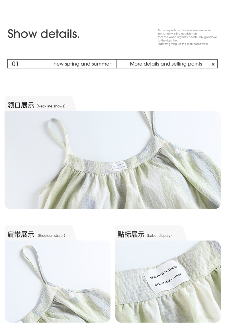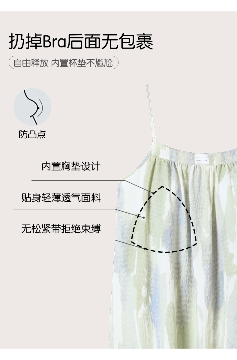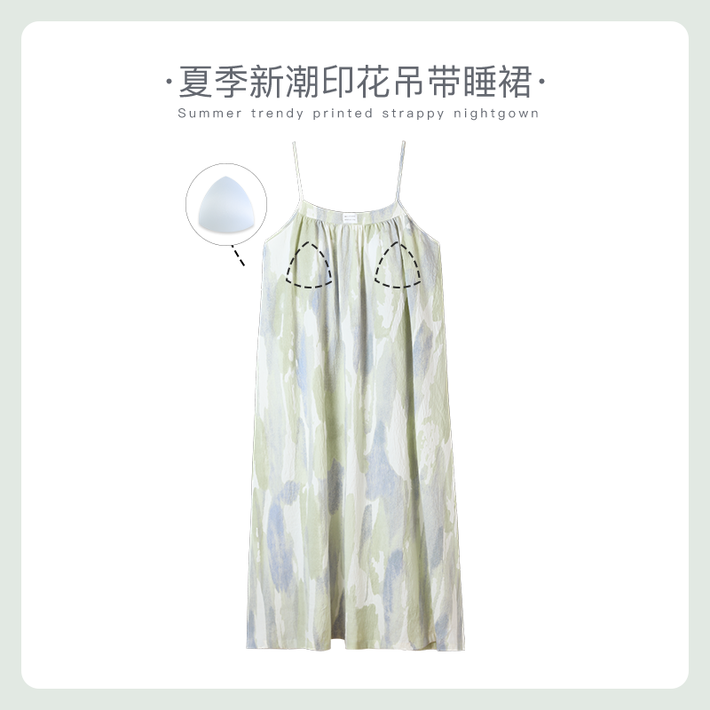 可人儿小众设计师新款奥力绵女士睡衣夏季吊带少女带胸垫睡裙可外