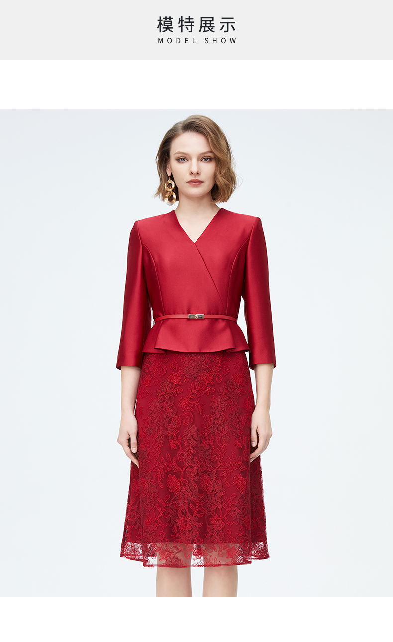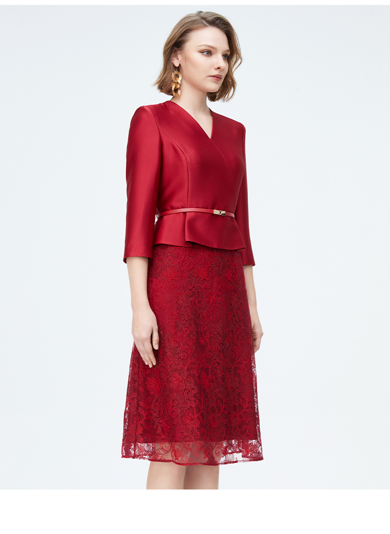 皮尔卡丹女装时尚轻仪式假两件拼接连衣裙P4108E4010R2