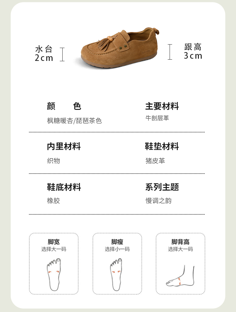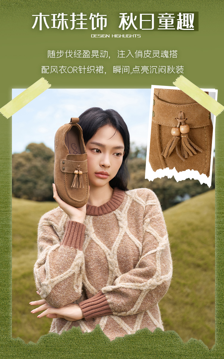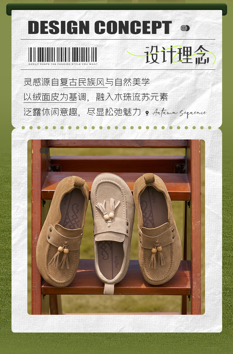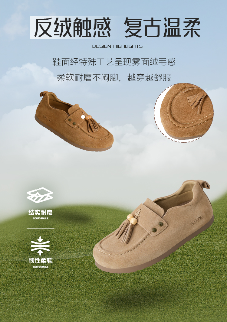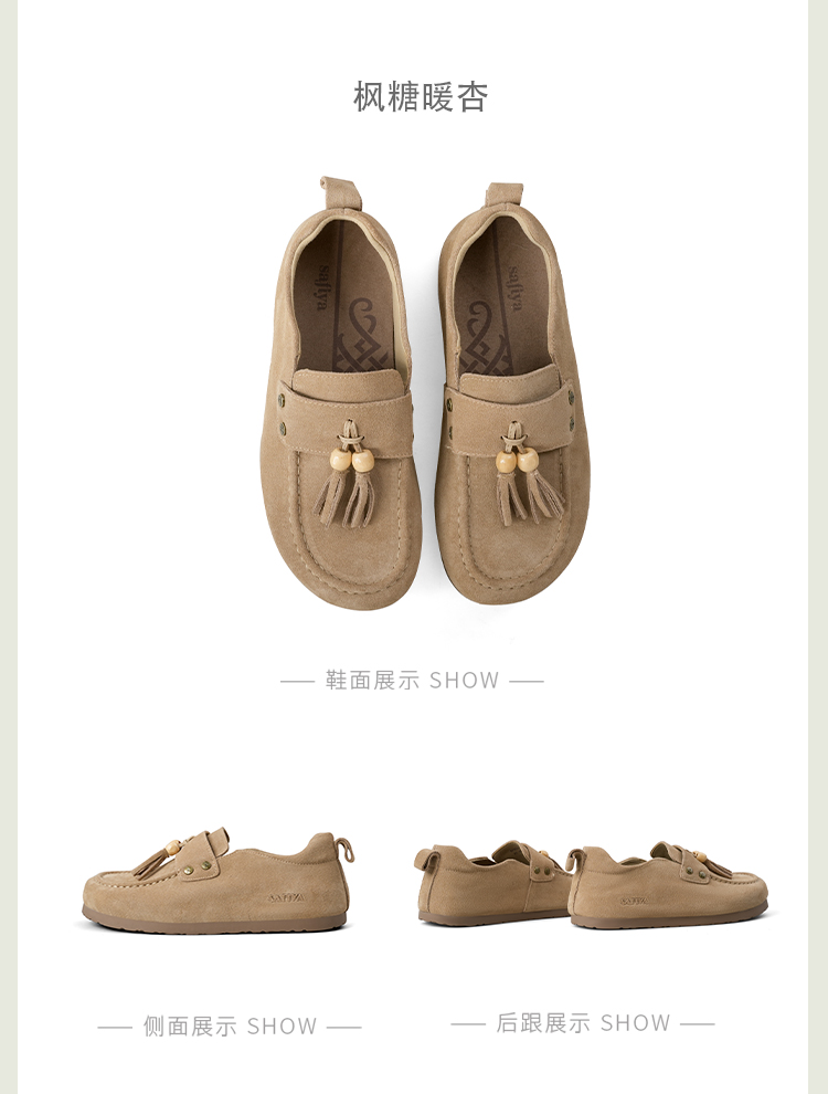 Safiya/索菲娅2025流苏外穿复古反绒百搭不累脚休闲平底勃肯单鞋SFD3112079