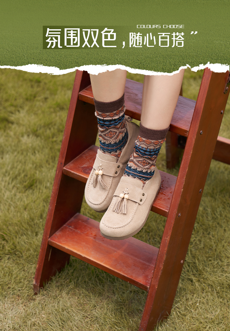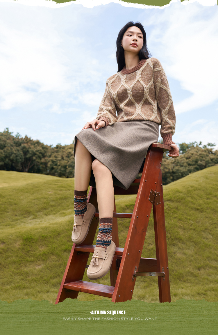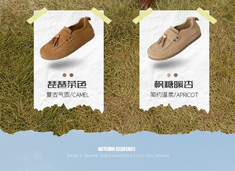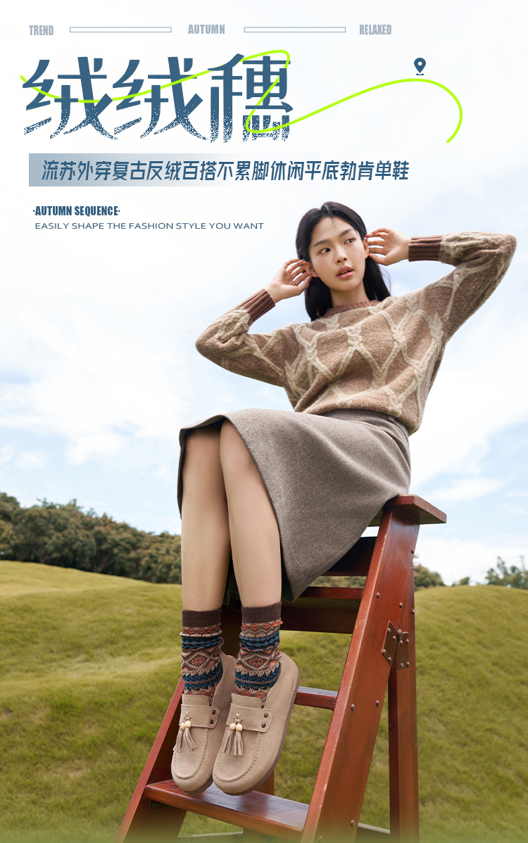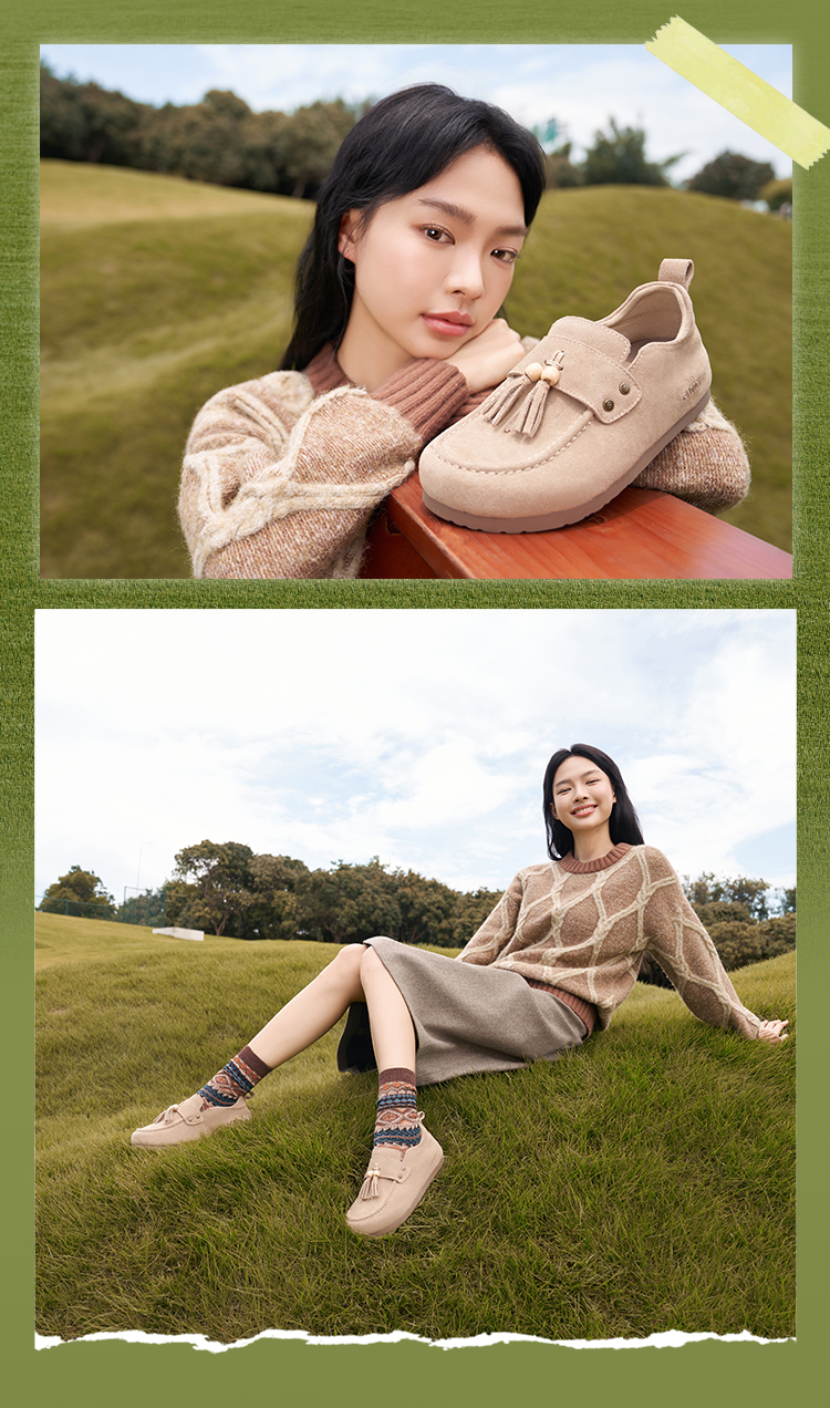 Safiya/索菲娅2025流苏外穿复古反绒百搭不累脚休闲平底勃肯单鞋SFD3112079