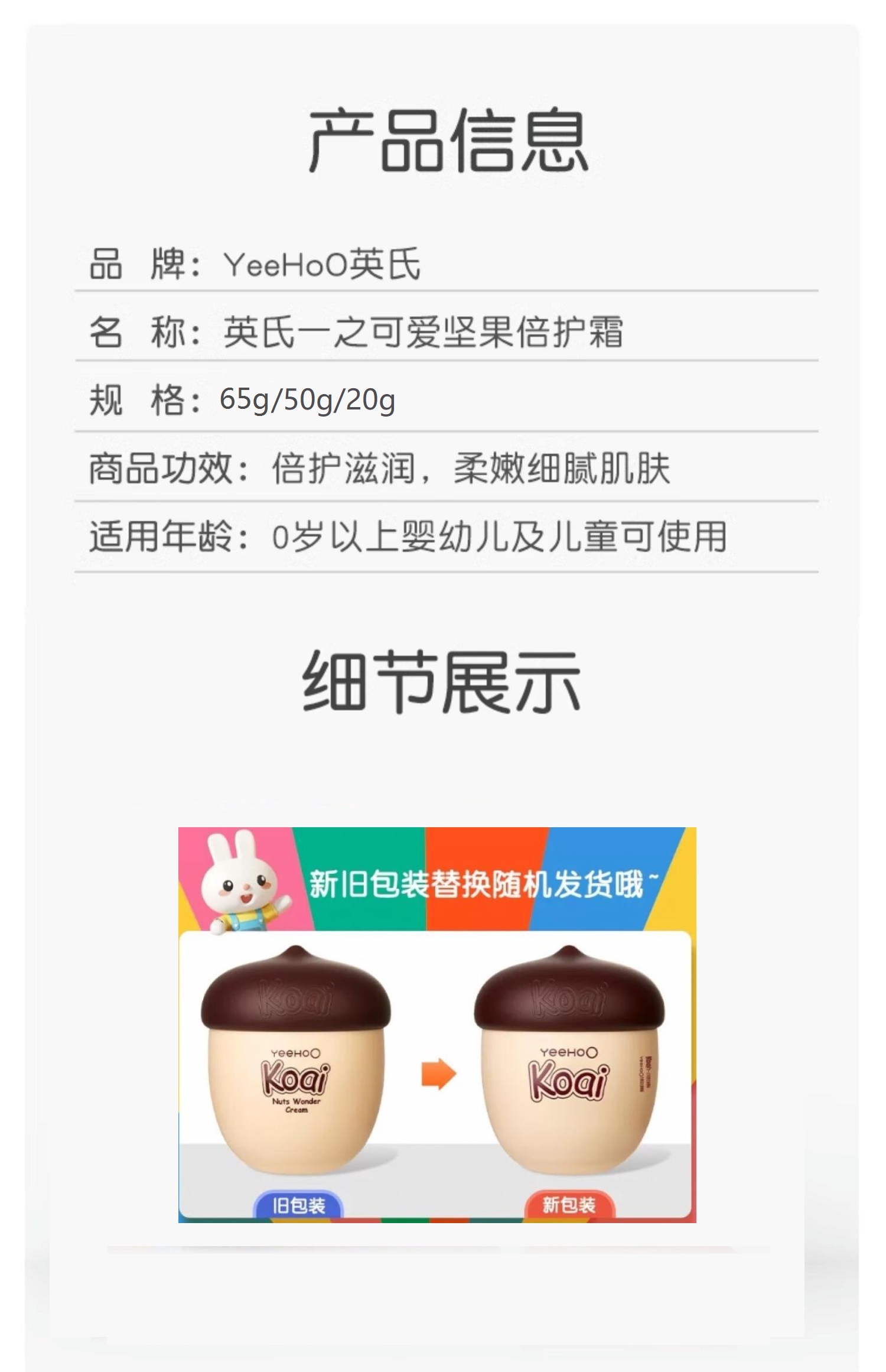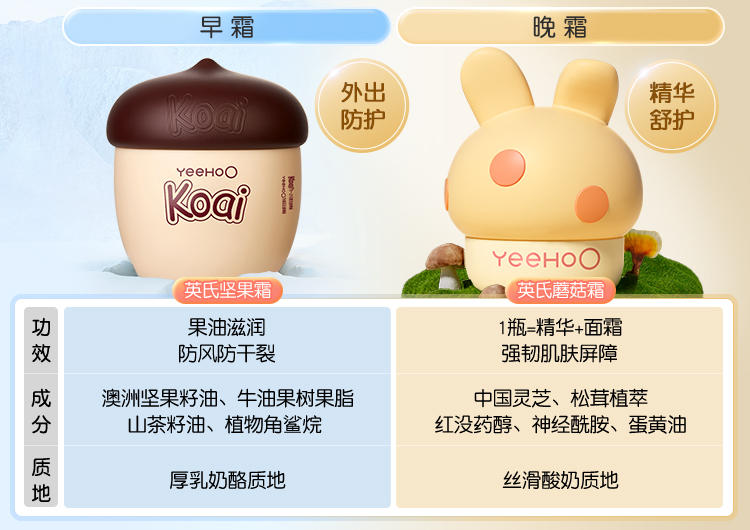 YeeHoO英氏坚果霜英氏蘑菇霜儿童面霜婴儿秋冬宝宝保湿霜滋润补水多效身体乳润肤保湿霜
