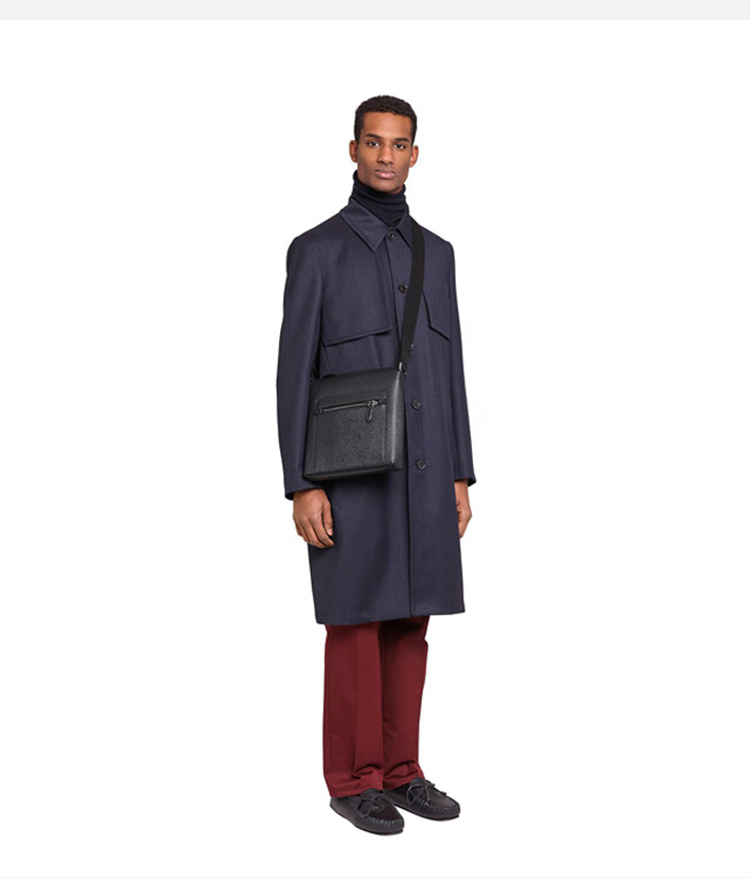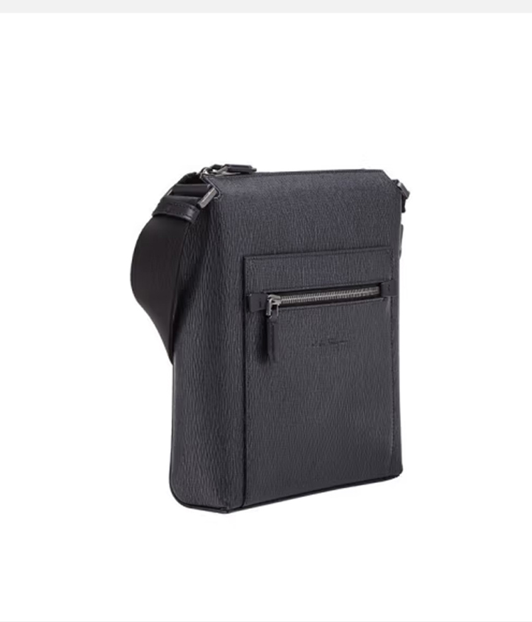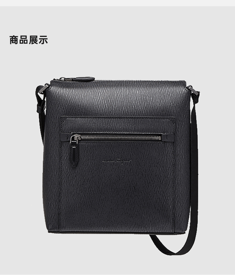FERRAGAMO 菲拉格慕 男士锤纹小牛皮字母徽标压花单肩包 黑色 24 A516 0732518
