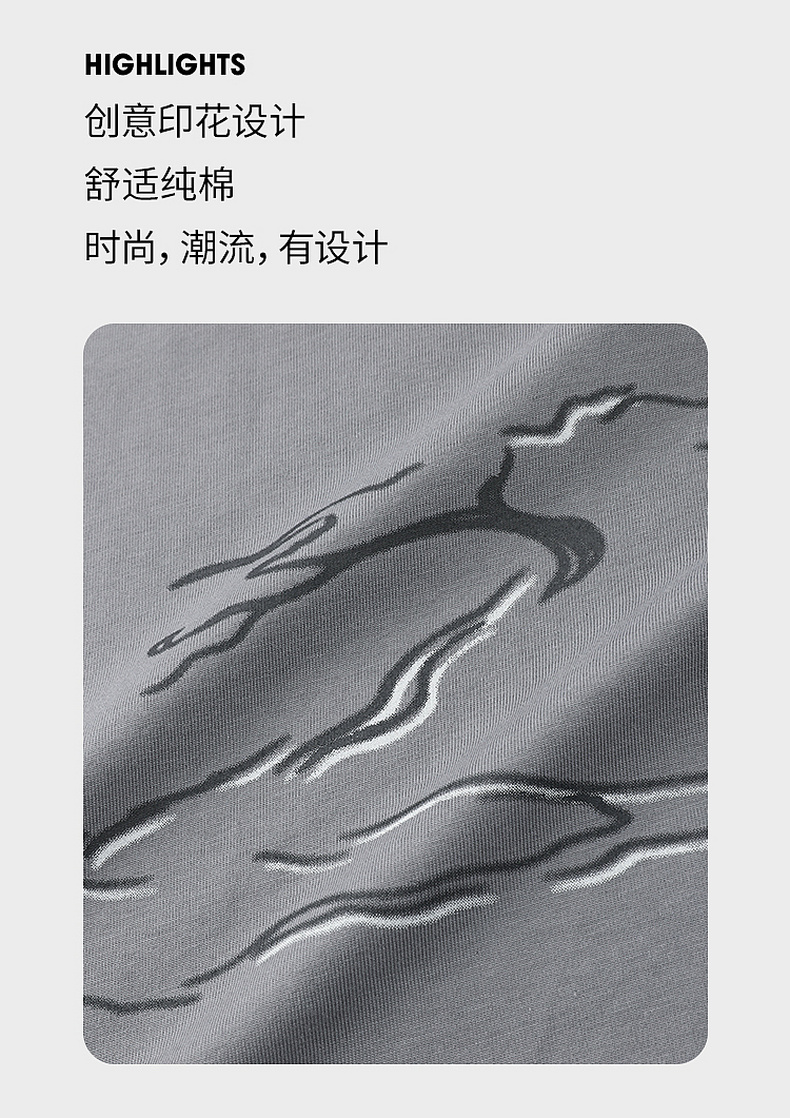 GXG男装【100%棉】夏季卡通动物印花男士百搭圆领短袖T恤K&C