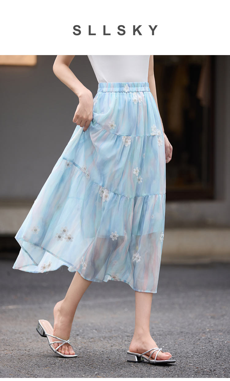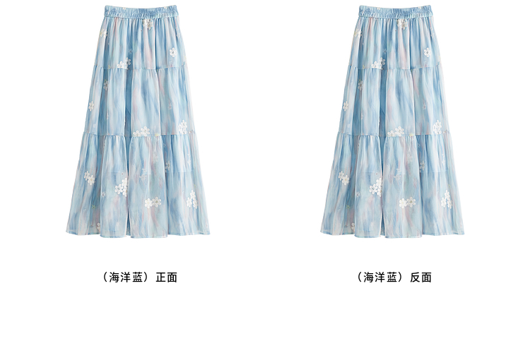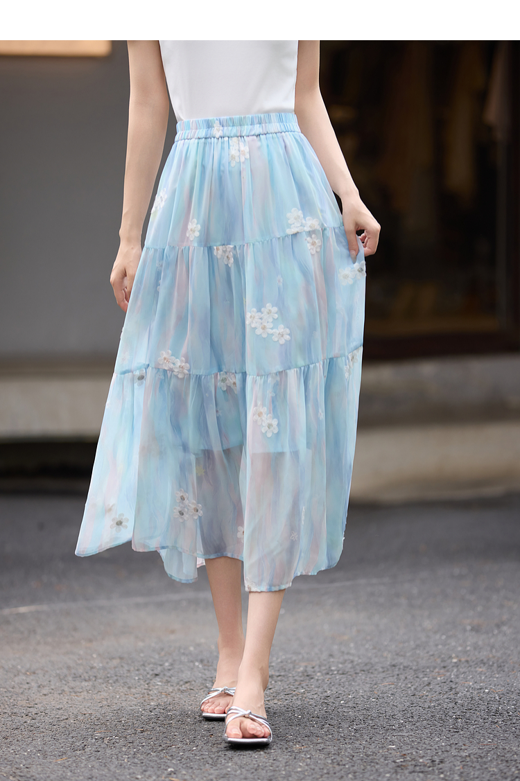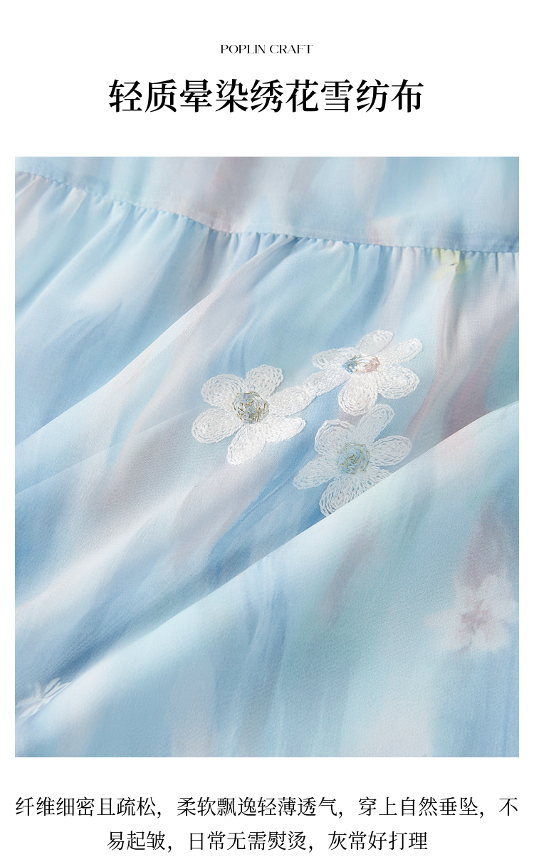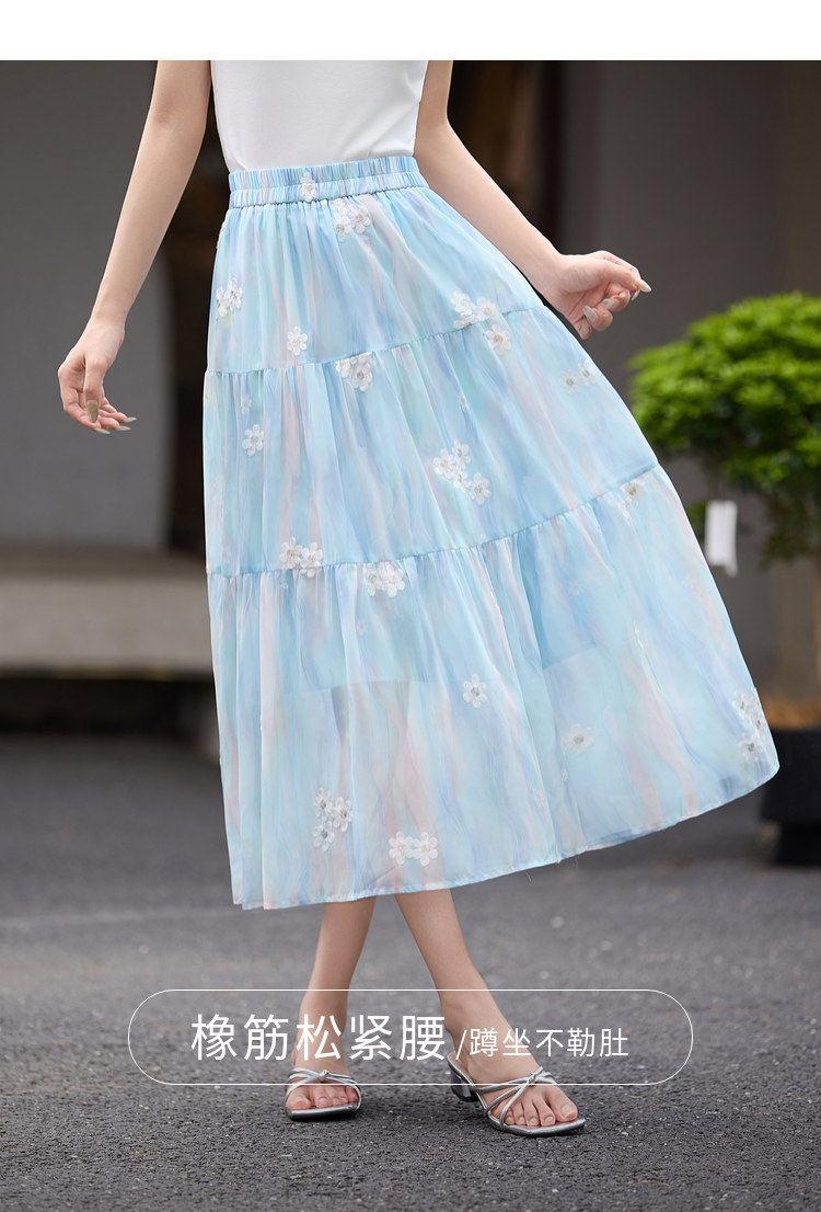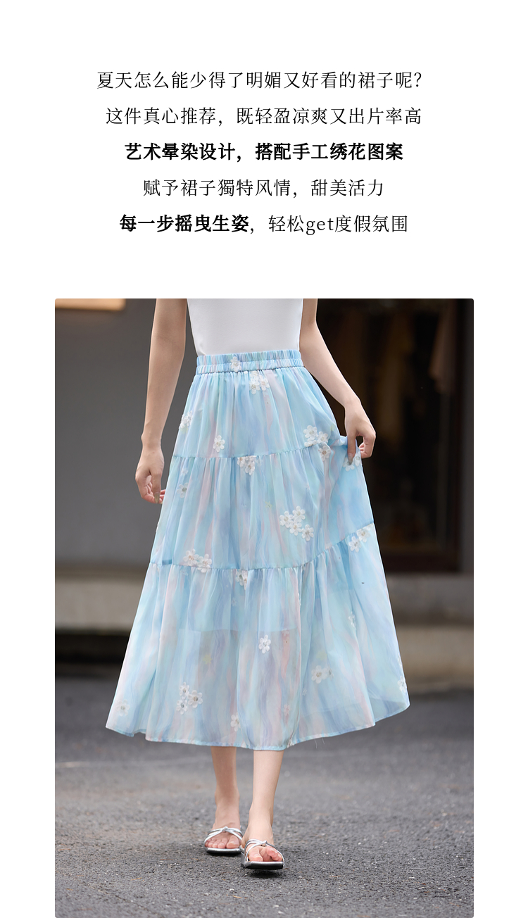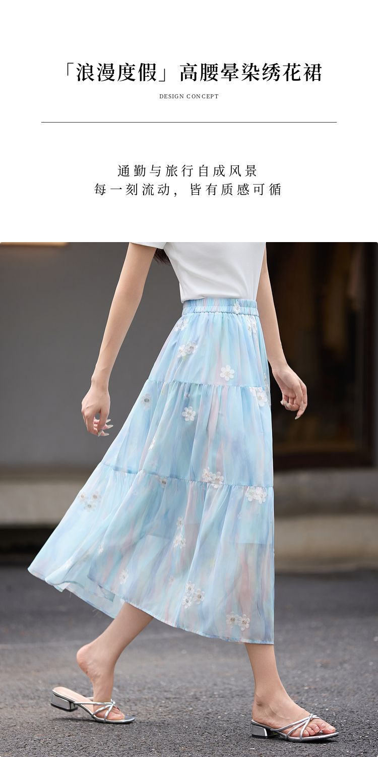 【专属特价】熙世界法式浪漫度假风雪纺半身裙女2025年夏日新款晕染绣花蛋糕裙
