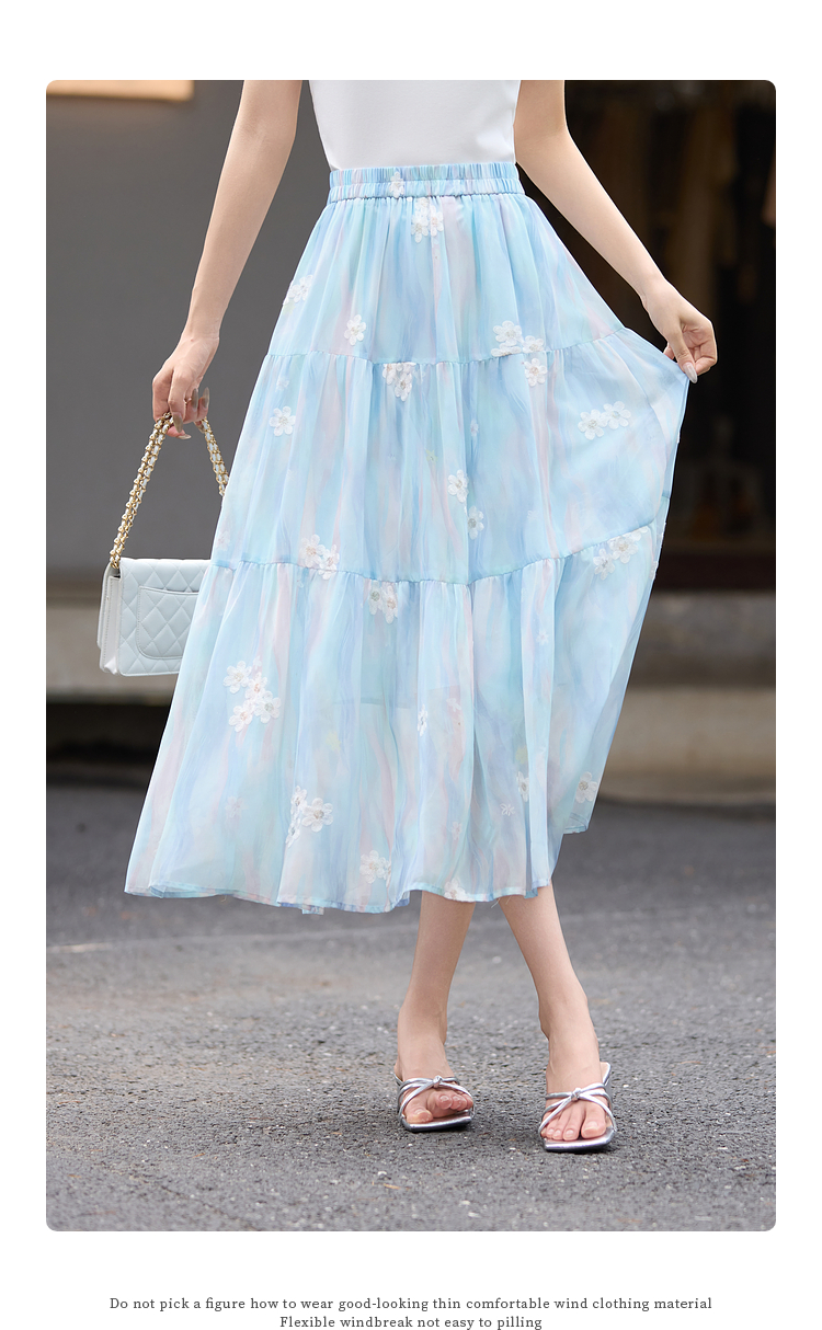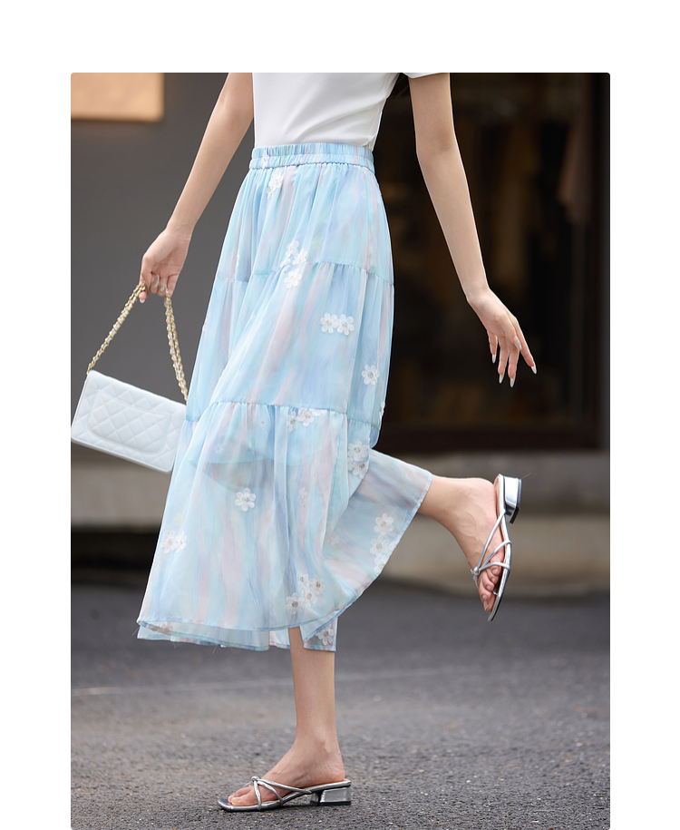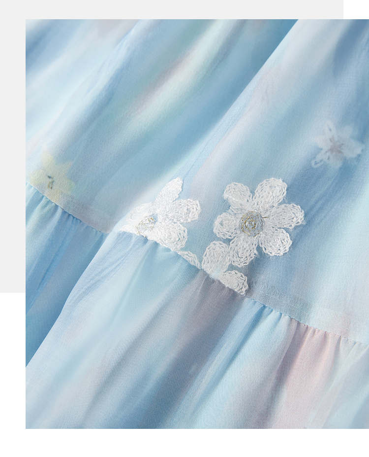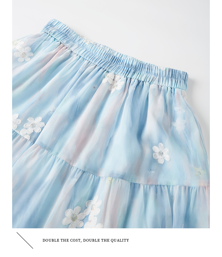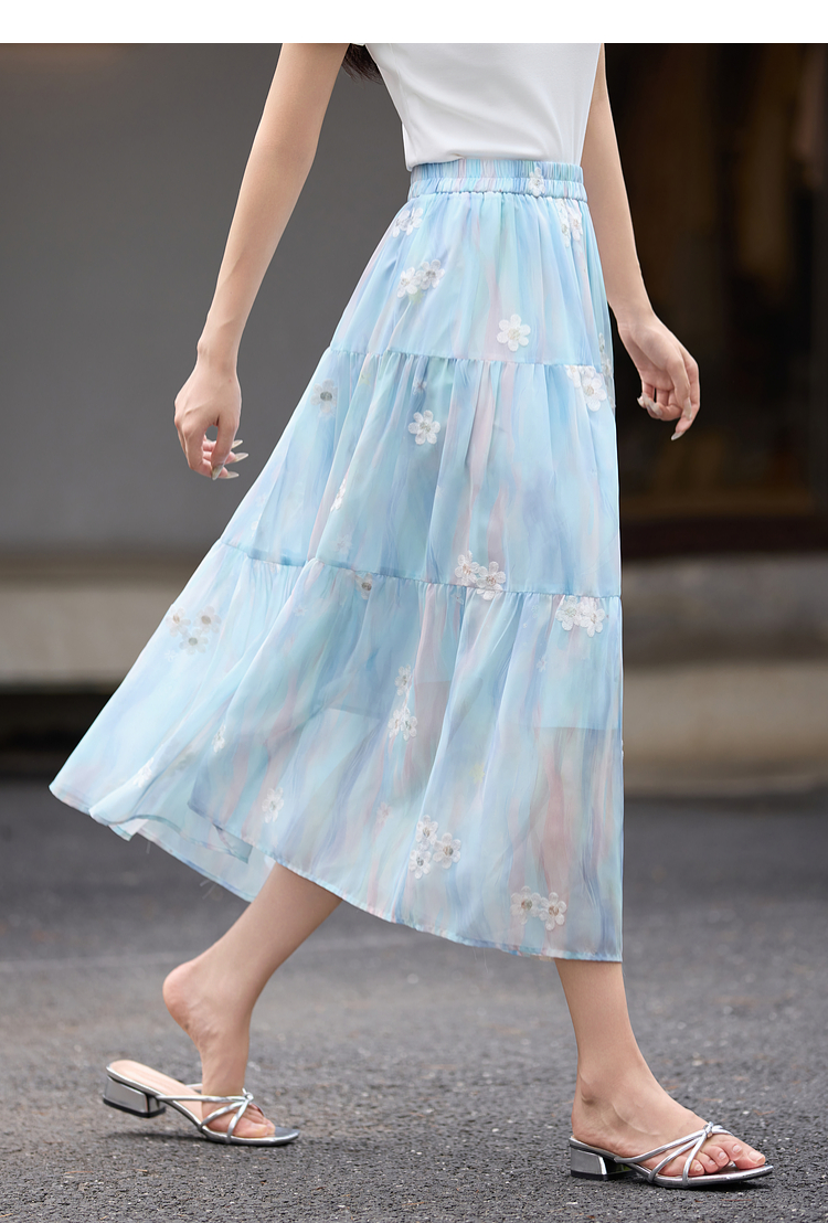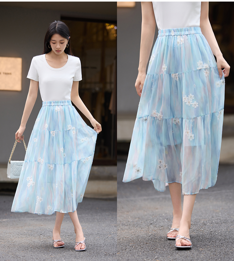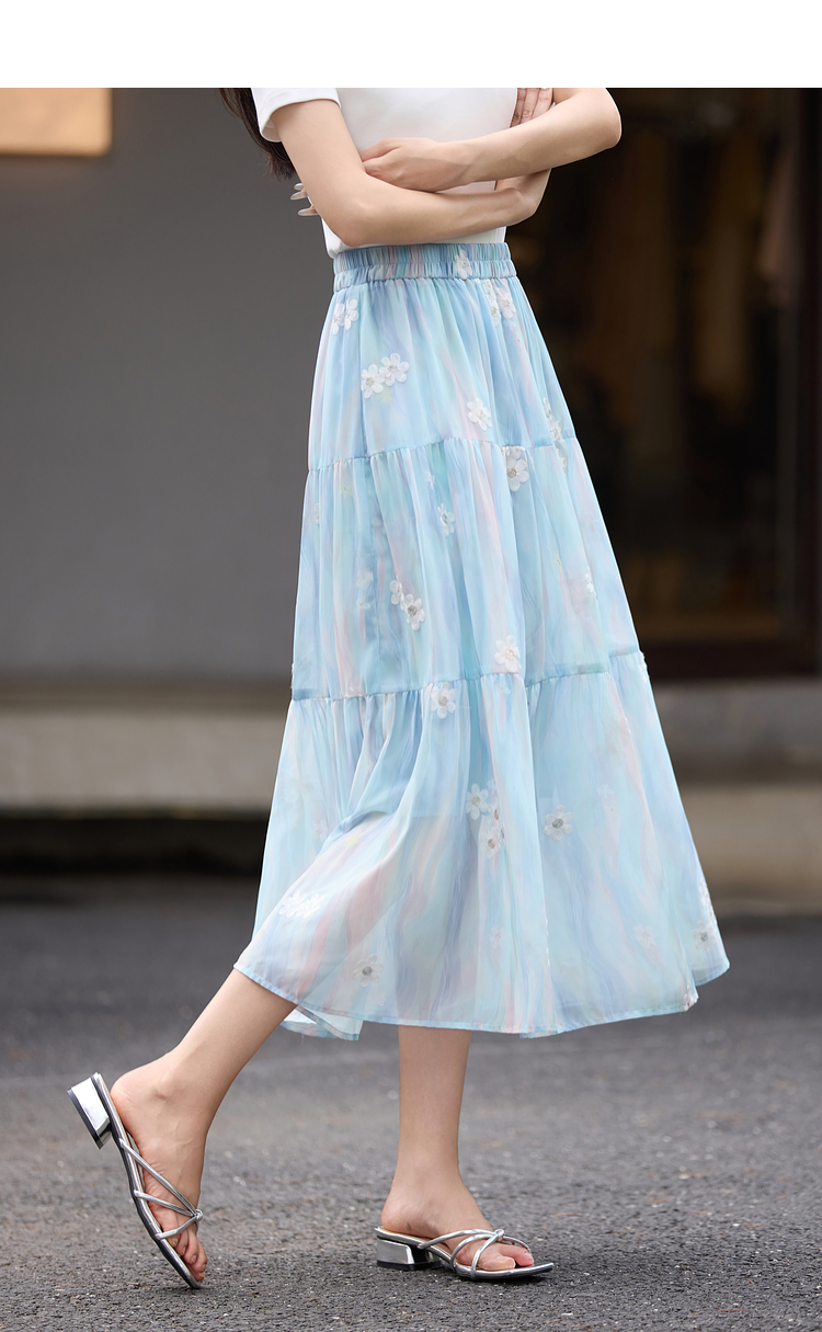 【专属特价】熙世界法式浪漫度假风雪纺半身裙女2025年夏日新款晕染绣花蛋糕裙