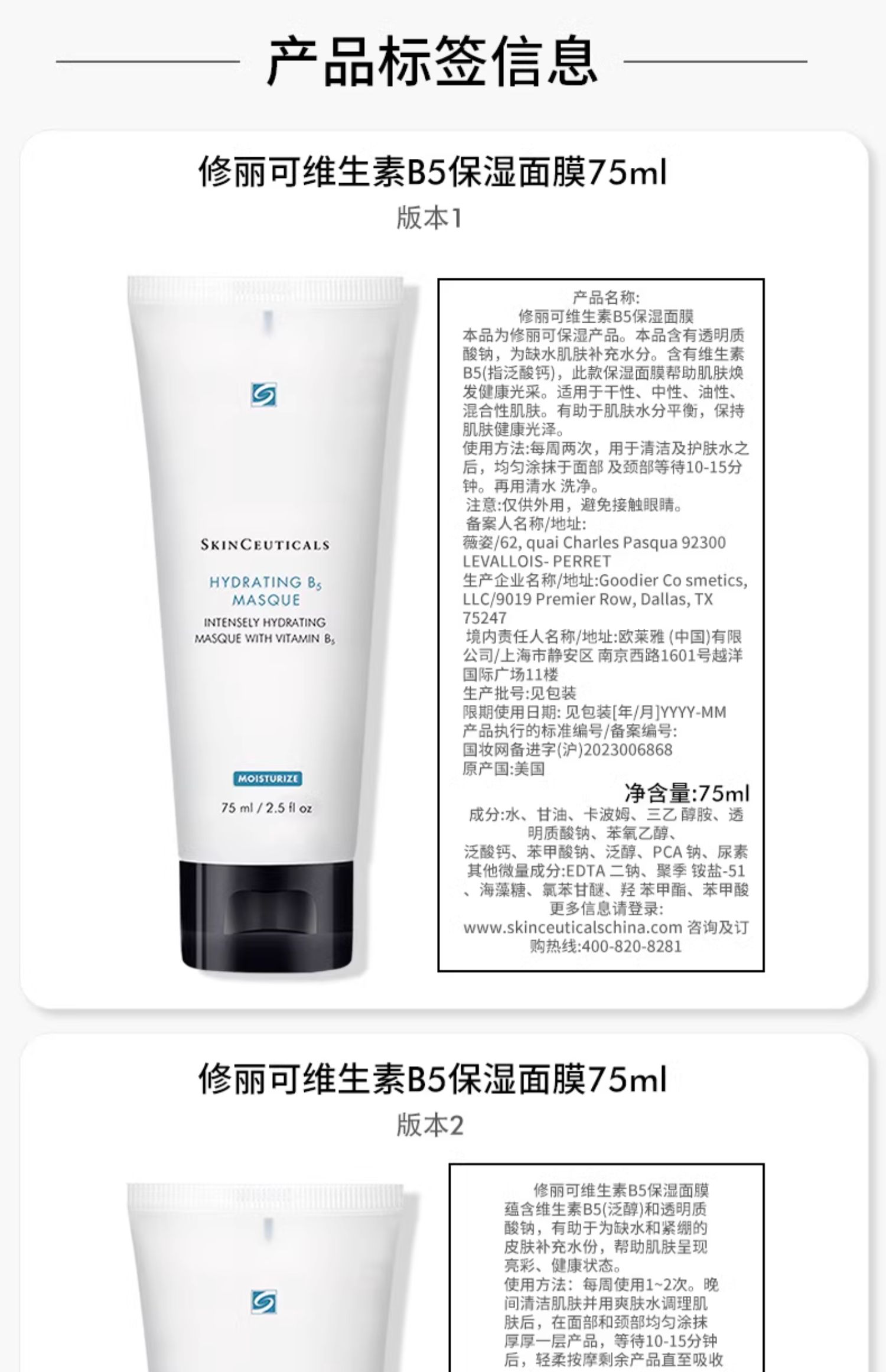 SKINCEUTICALS修丽可 维生素B5保湿面膜