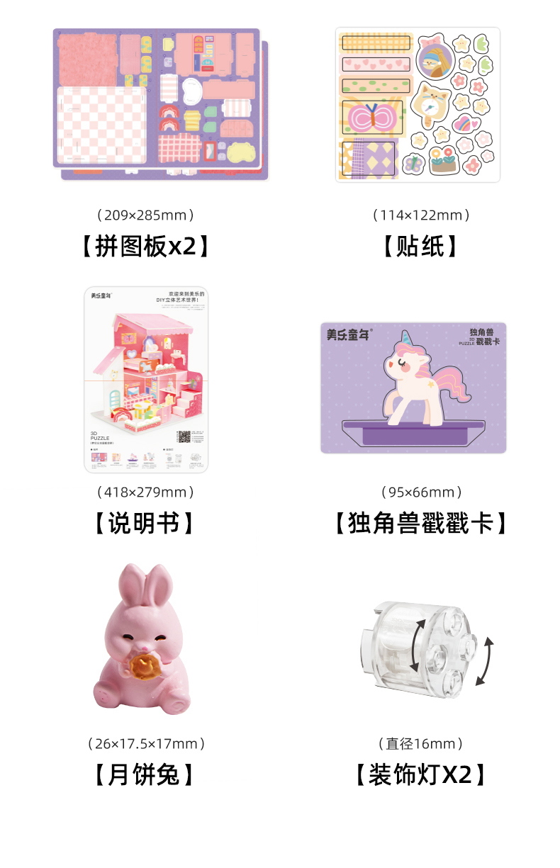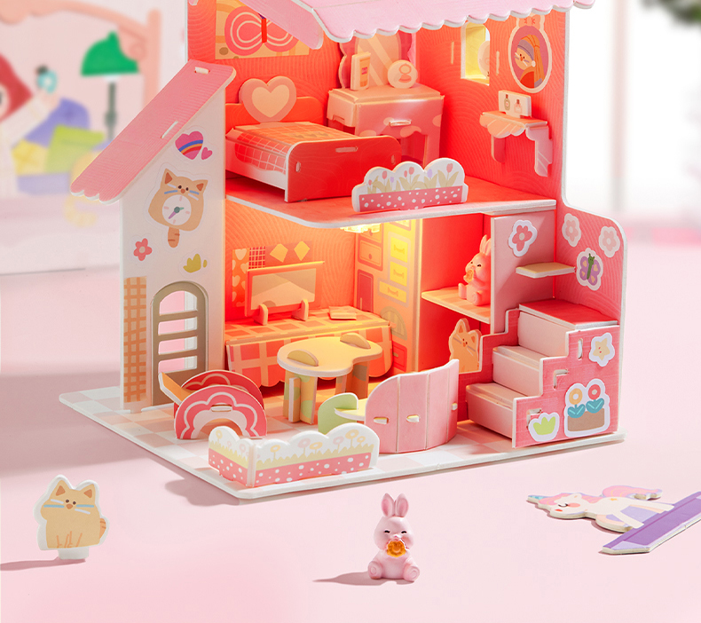 【0基础玩出立体思维】JoanMiro 美乐童年3d立体拼图 自带氛围暖灯 惊喜点亮童话小屋