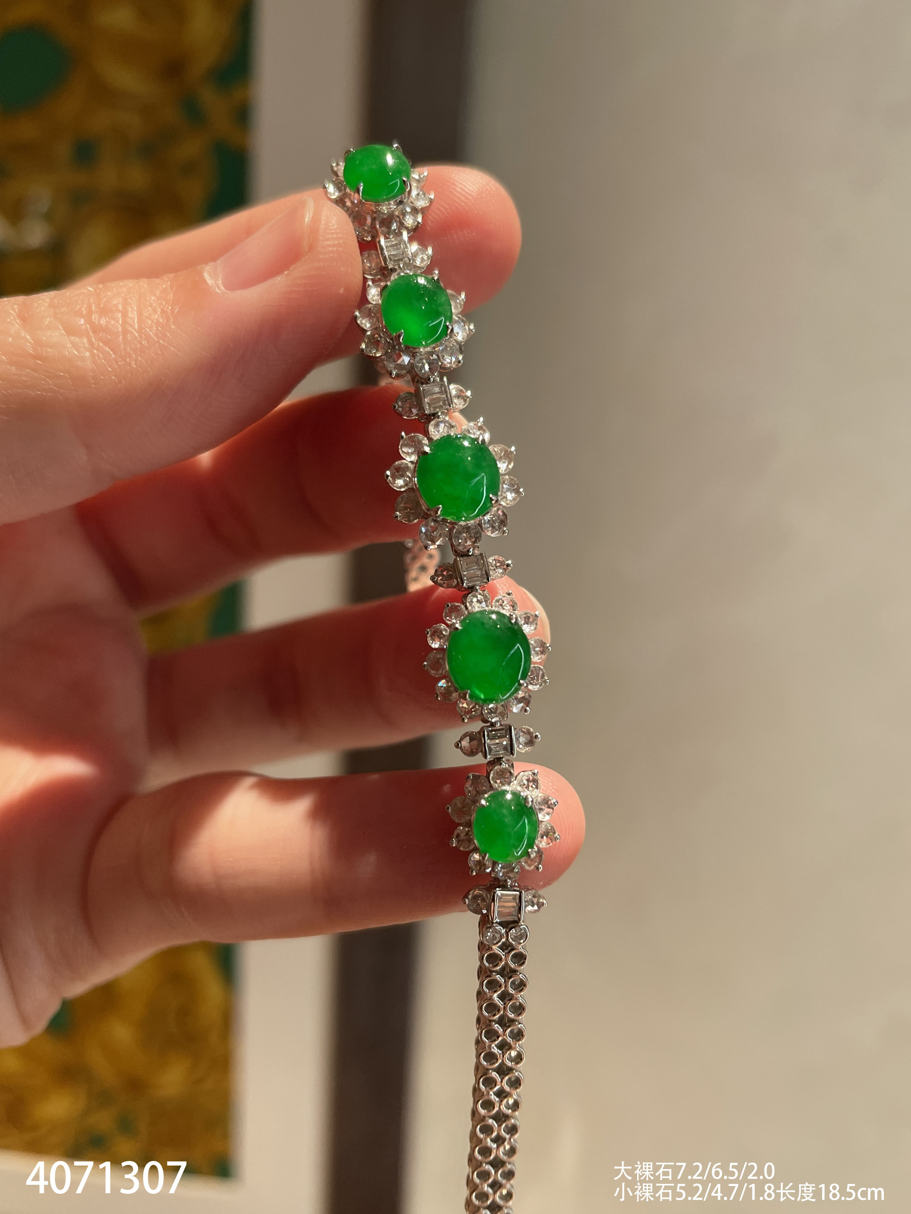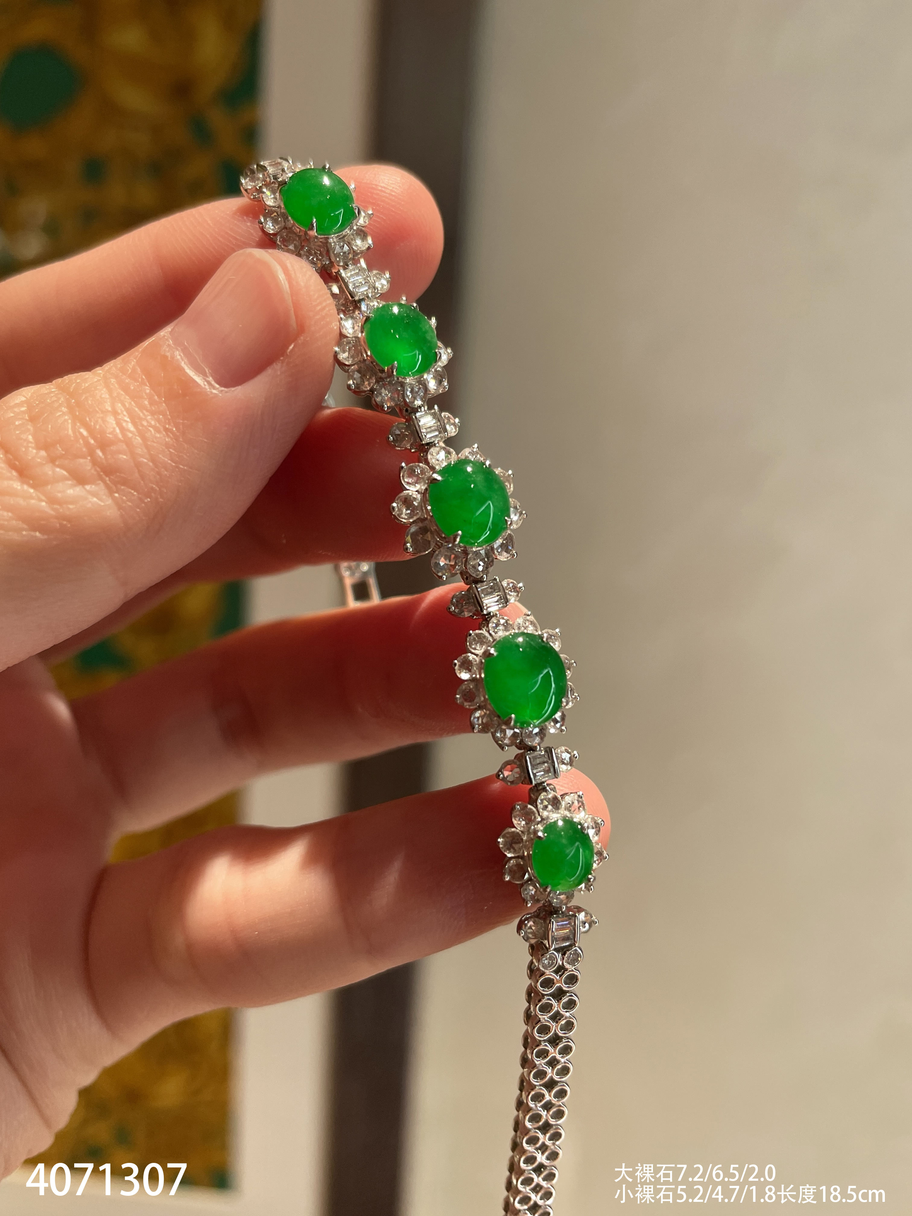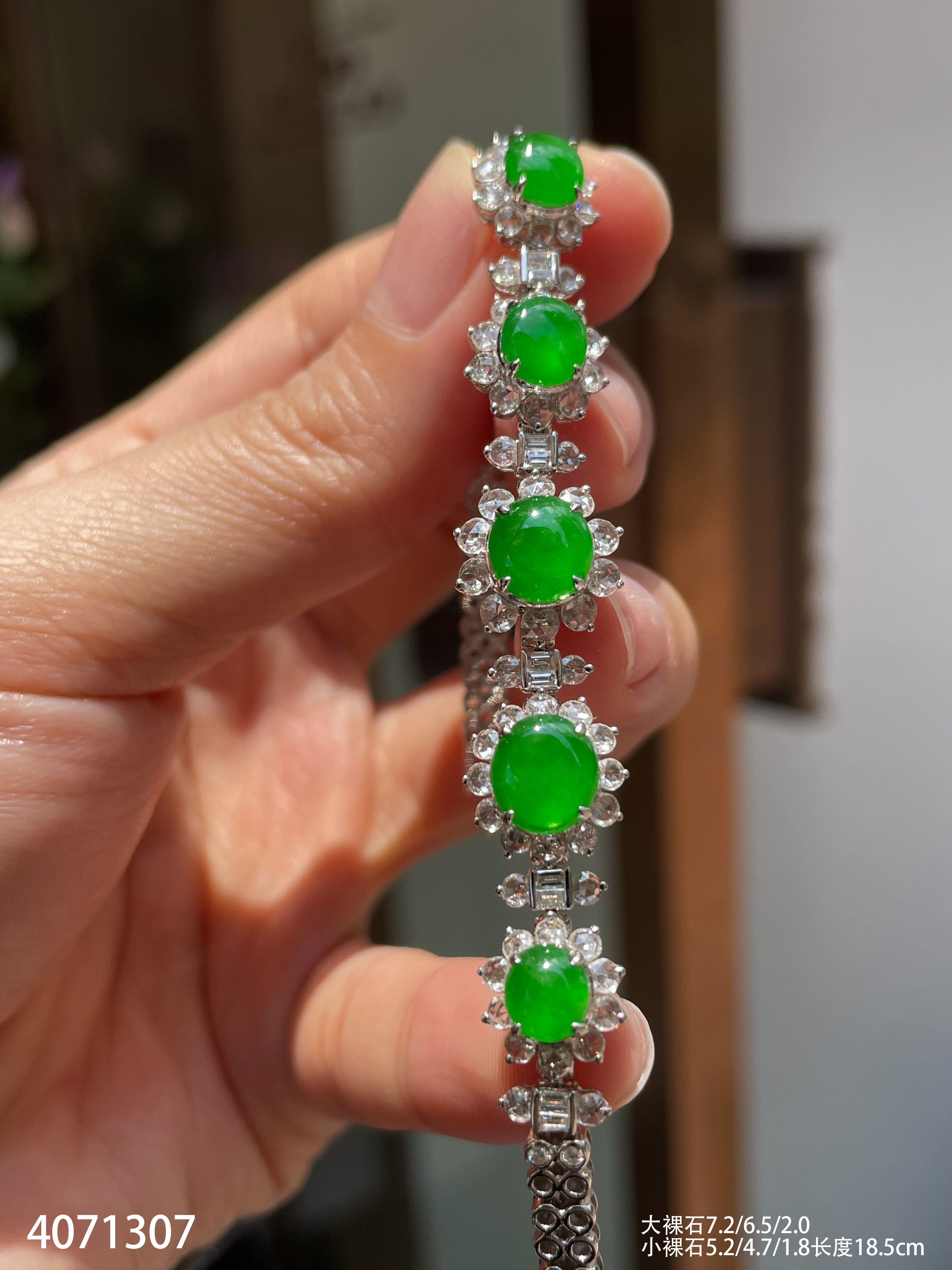 老坑玻璃种艳绿蛋面手链 73999【4071307】