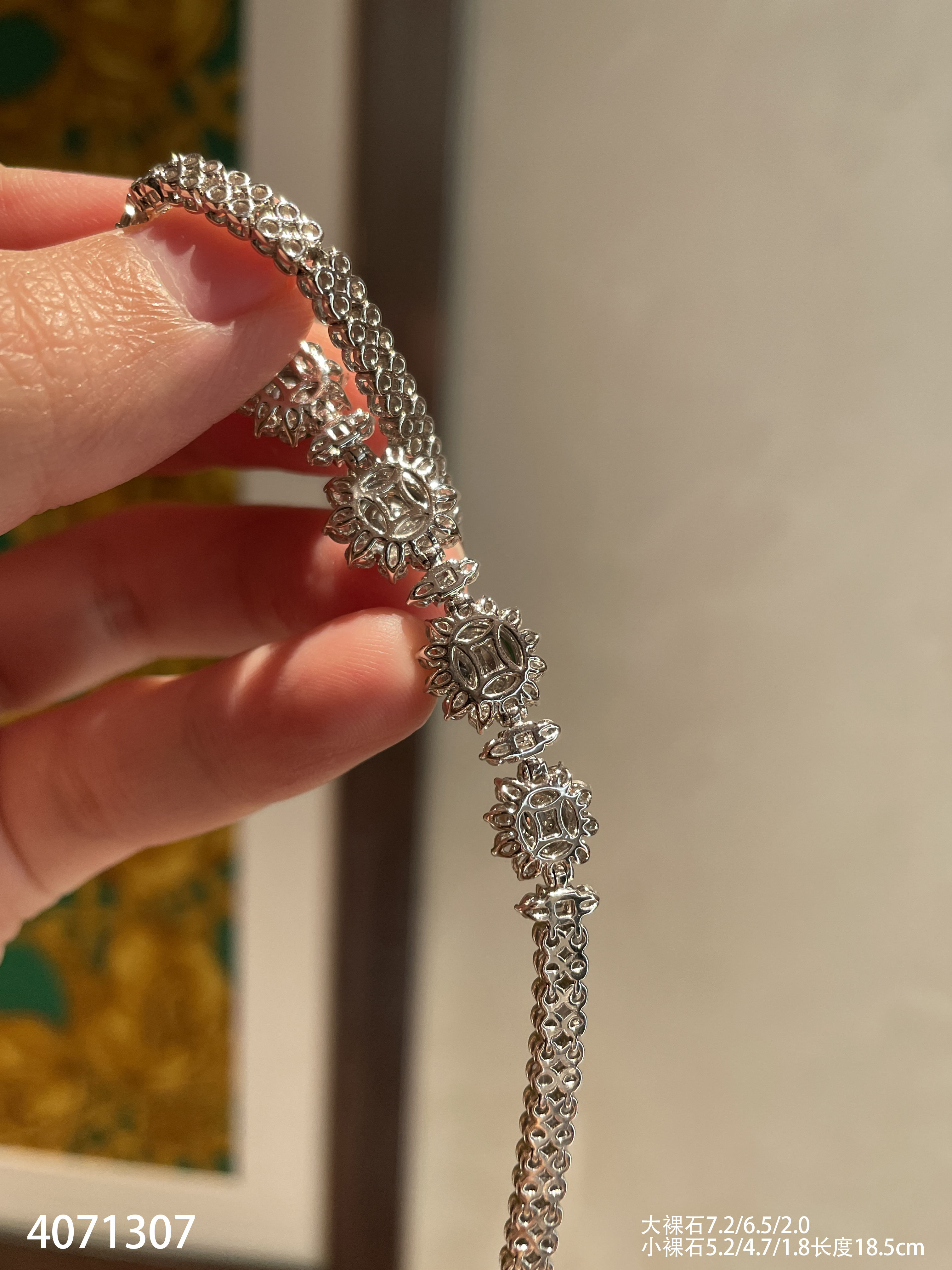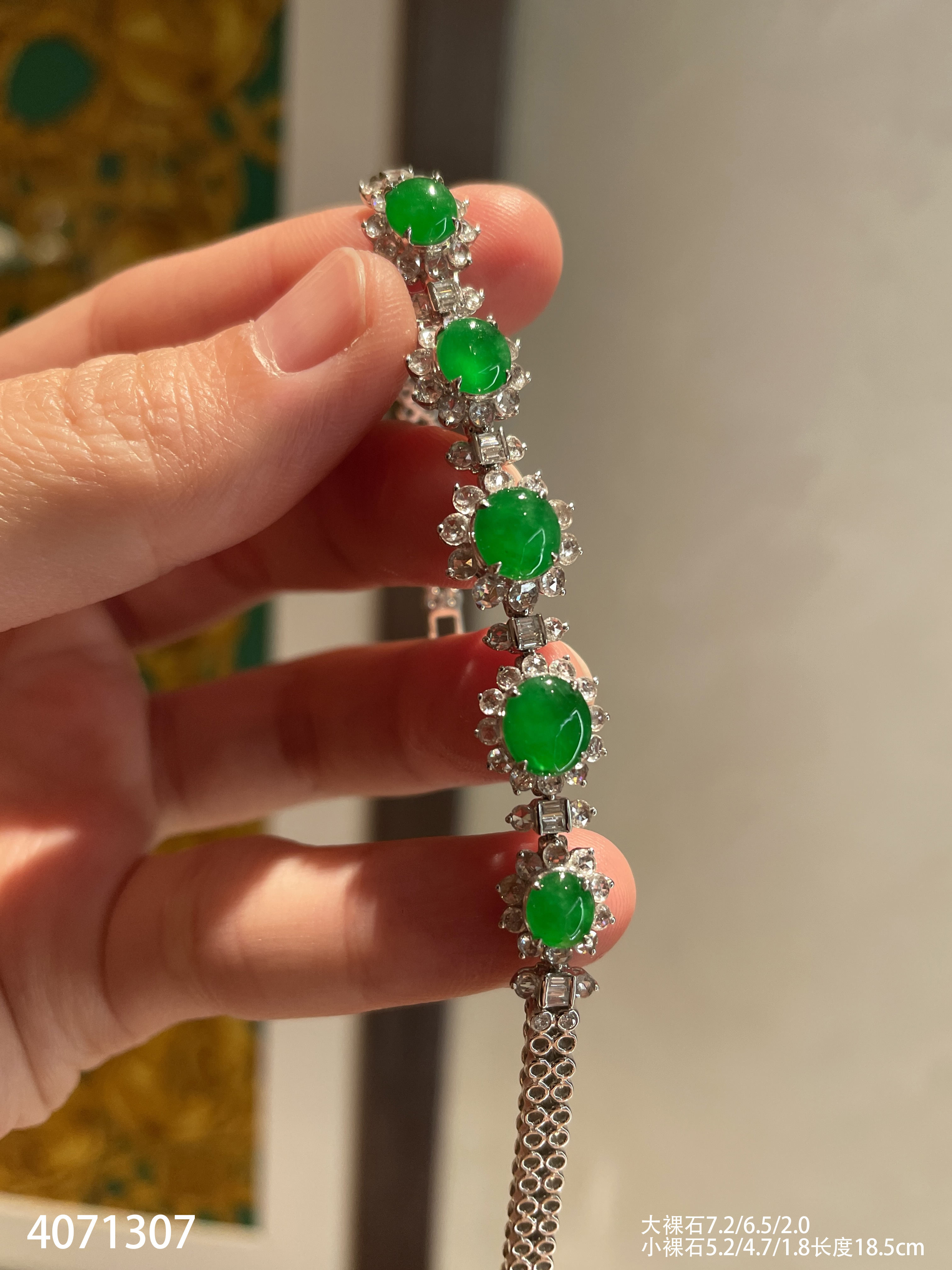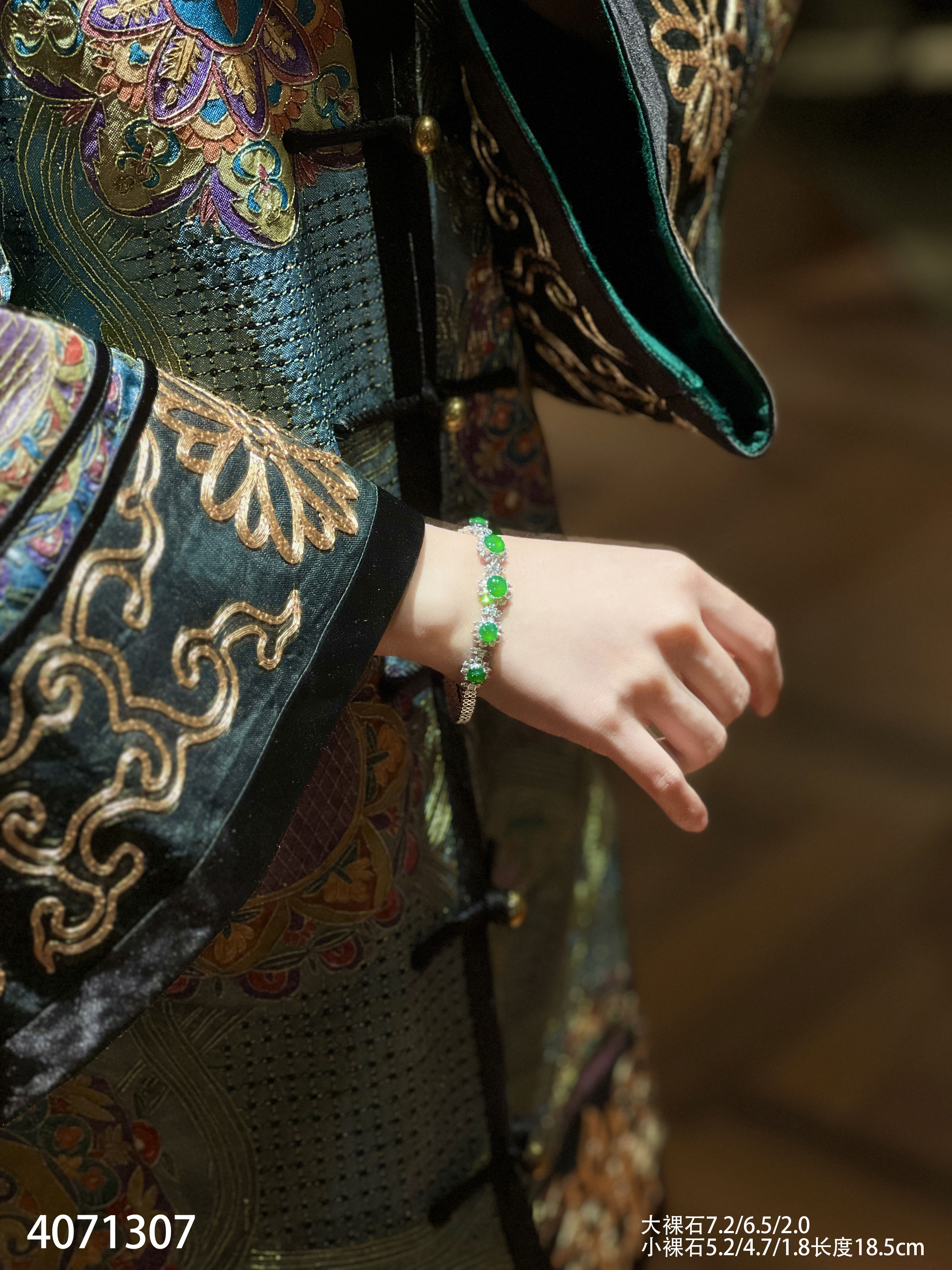 老坑玻璃种艳绿蛋面手链 73999【4071307】