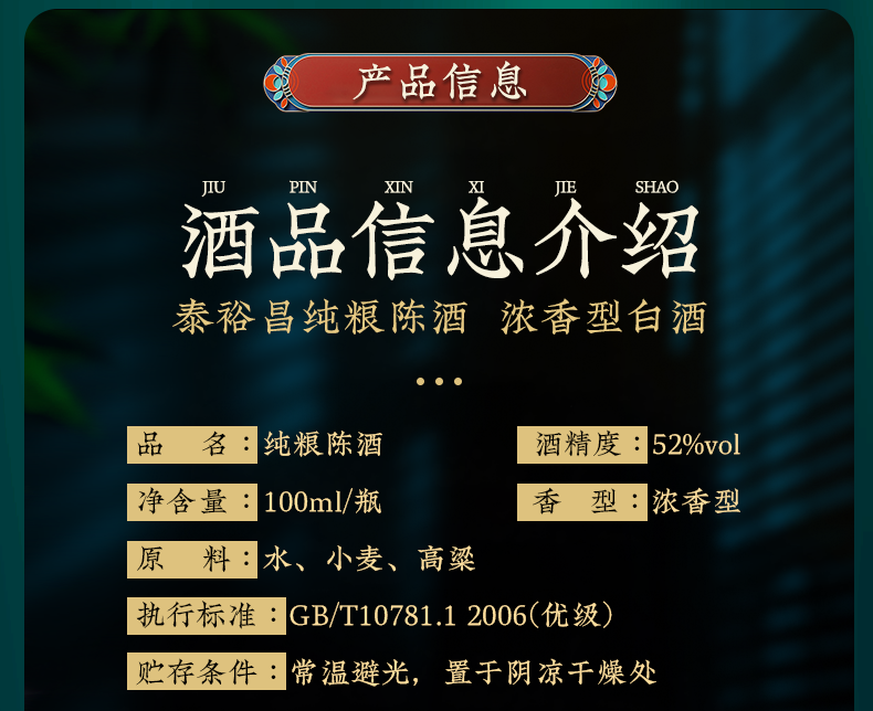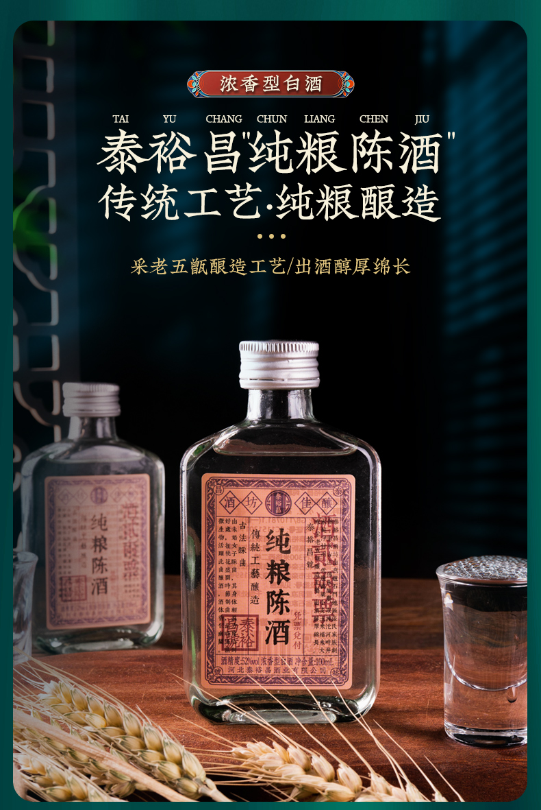 [纯粮陈酒]52度6小瓶-泰裕昌光瓶装-浓香型白酒-100ml-6瓶整箱