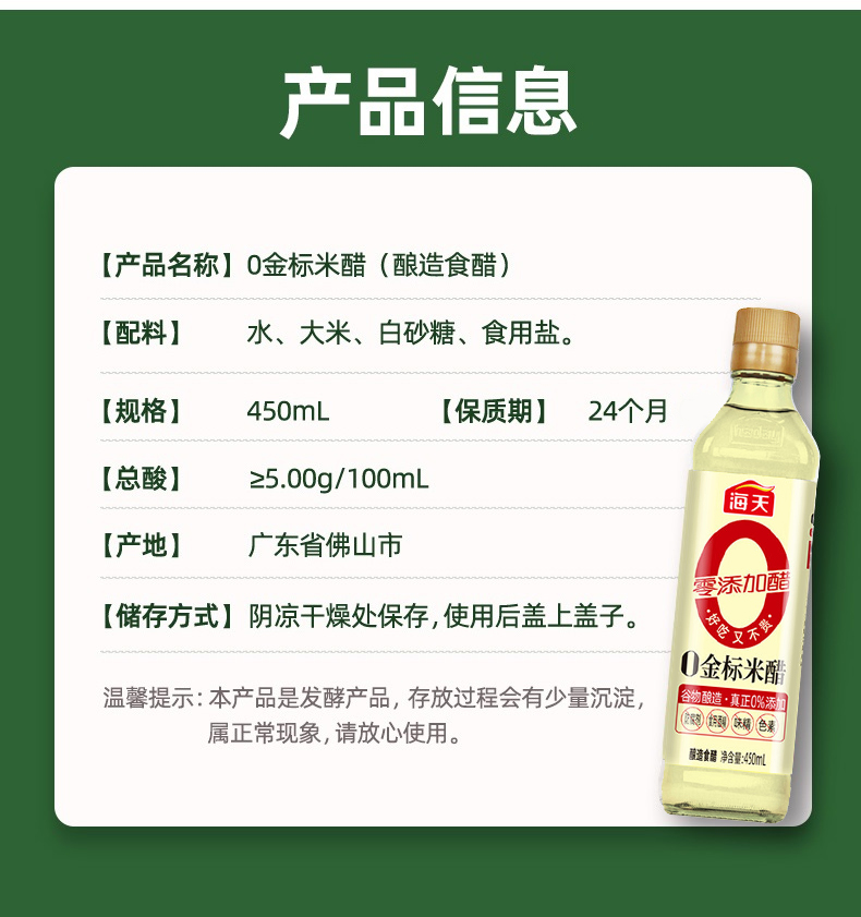 海天零添加金标米醋450ml