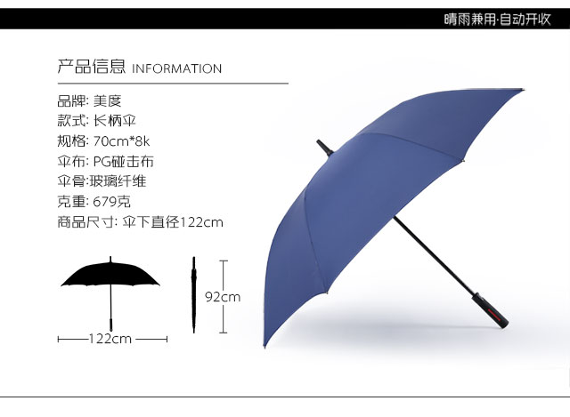 美度 MAYDU 大码高尔夫晴雨伞男士商务长柄防风雨伞 M1123黑色