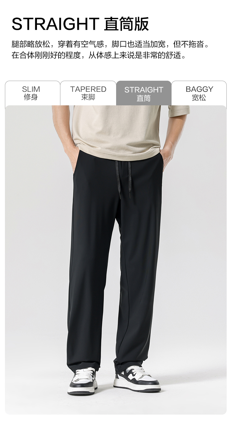 gxgjeans男装【高弹零压】26春款男士休闲长裤轻薄透气垂顺纯色运动直筒裤男K&C