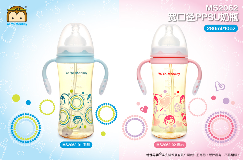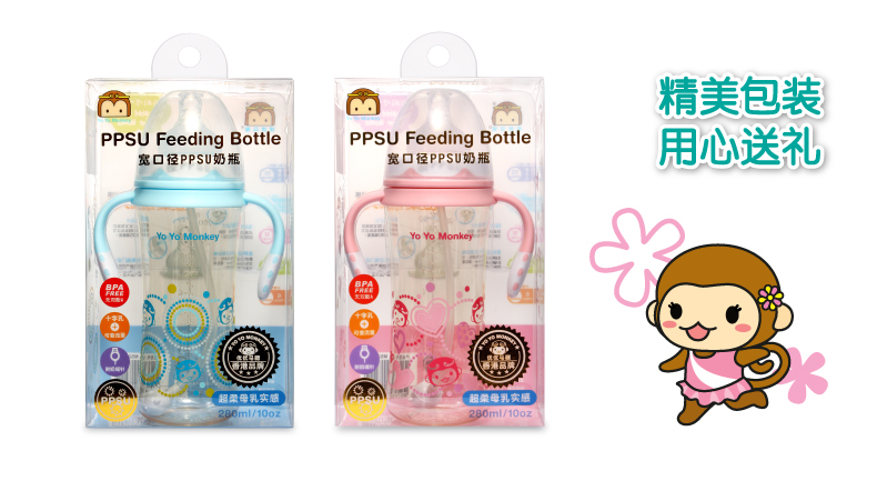 Yo Yo Monkey宽口PPSU奶瓶MS2062-01B/300ML