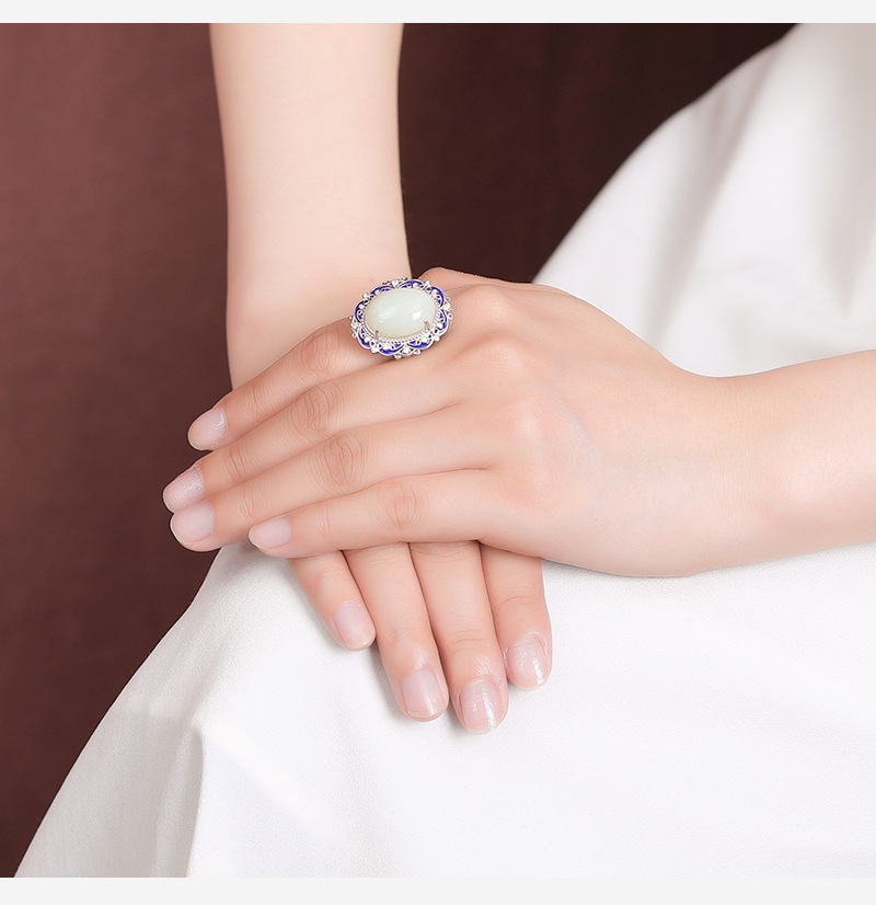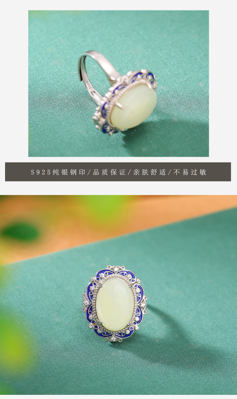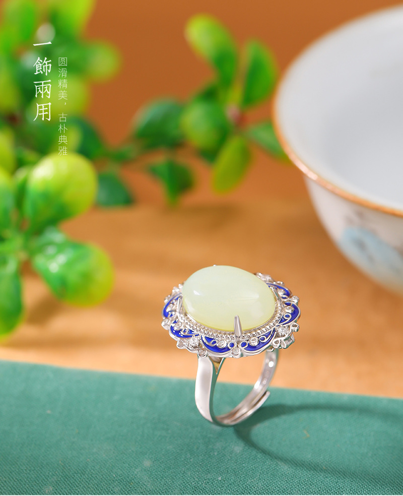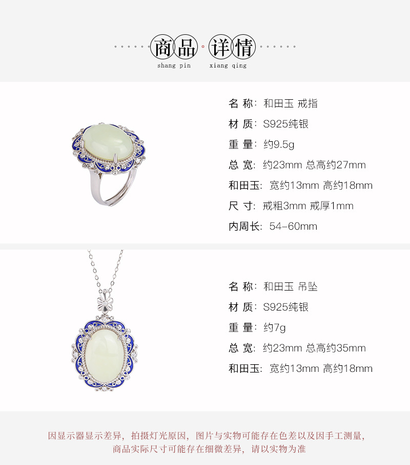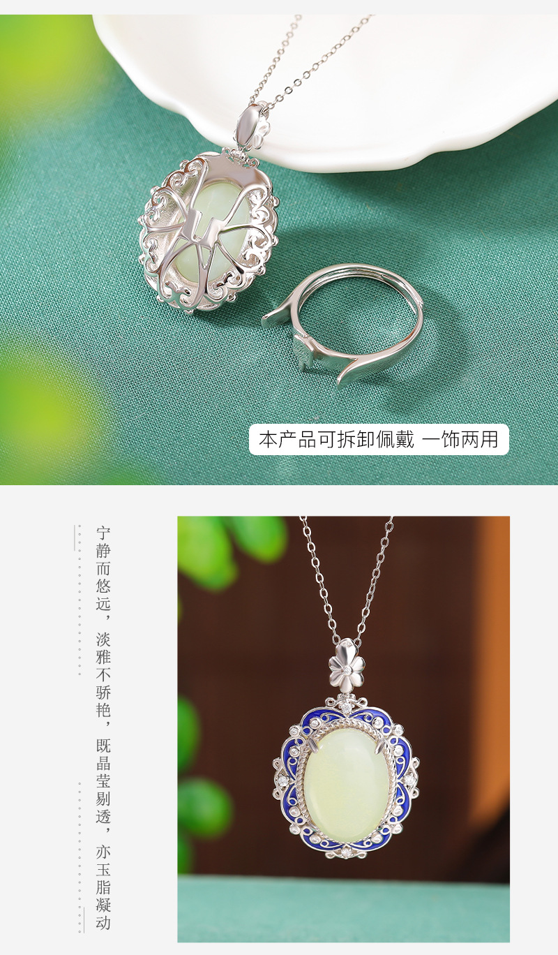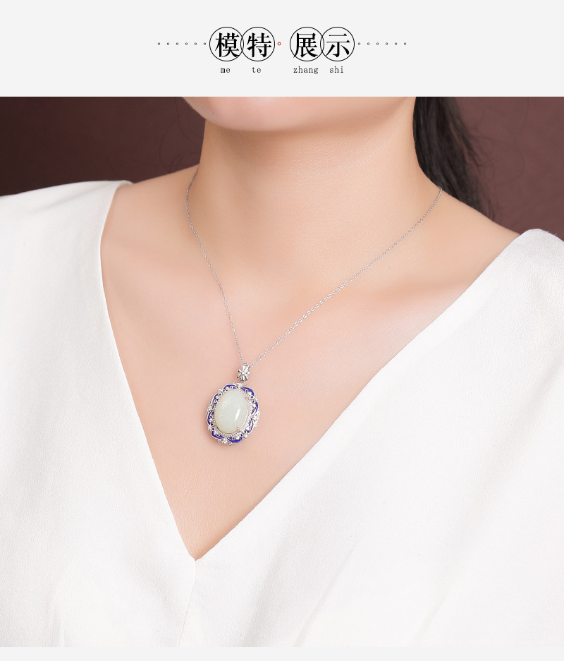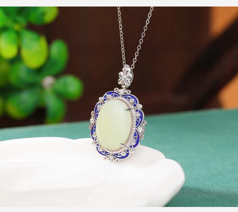 【艳艳随波】S925银和田玉复古国潮景泰蓝花纹蛋面吊坠【CW-JZ05459】