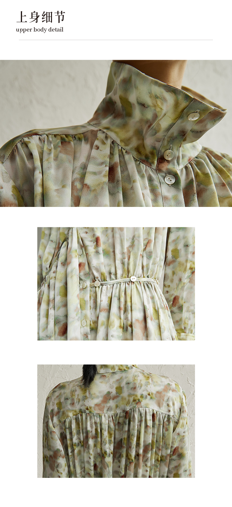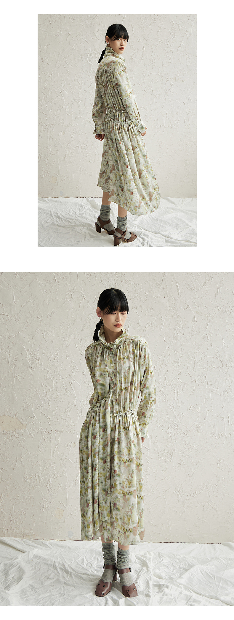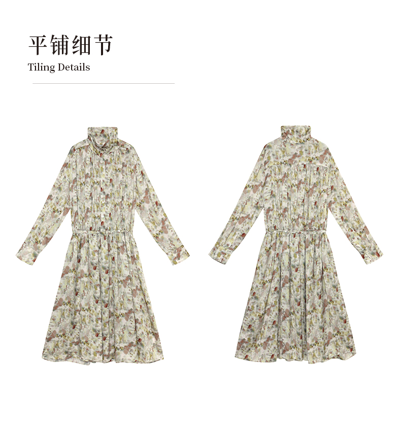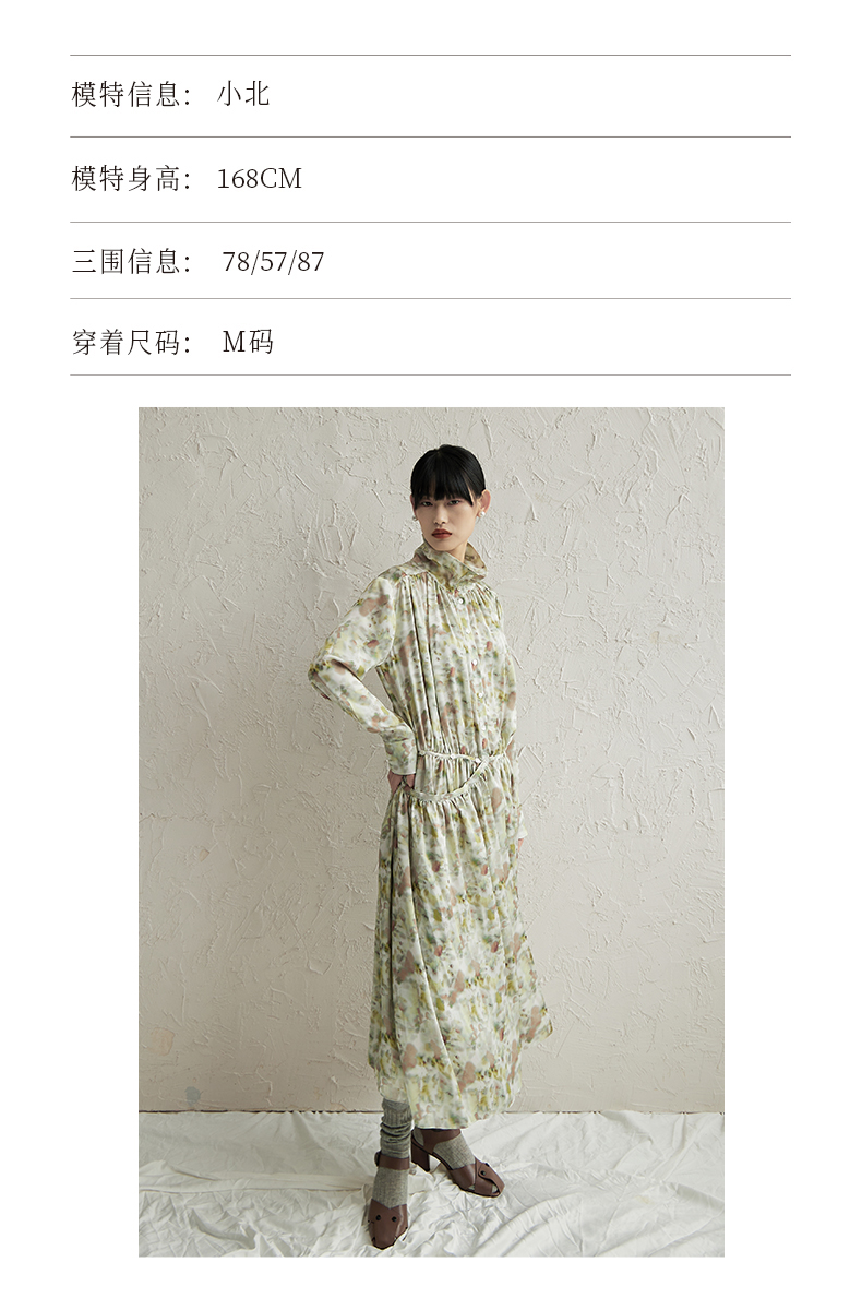 oldcolour印花衬衫连衣裙早秋新款立领低腰线设计感碎花裙