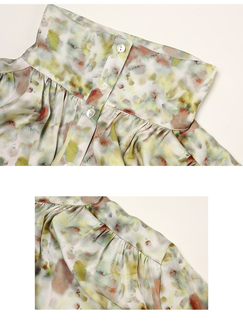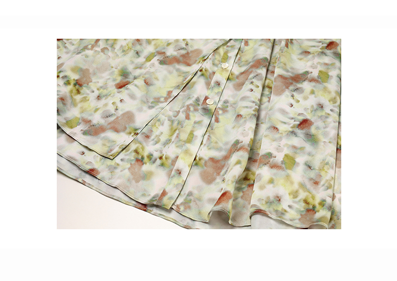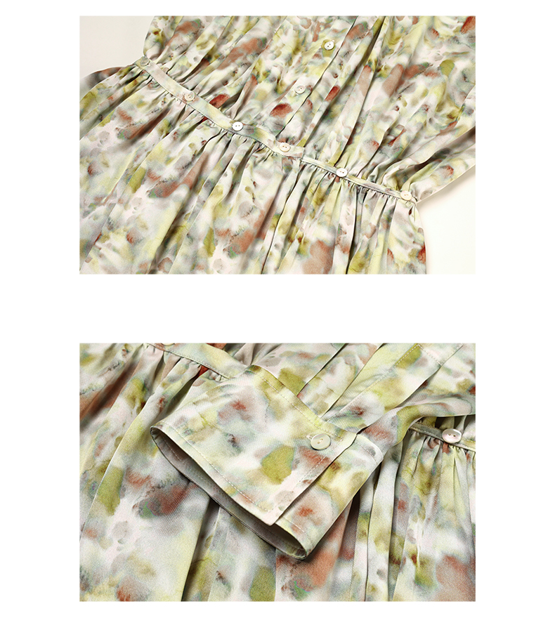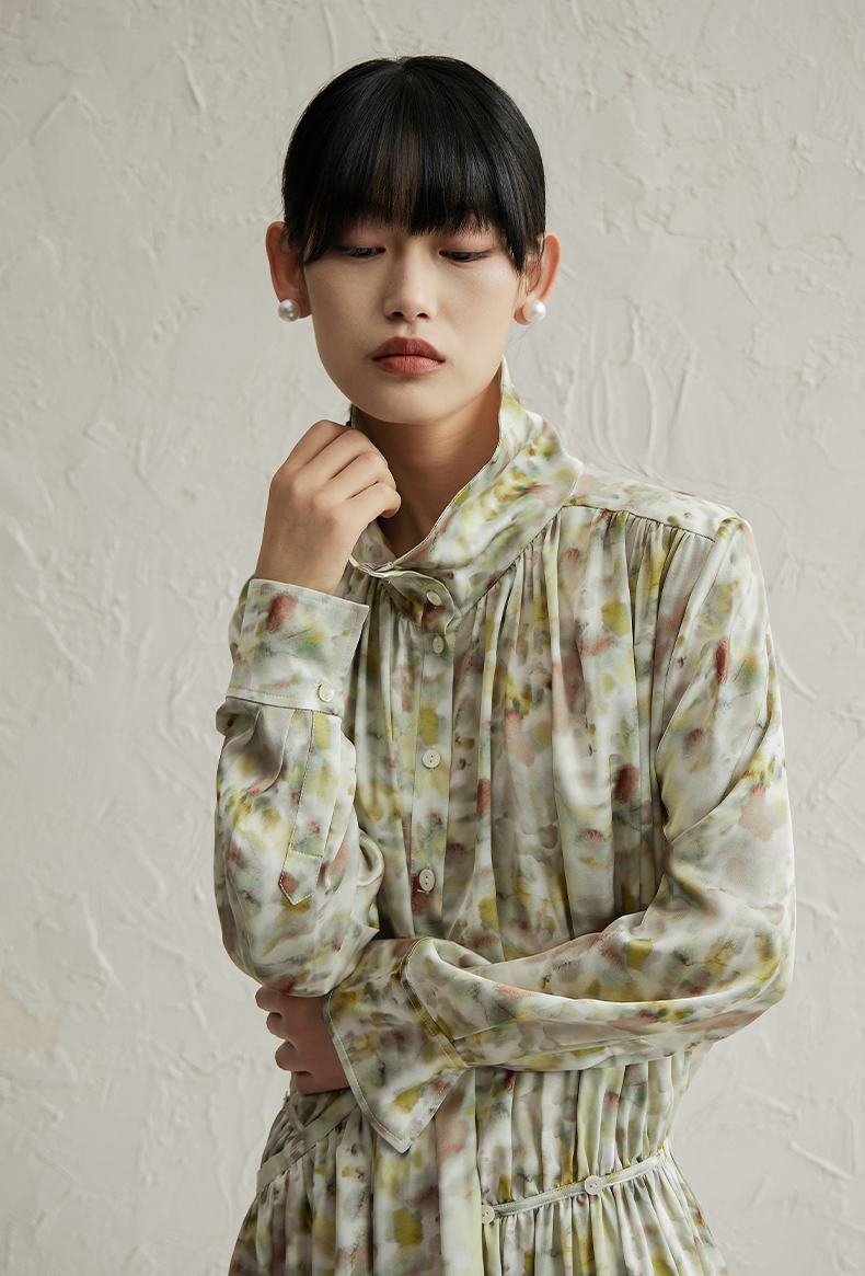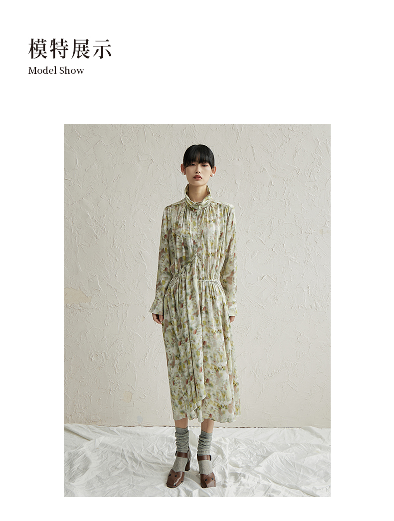 oldcolour印花衬衫连衣裙早秋新款立领低腰线设计感碎花裙