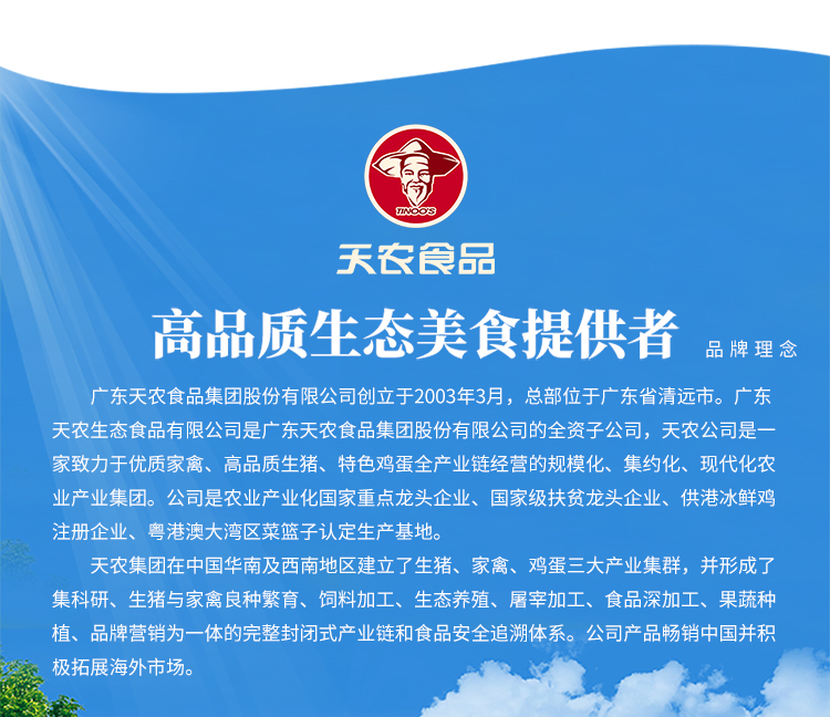 天农纯种清远鸡,专注纯种清远鸡23年!高端清远鸡销量全国遥遥领先在青山绿水+运动场的环境优养纯种清远鸡。国家级原种基地、国家级扶贫龙头企业。