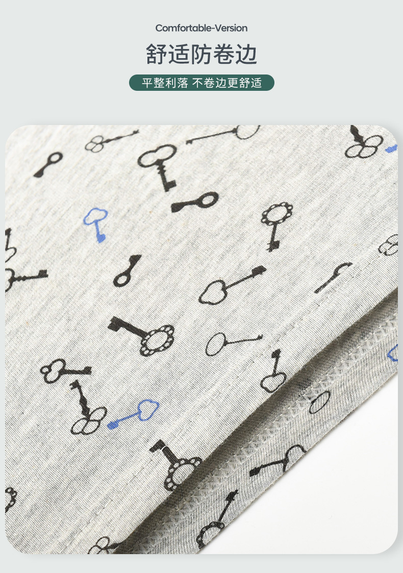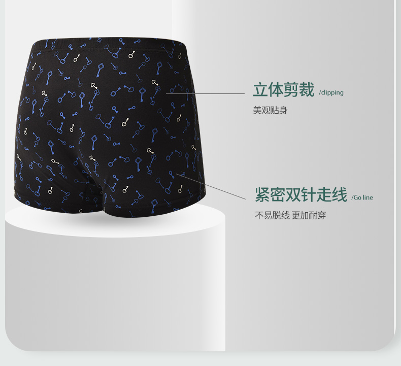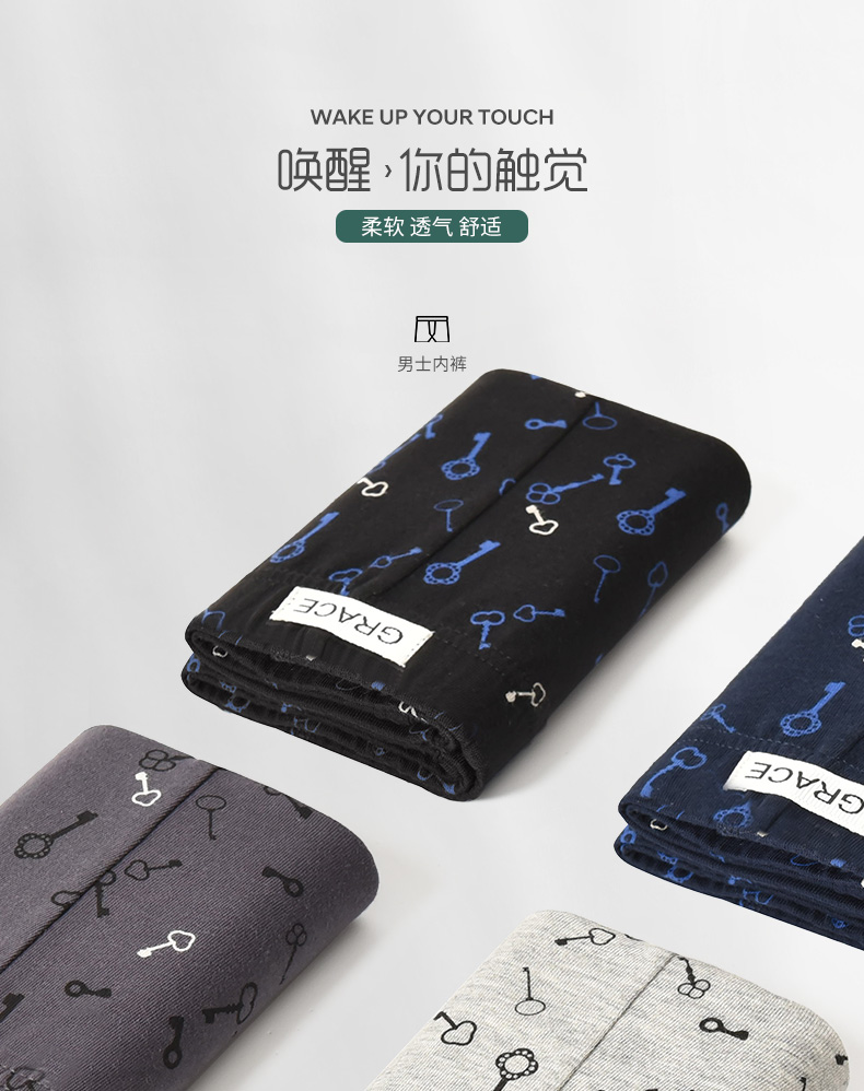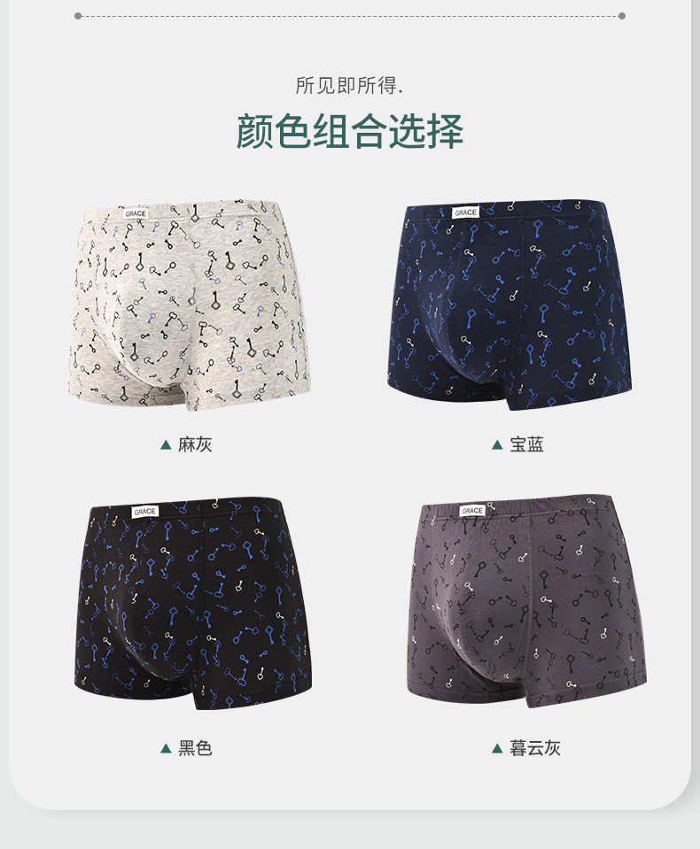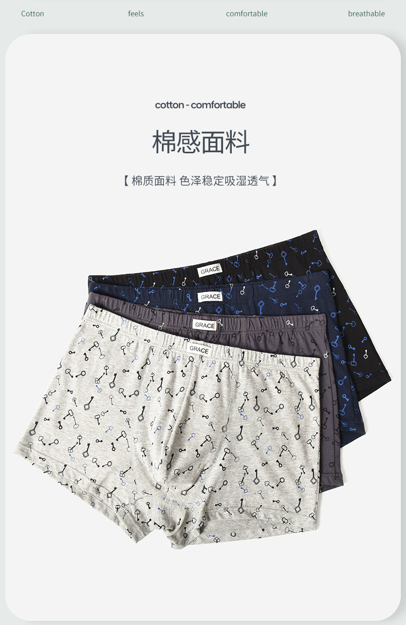 洁丽雅4条装纯棉大码男士内裤简约印花运动透气平角裤衩裤头男