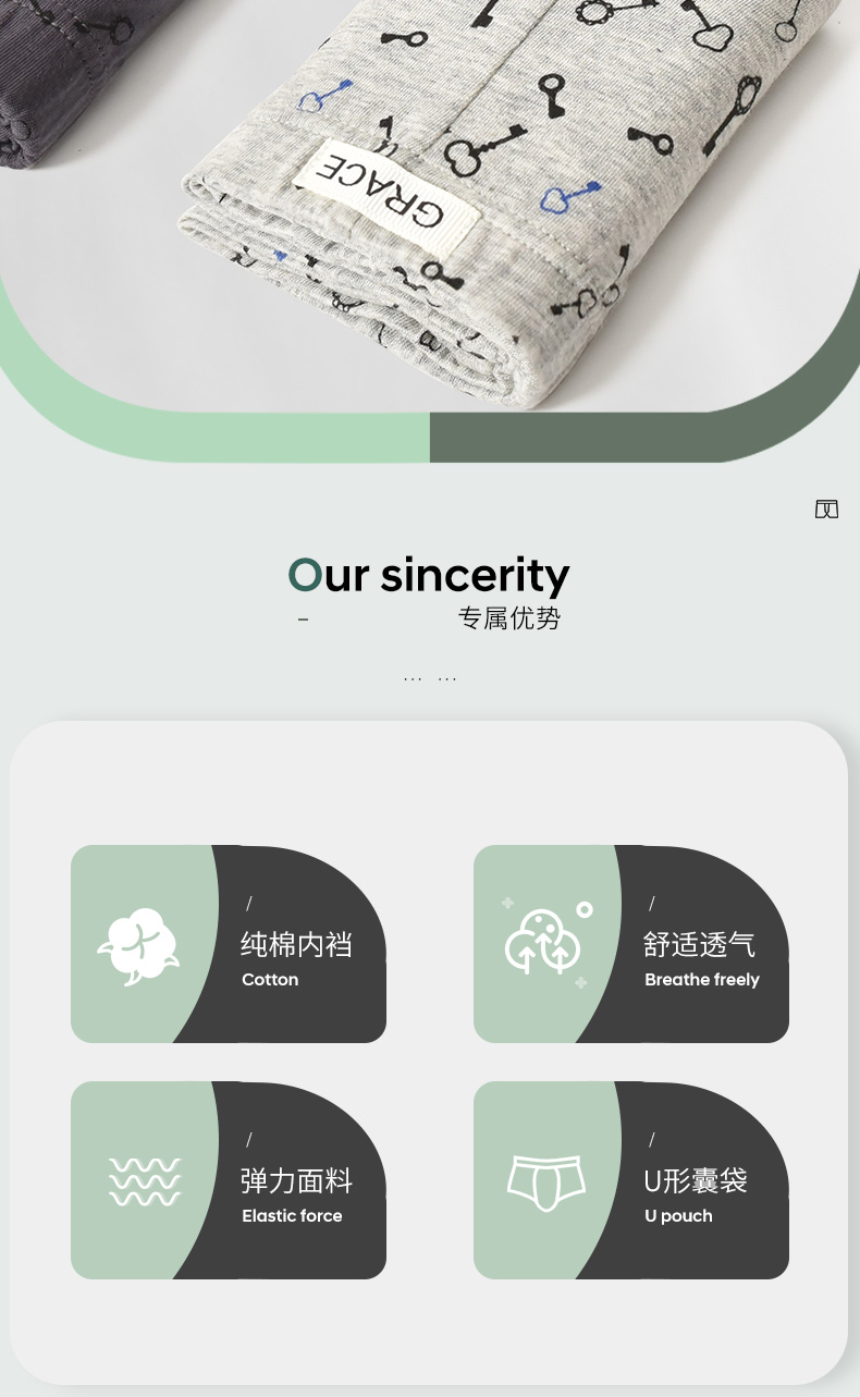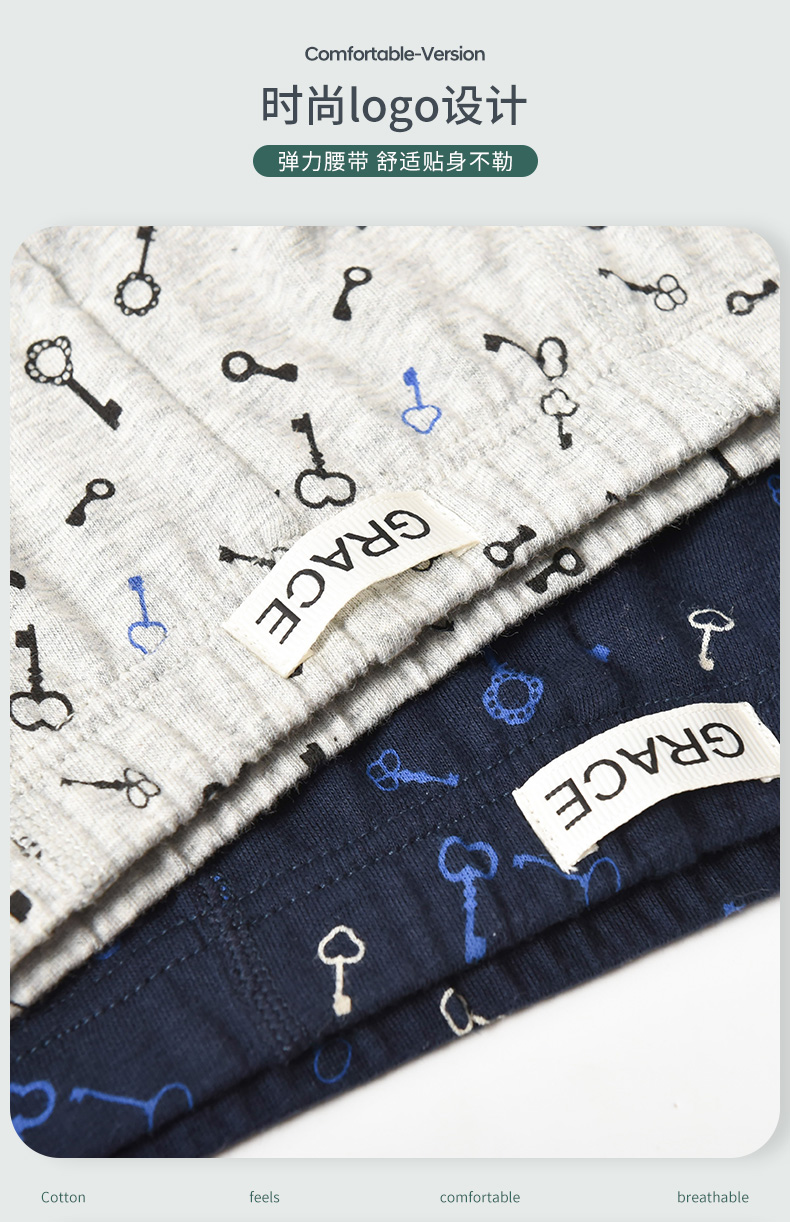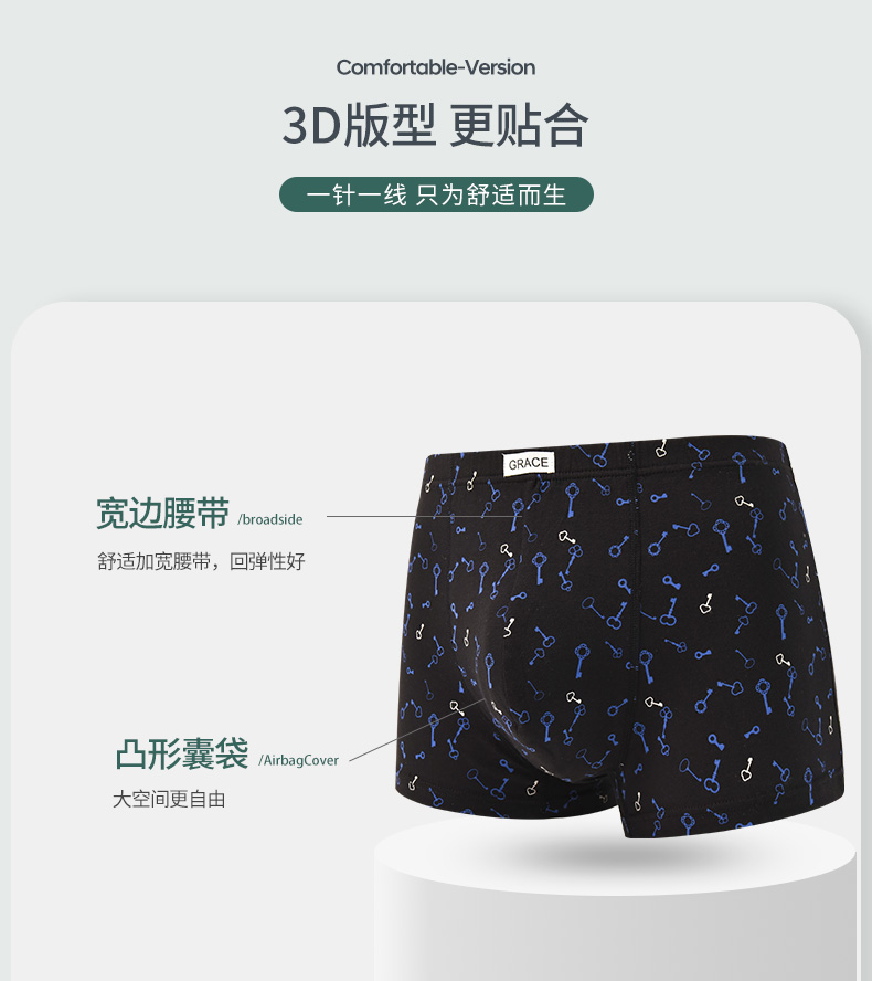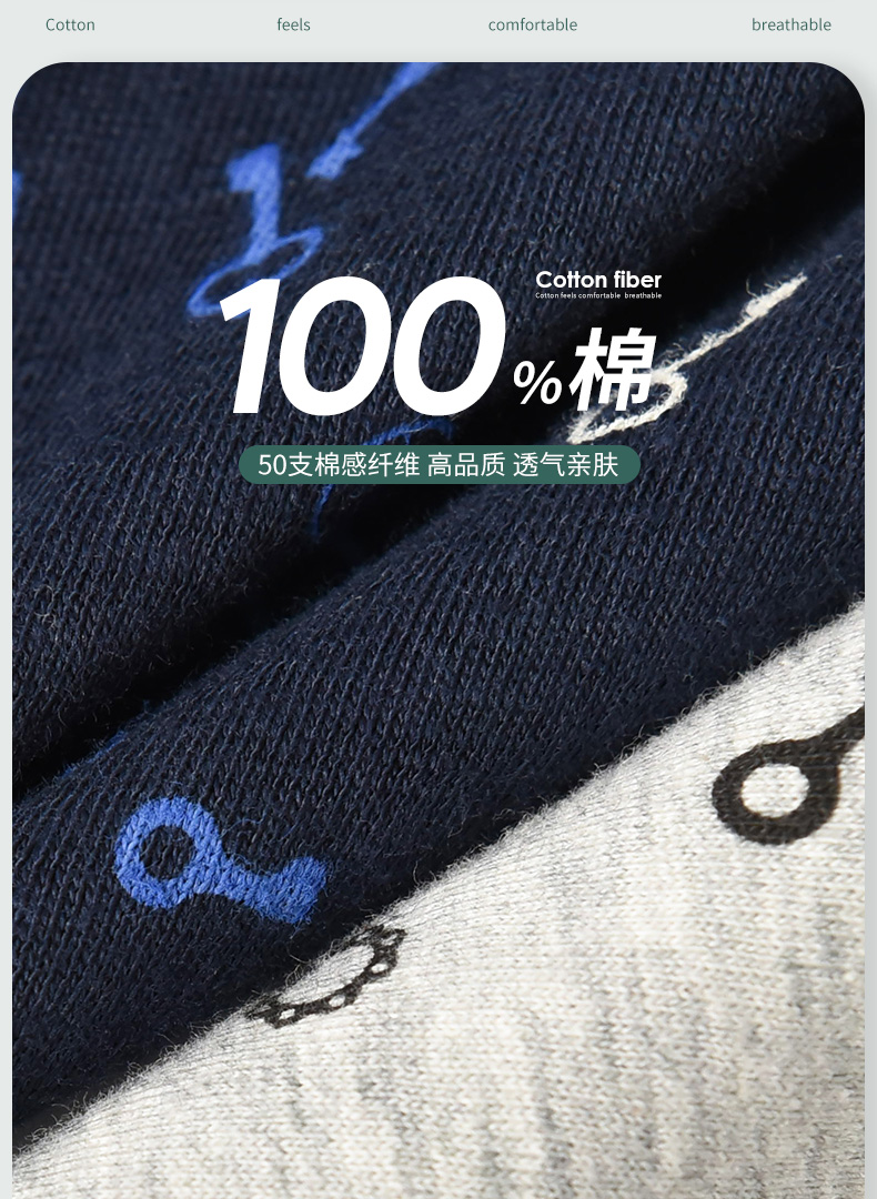 洁丽雅4条装纯棉大码男士内裤简约印花运动透气平角裤衩裤头男