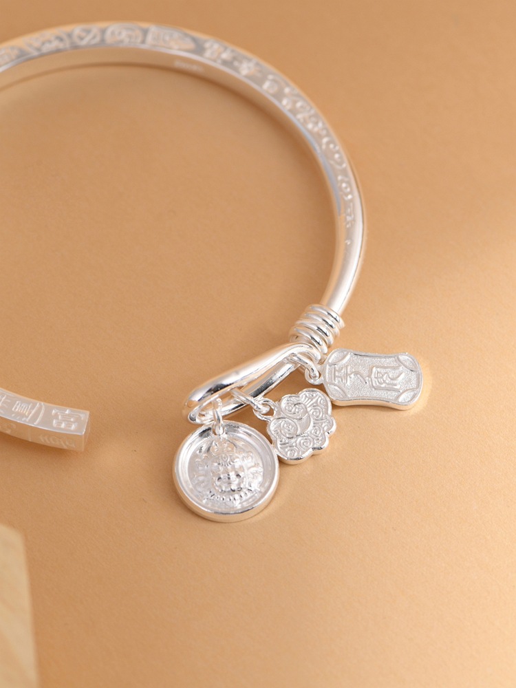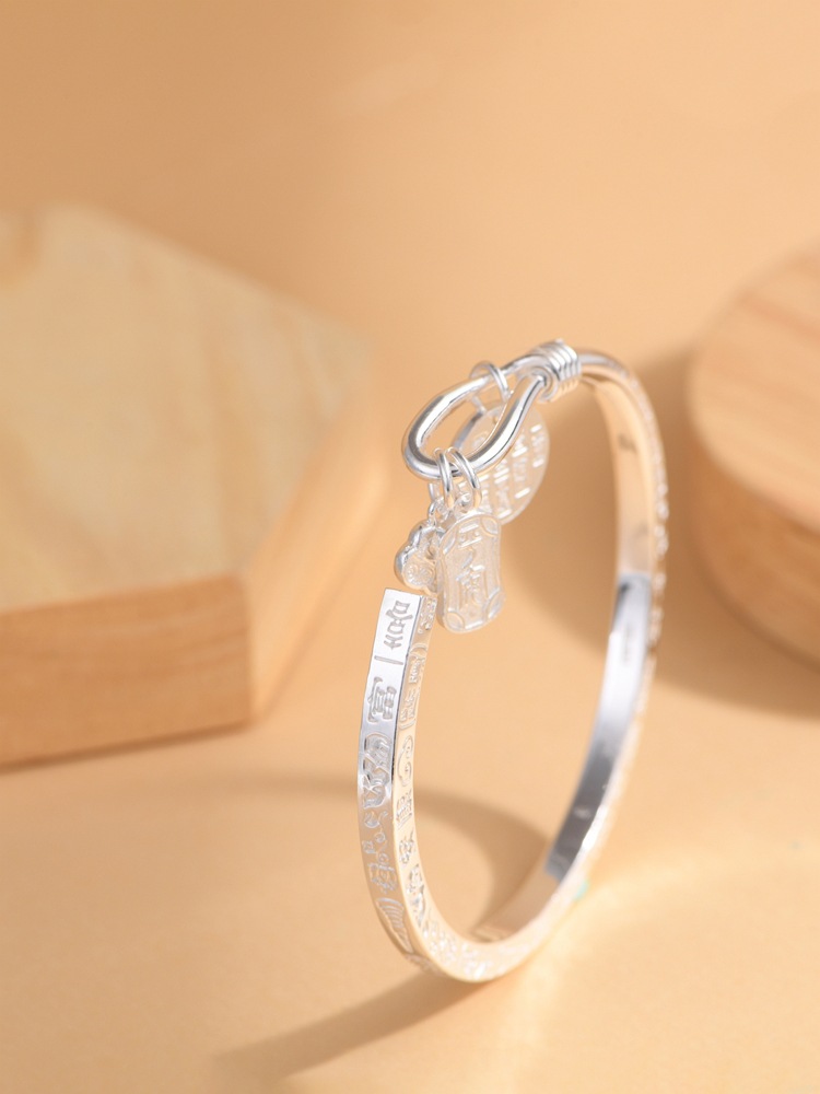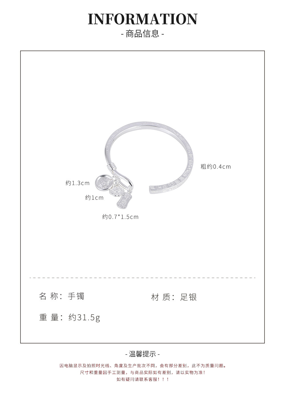 【财神如意】足银999素银黄财神如意天珠吉言福字手镯【SCH-SZ0025-1-211】