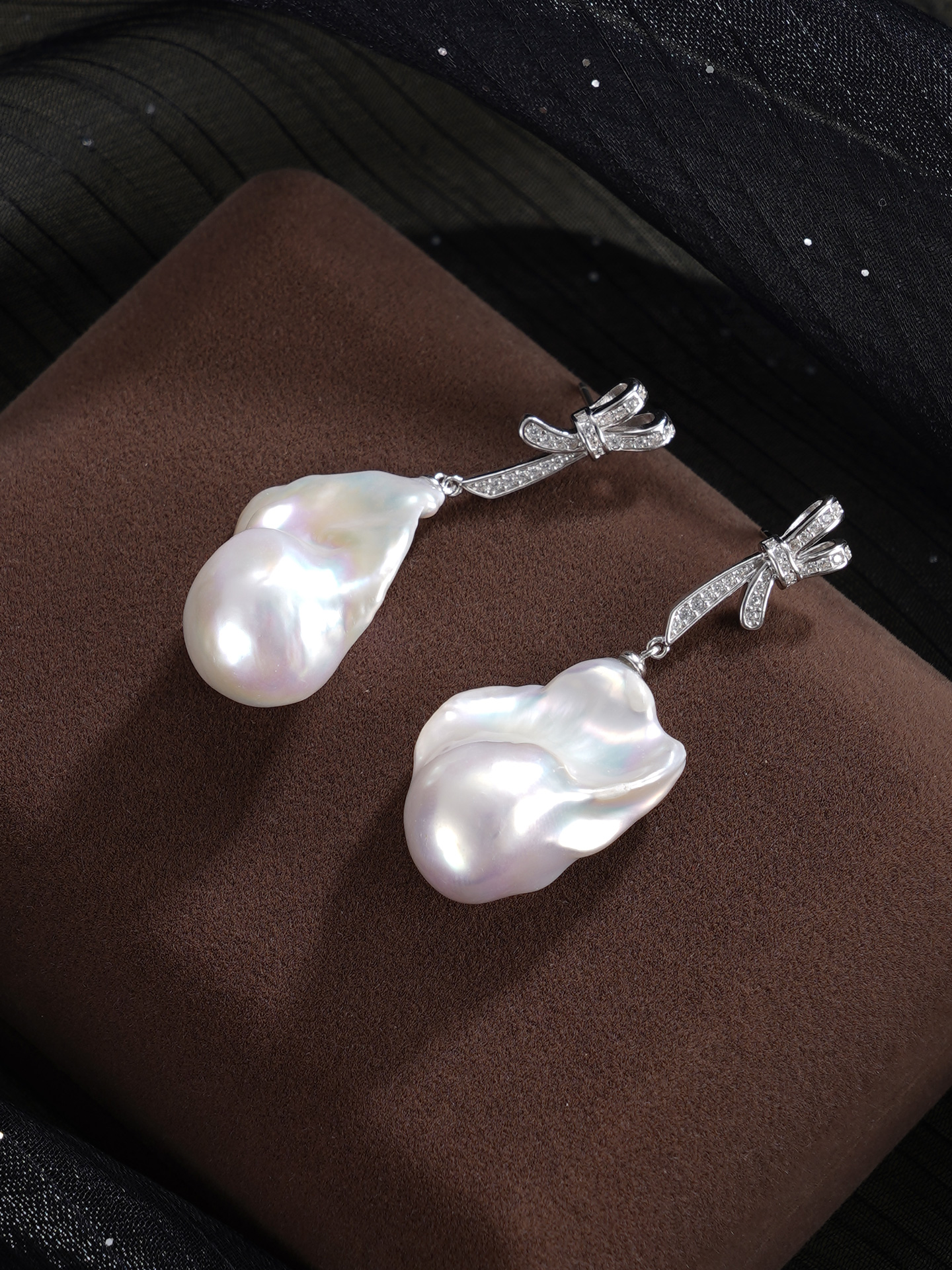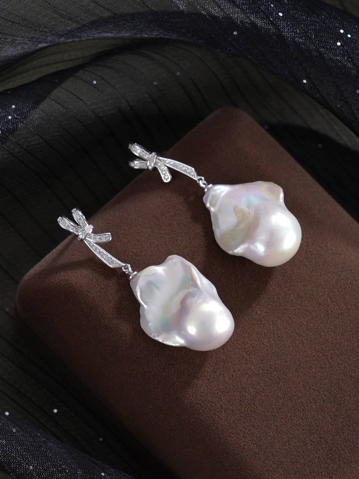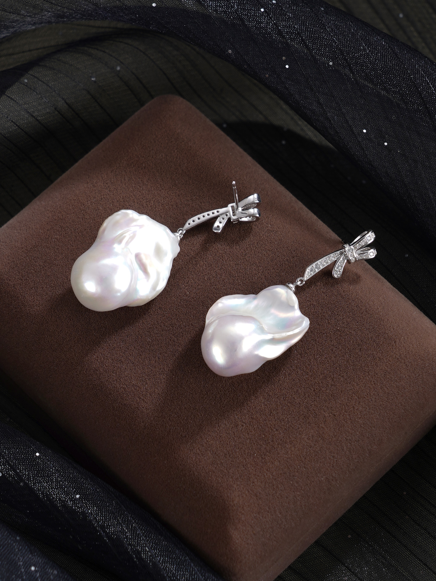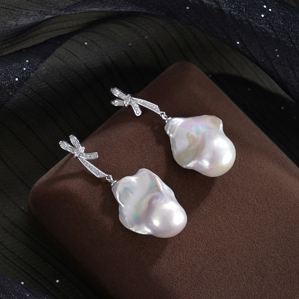 子佩集【幻梦情结】银S925珍珠惜王妃耳钉【B3780】13*25mm珠巴洛克双色蝴蝶结2601