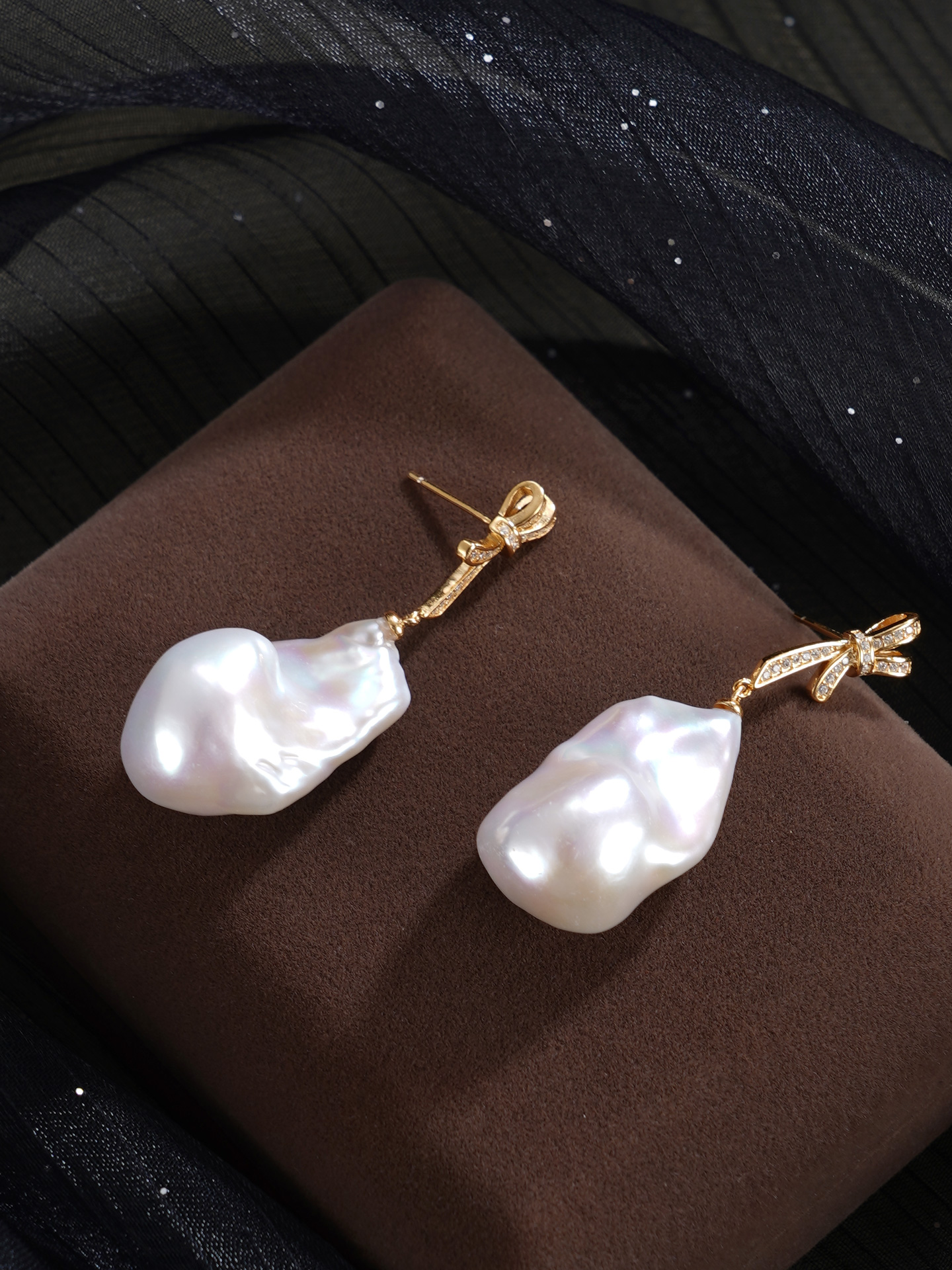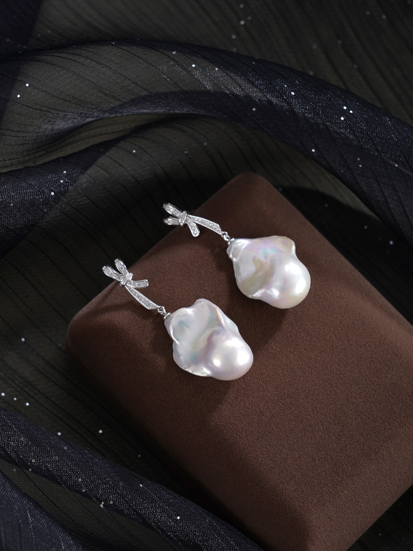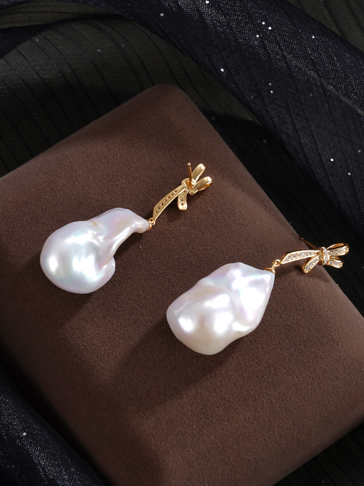子佩集【幻梦情结】银S925珍珠惜王妃耳钉【B3780】13*25mm珠巴洛克双色蝴蝶结2601