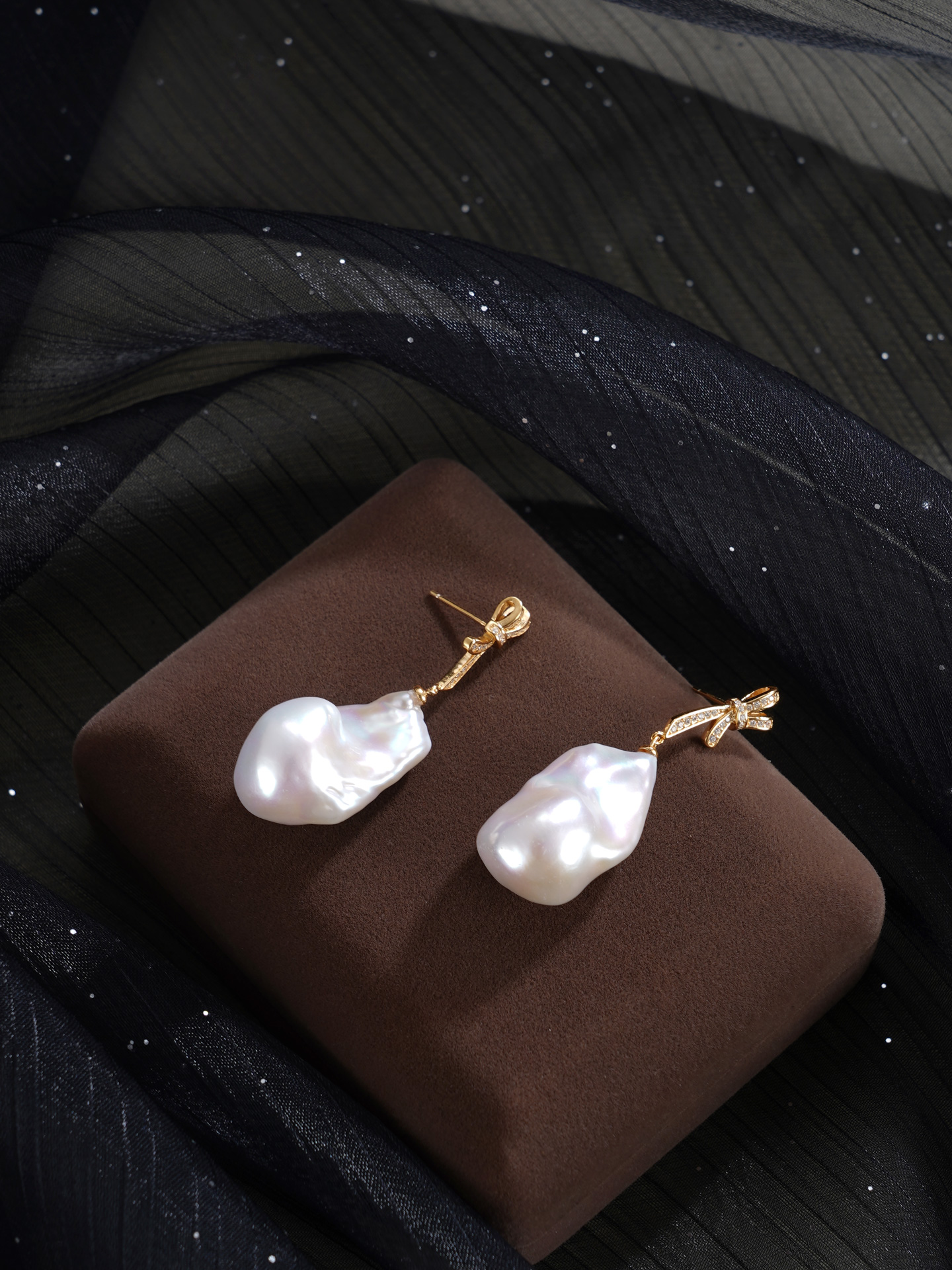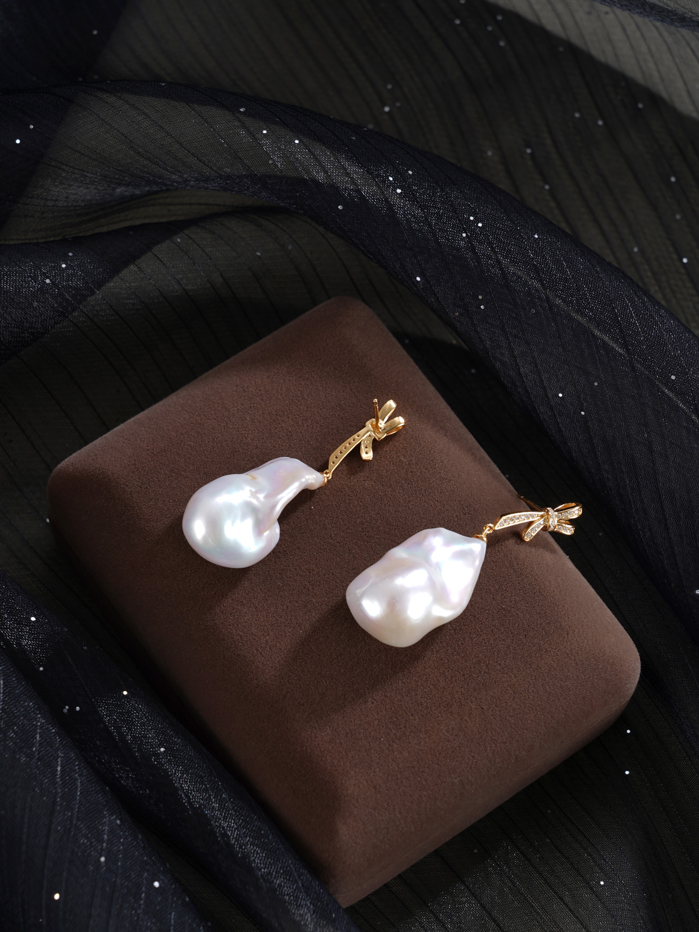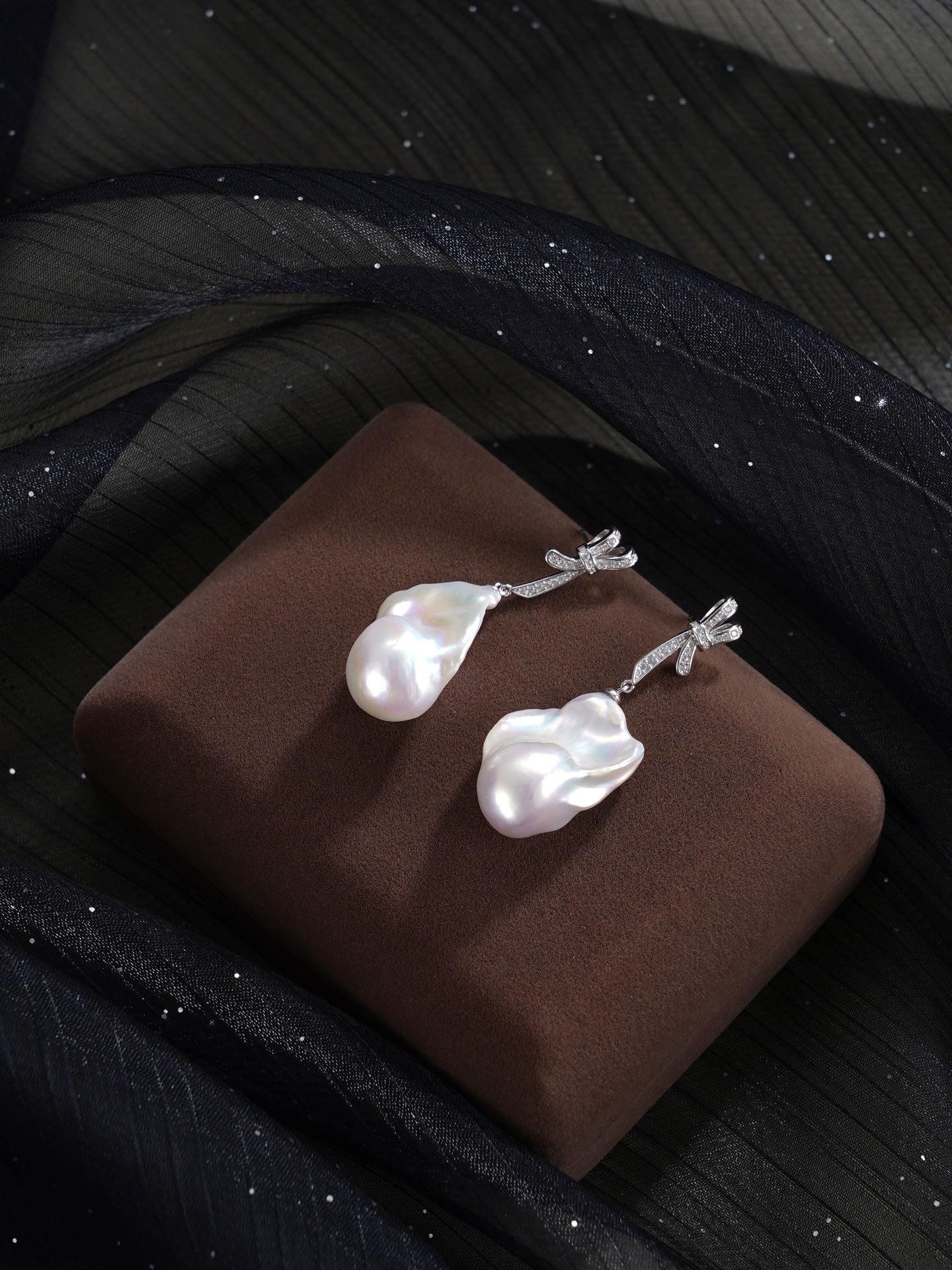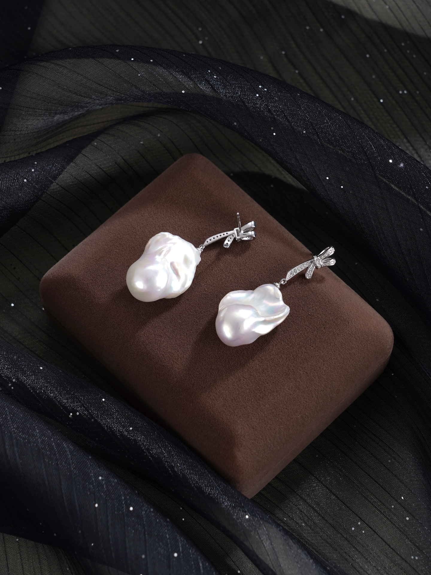 子佩集【幻梦情结】银S925珍珠惜王妃耳钉【B3780】13*25mm珠巴洛克双色蝴蝶结2601