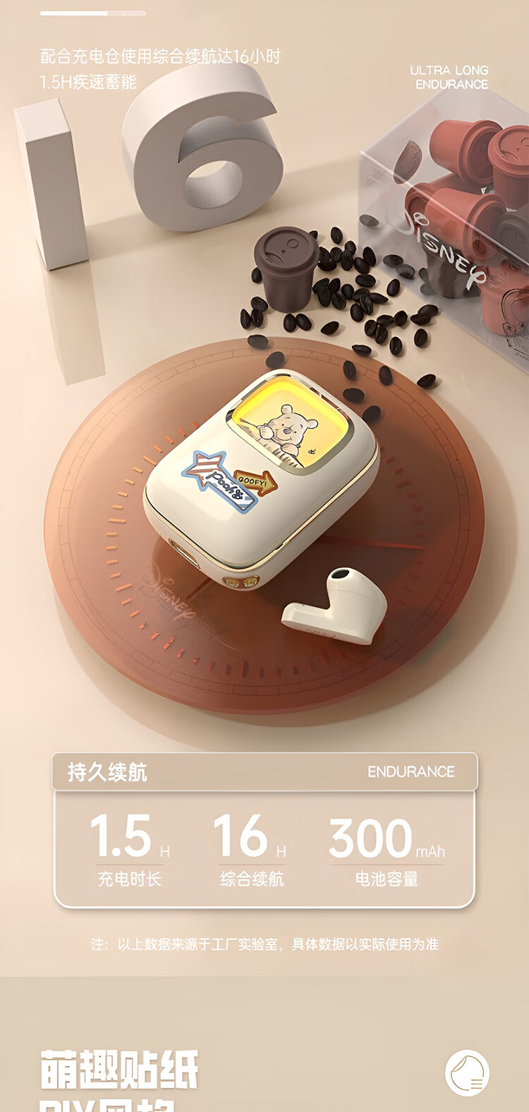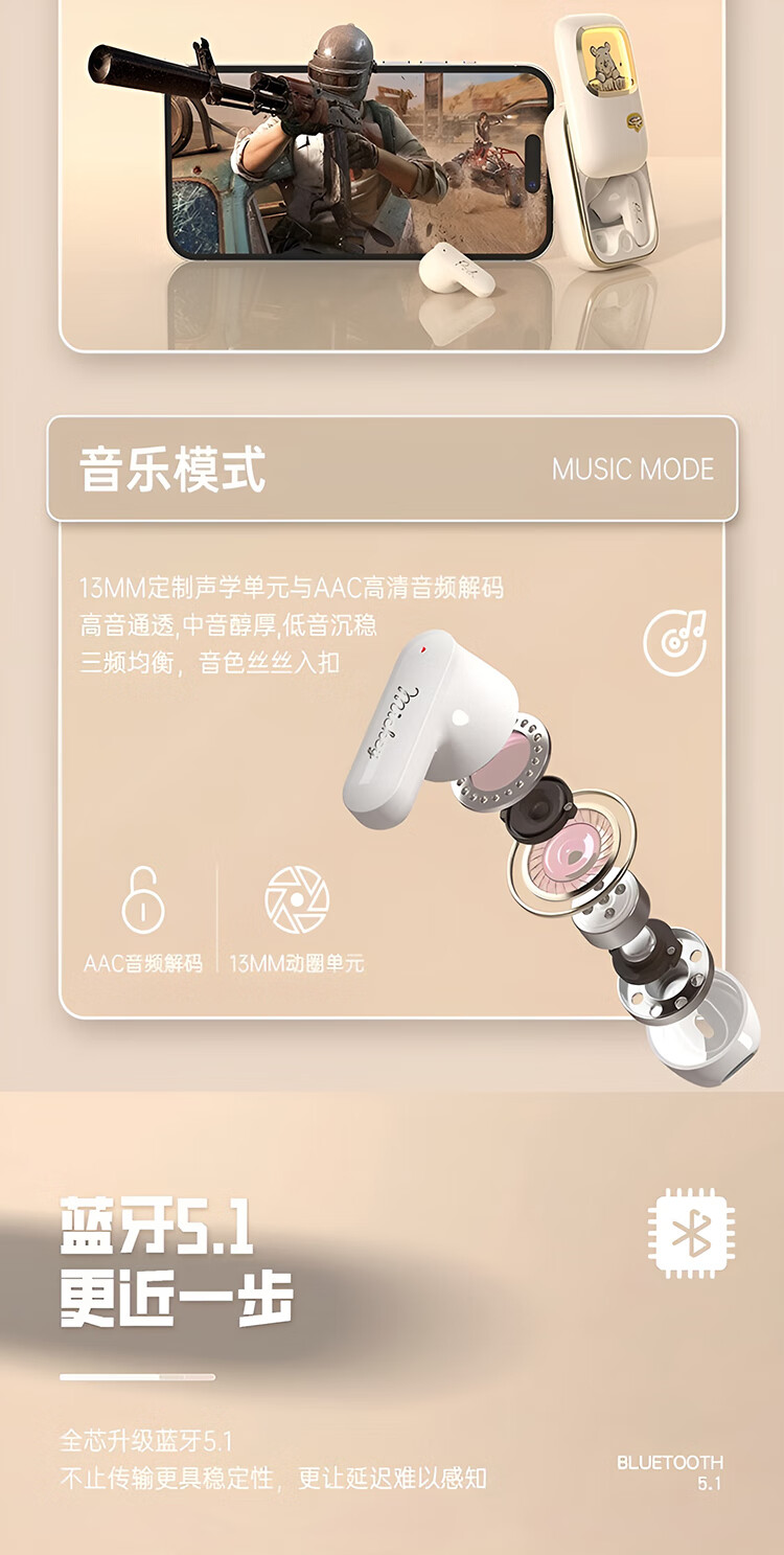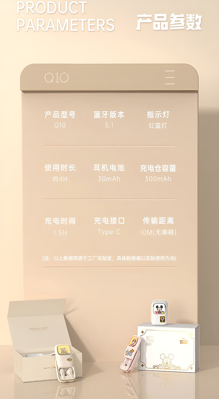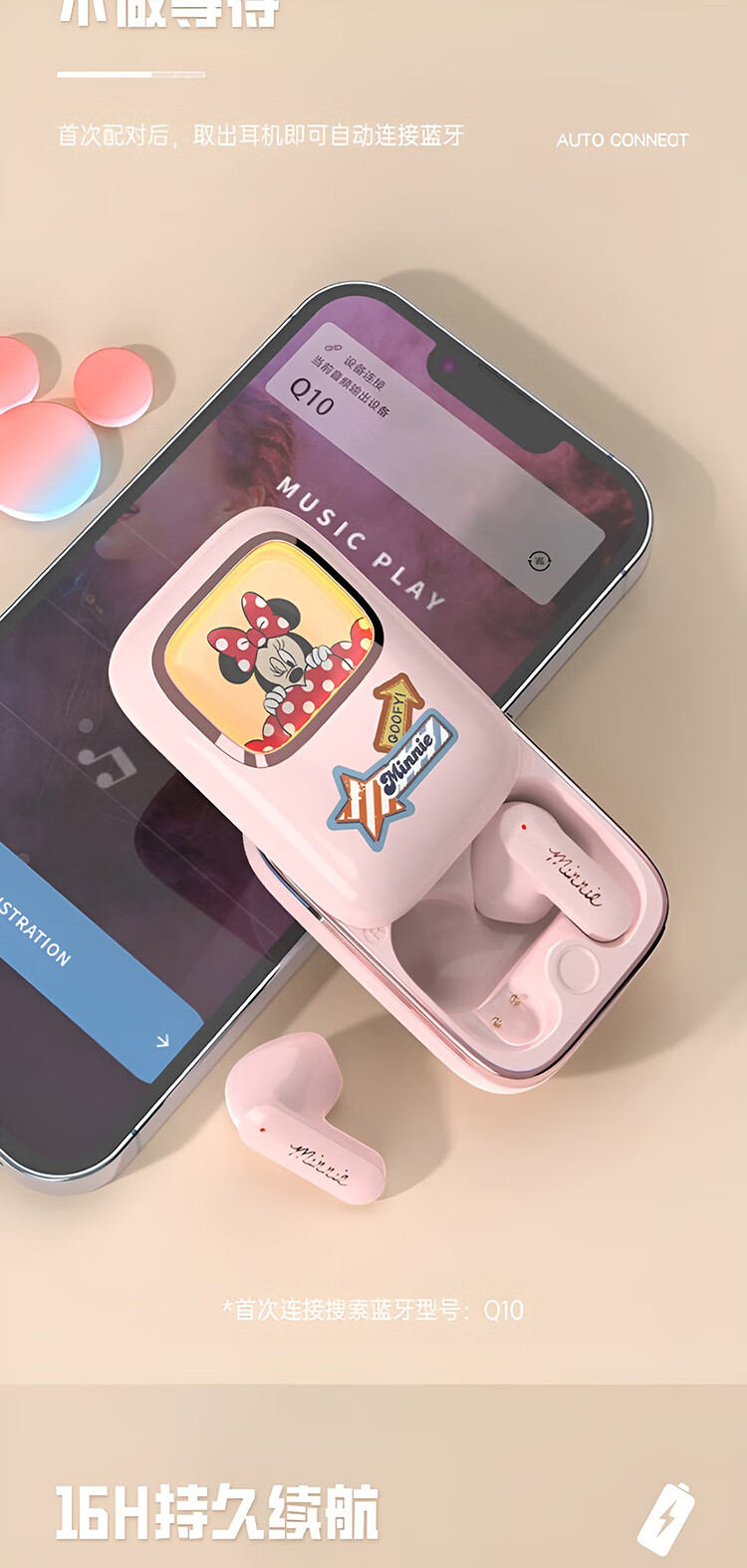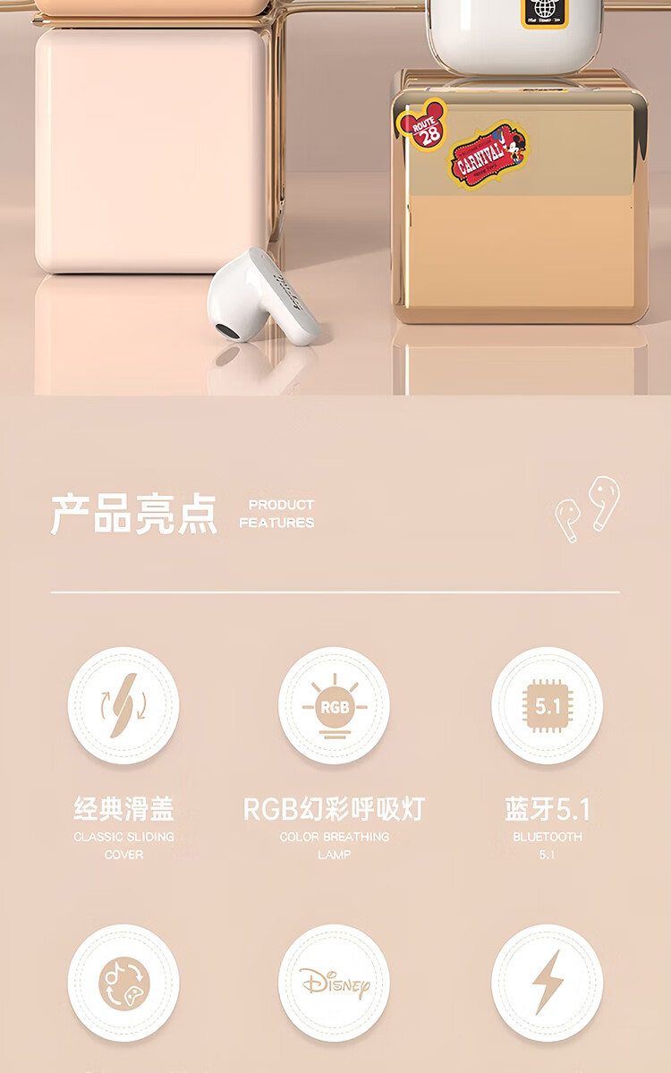迪士尼(DISNEY)无线滑盖蓝牙耳机适用于苹果华为小米 SYX