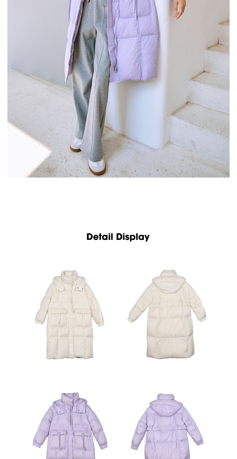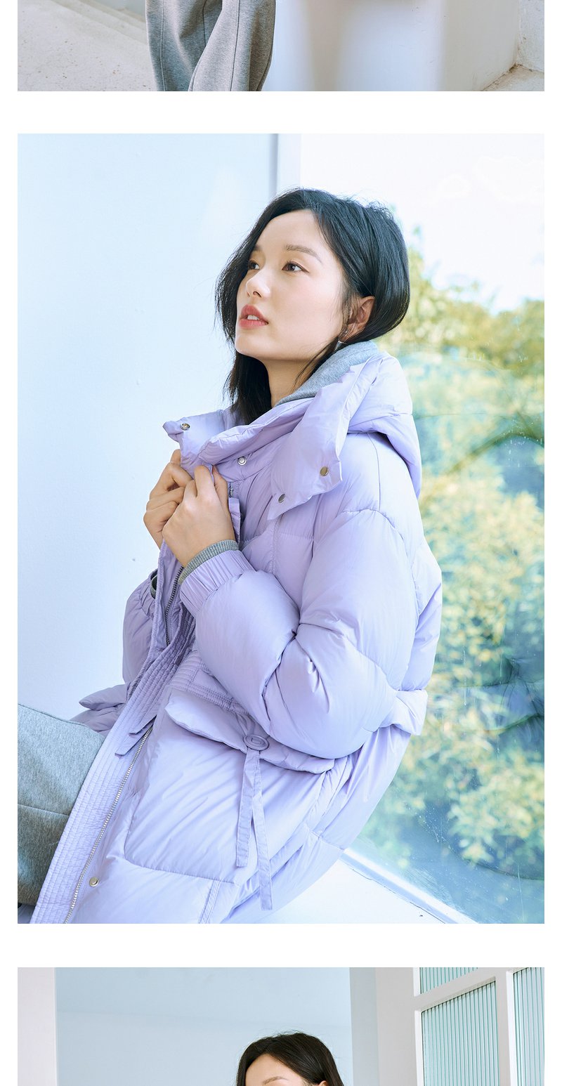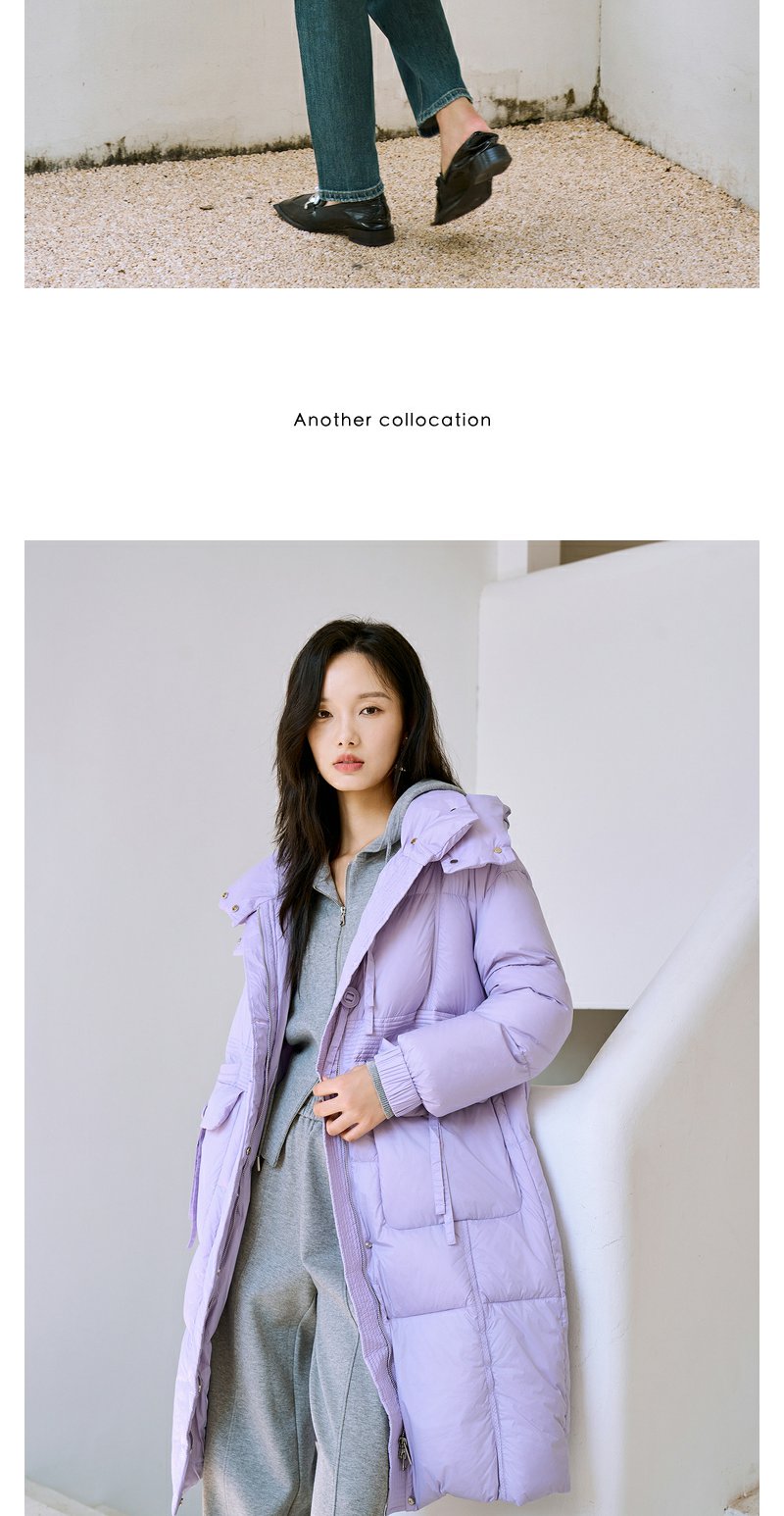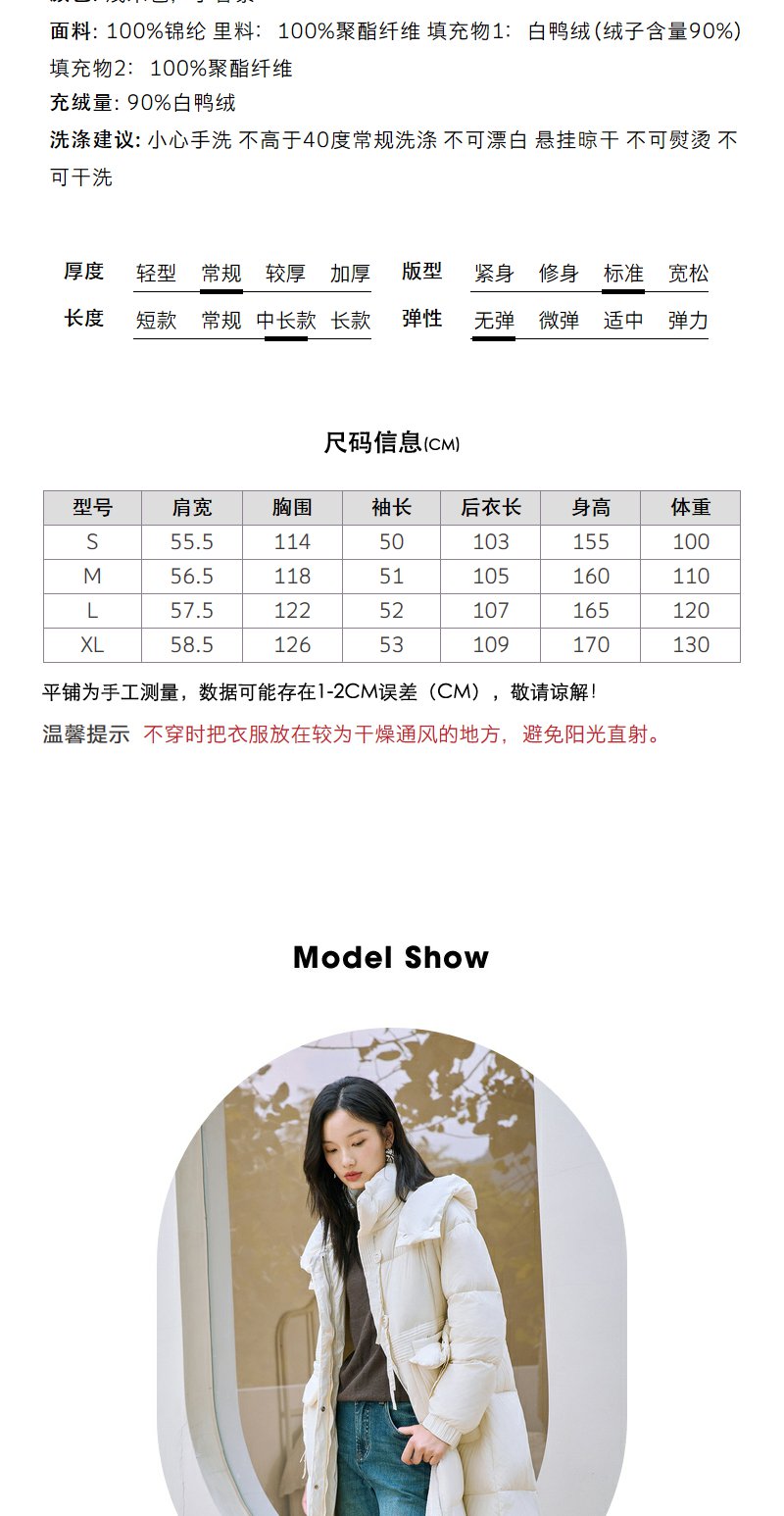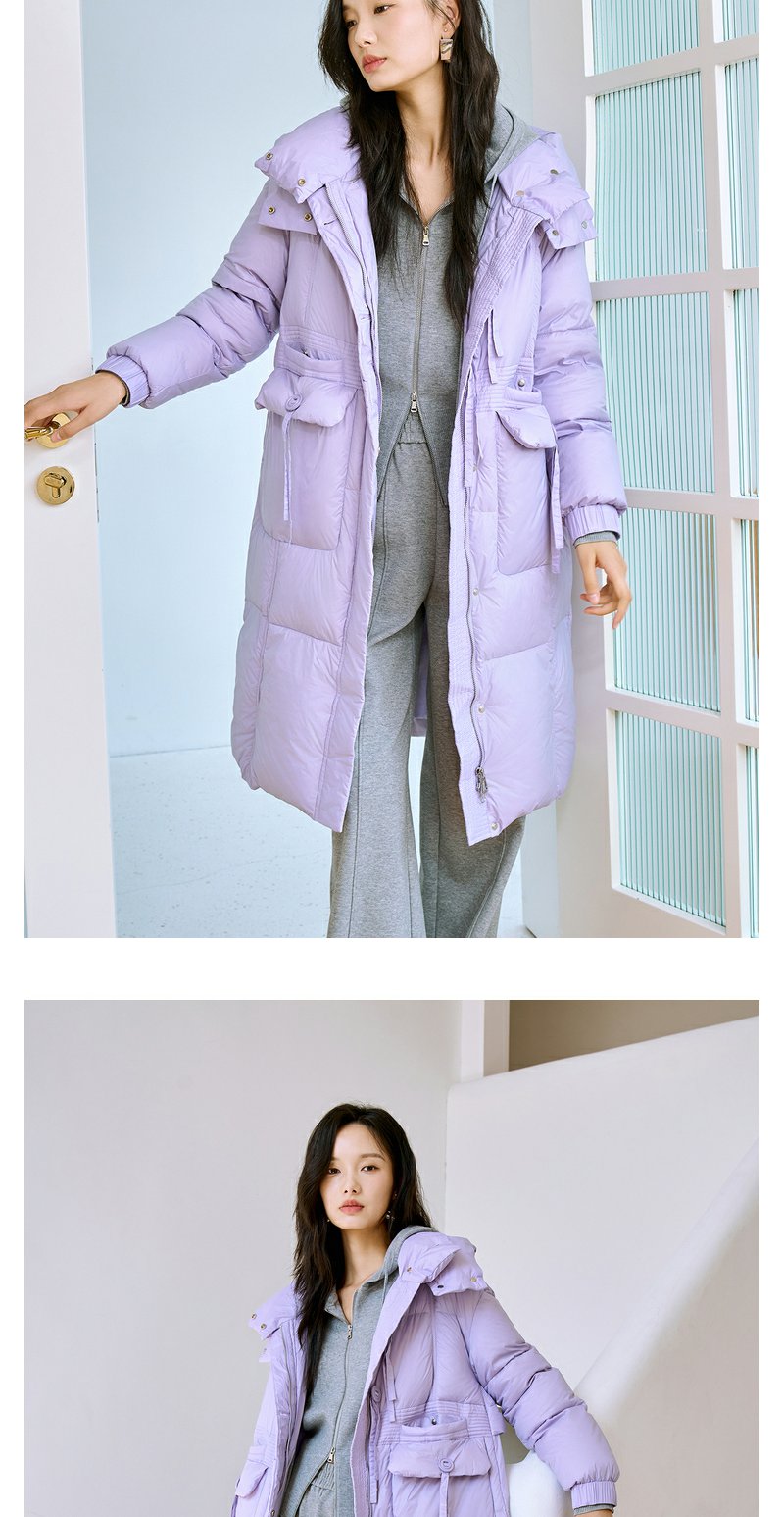NEELLY纳俪90白鸭绒中长款过膝羽绒服女冬季连帽设计感保暖面包服N23104L06605