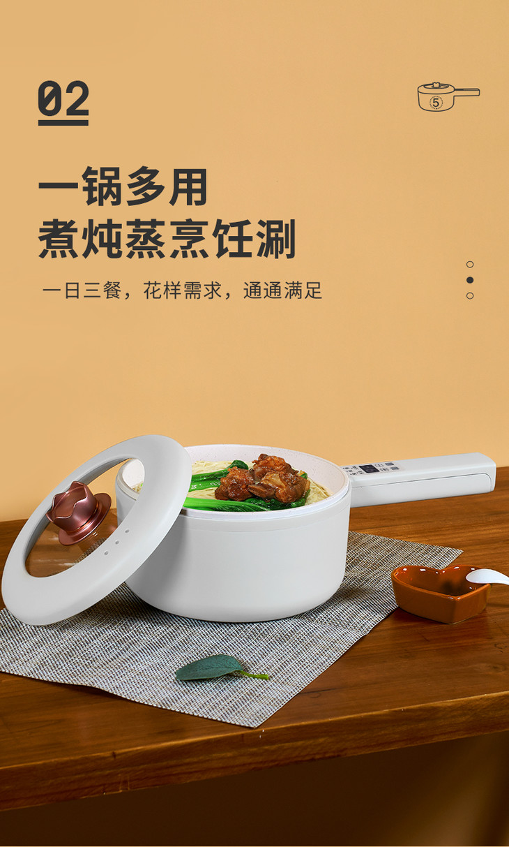 【网红爆款可预约烹煮】七彩叮当手持电子料理锅智能预约烹煮蒸炒炖煮焖涮都行不粘涂层易清洗(送木铲)