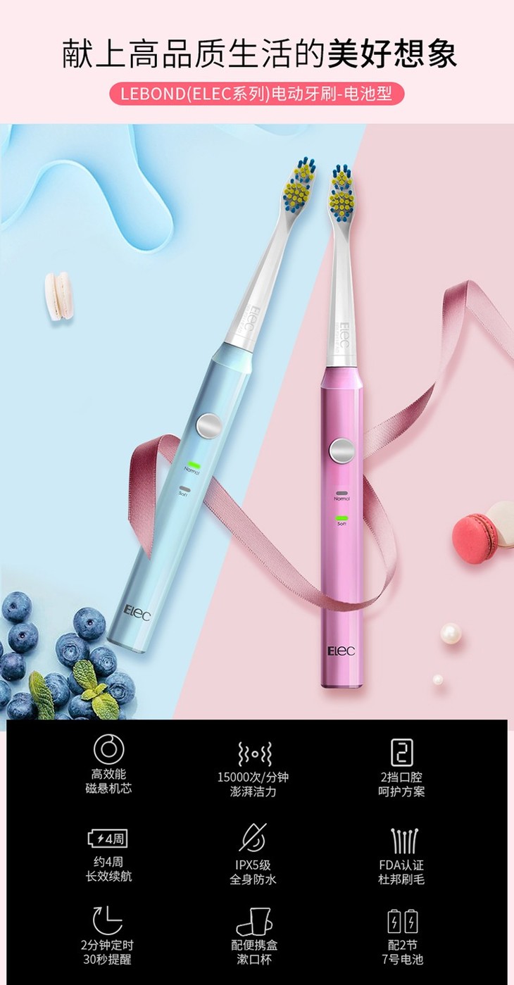 【一般贸易】力博得声波牙刷天生一对电动牙刷礼盒 粉蓝