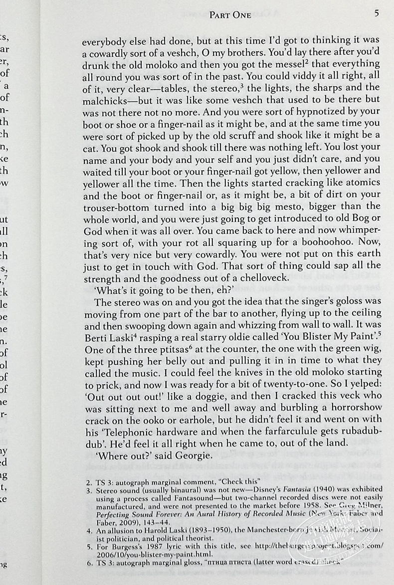 诺顿评论版《发条橙》以英国的第一版为基础,并包含伯吉斯的原始最后一章。随附马克·罗林森的序言,解释性注释和文字注释。提供了启发亚历克斯方言的俄语词汇表,以说明伯吉斯到达此小说独特风格的过程。