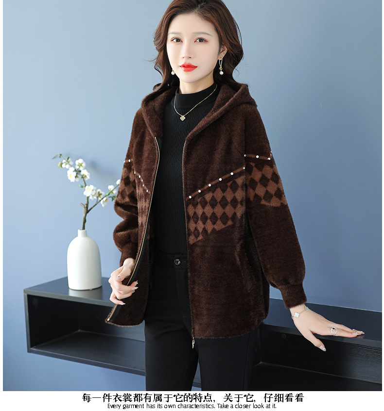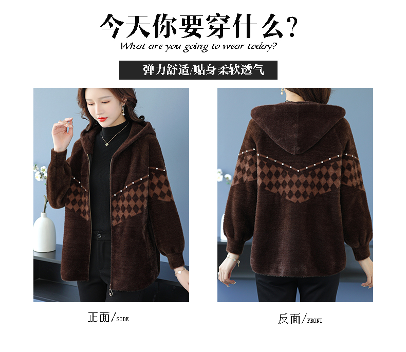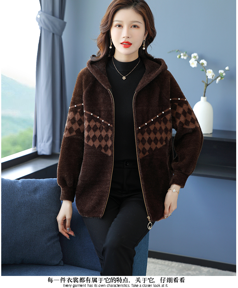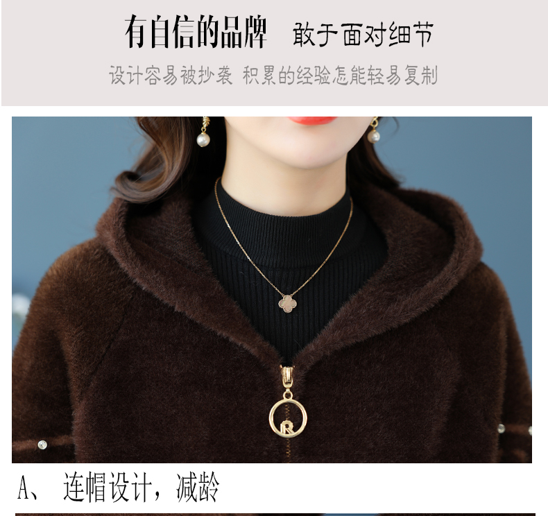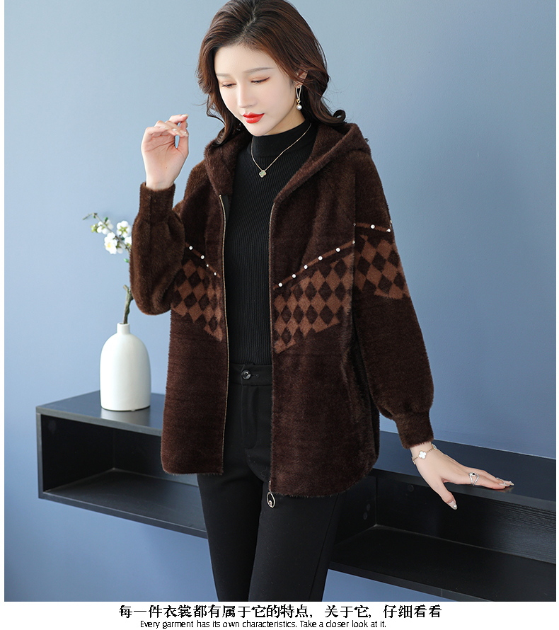 仿水貂绒连帽开衫外搭,洋气秋冬装加厚拉链外套CC-7287