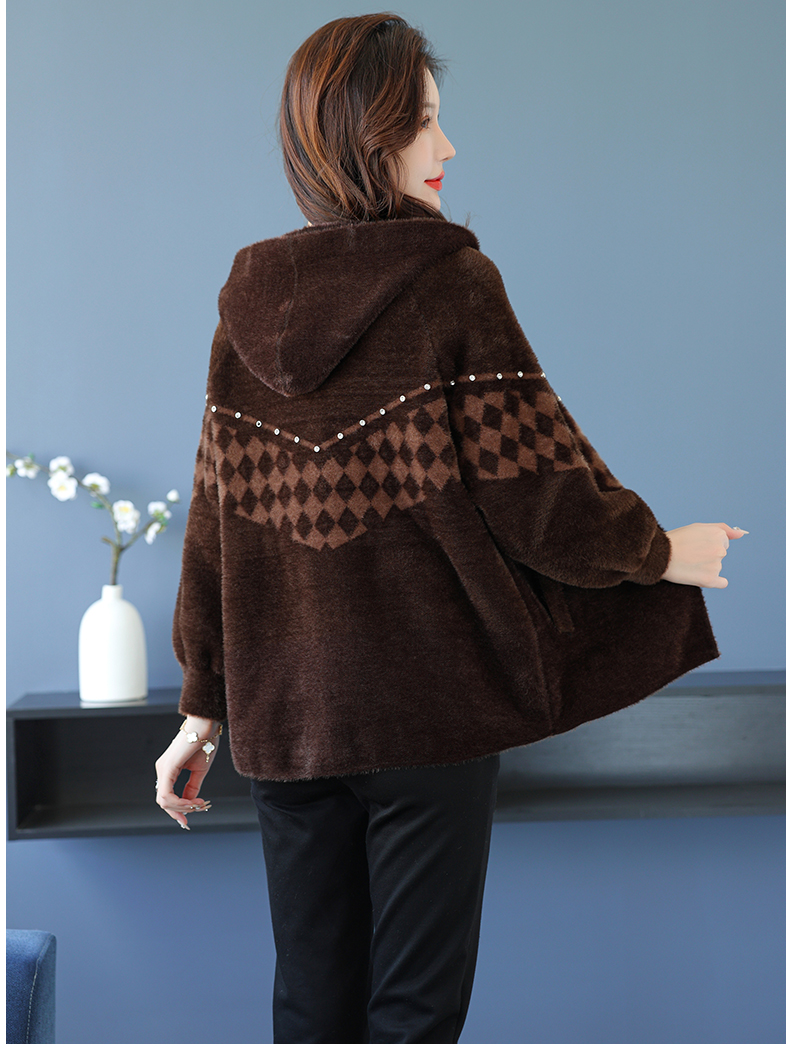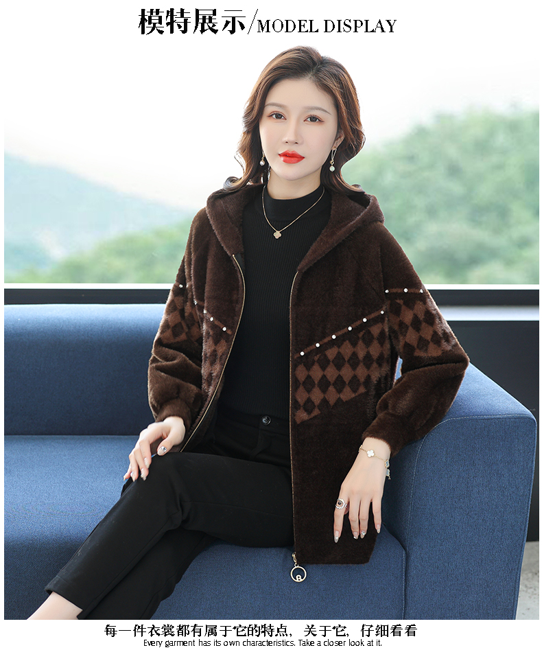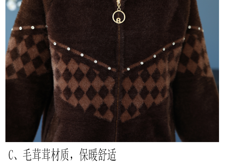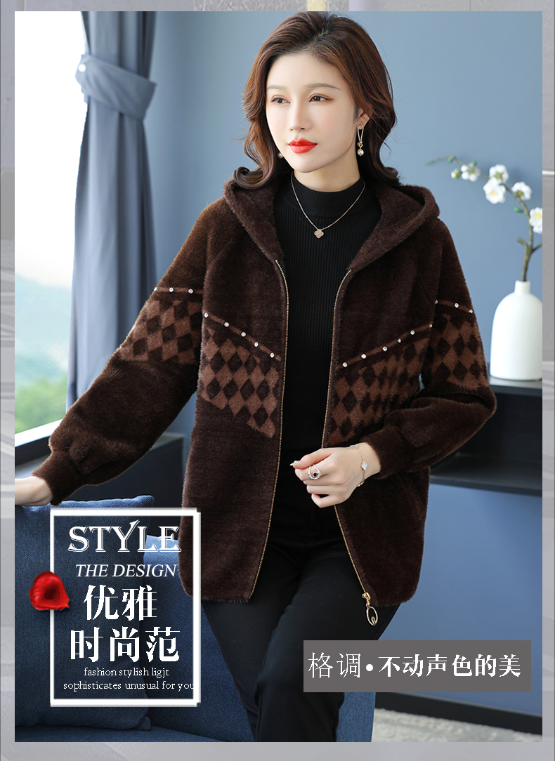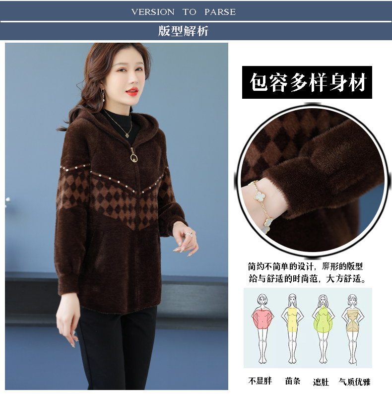 仿水貂绒连帽开衫外搭,洋气秋冬装加厚拉链外套CC-7287