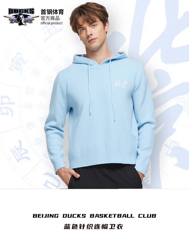 北京首钢篮球俱乐部官方商品 | 首钢蓝连帽毛衣球迷秋冬针织衫
