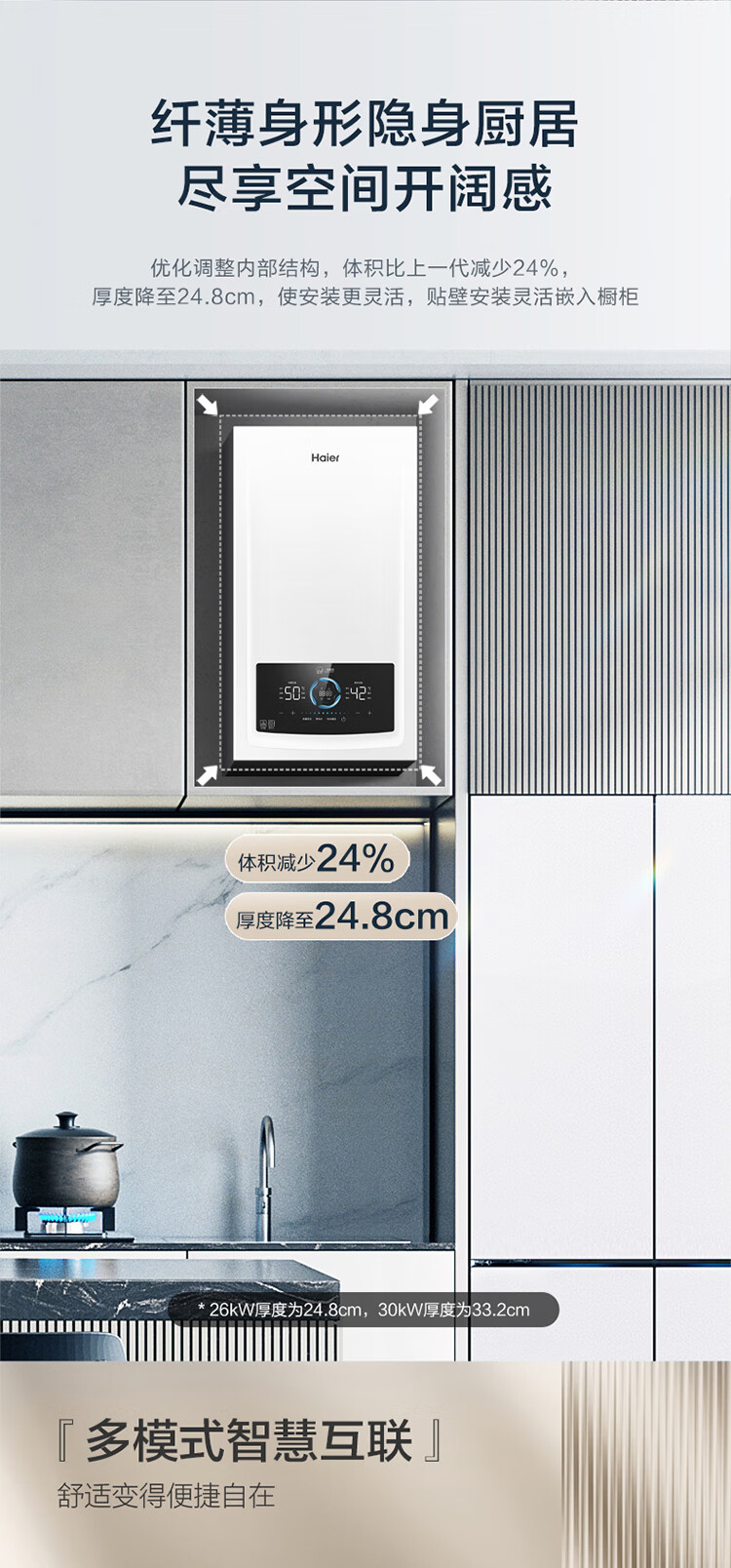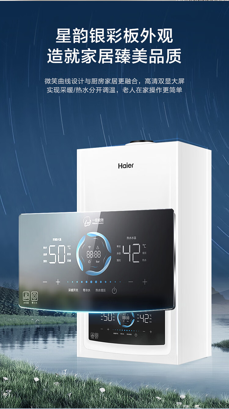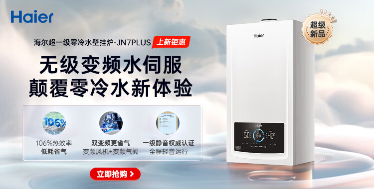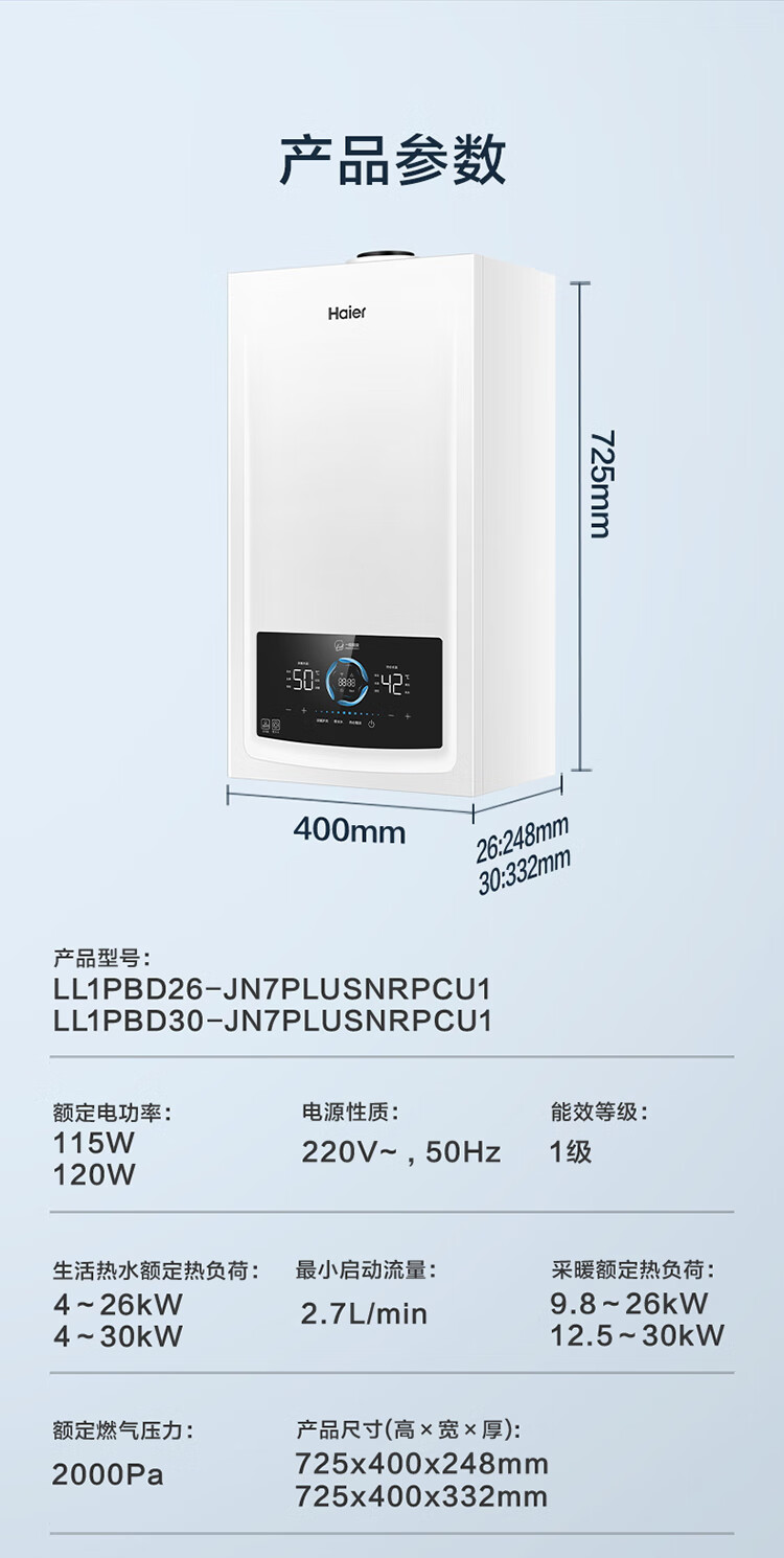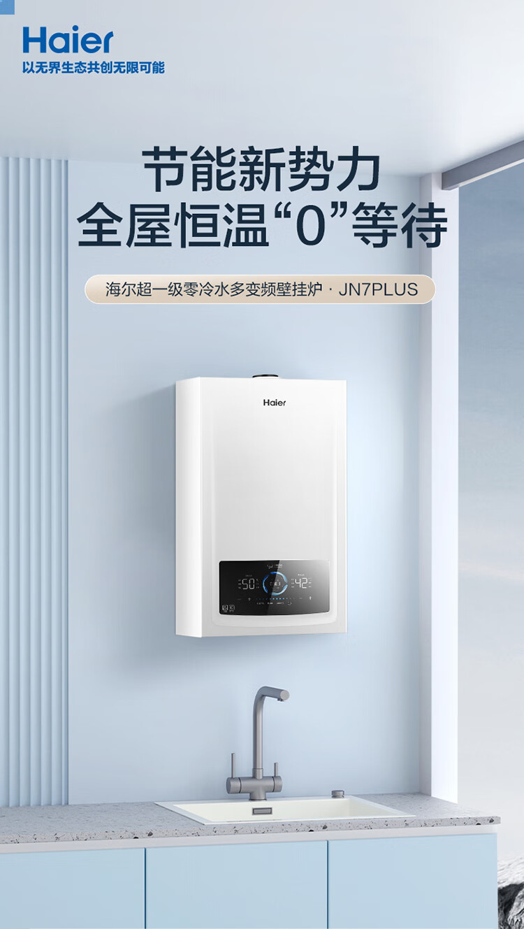 海尔(Haier)超一级能效无级双变频水伺服零冷水平衡式燃气壁挂炉天然气 LL1PBD26-JN7PLUSNRPCU1