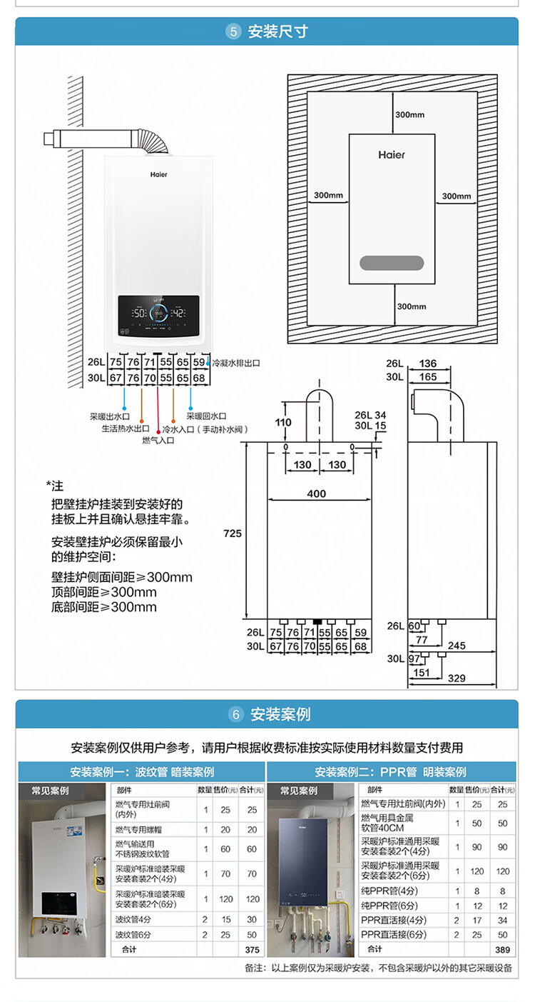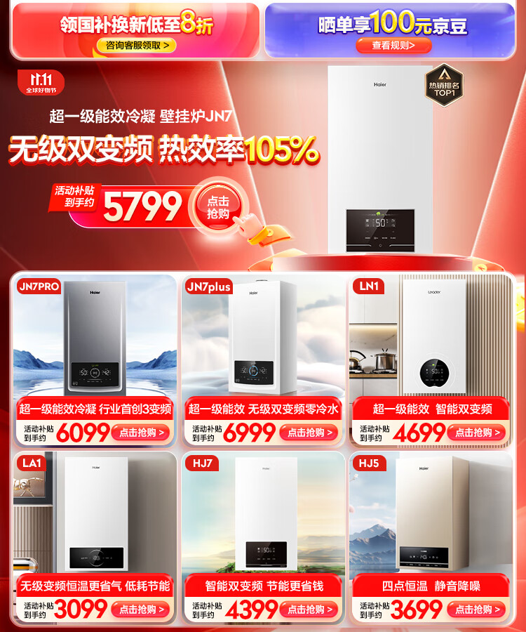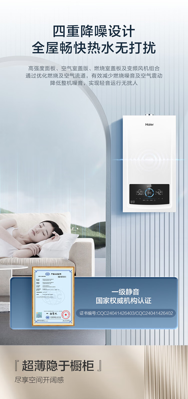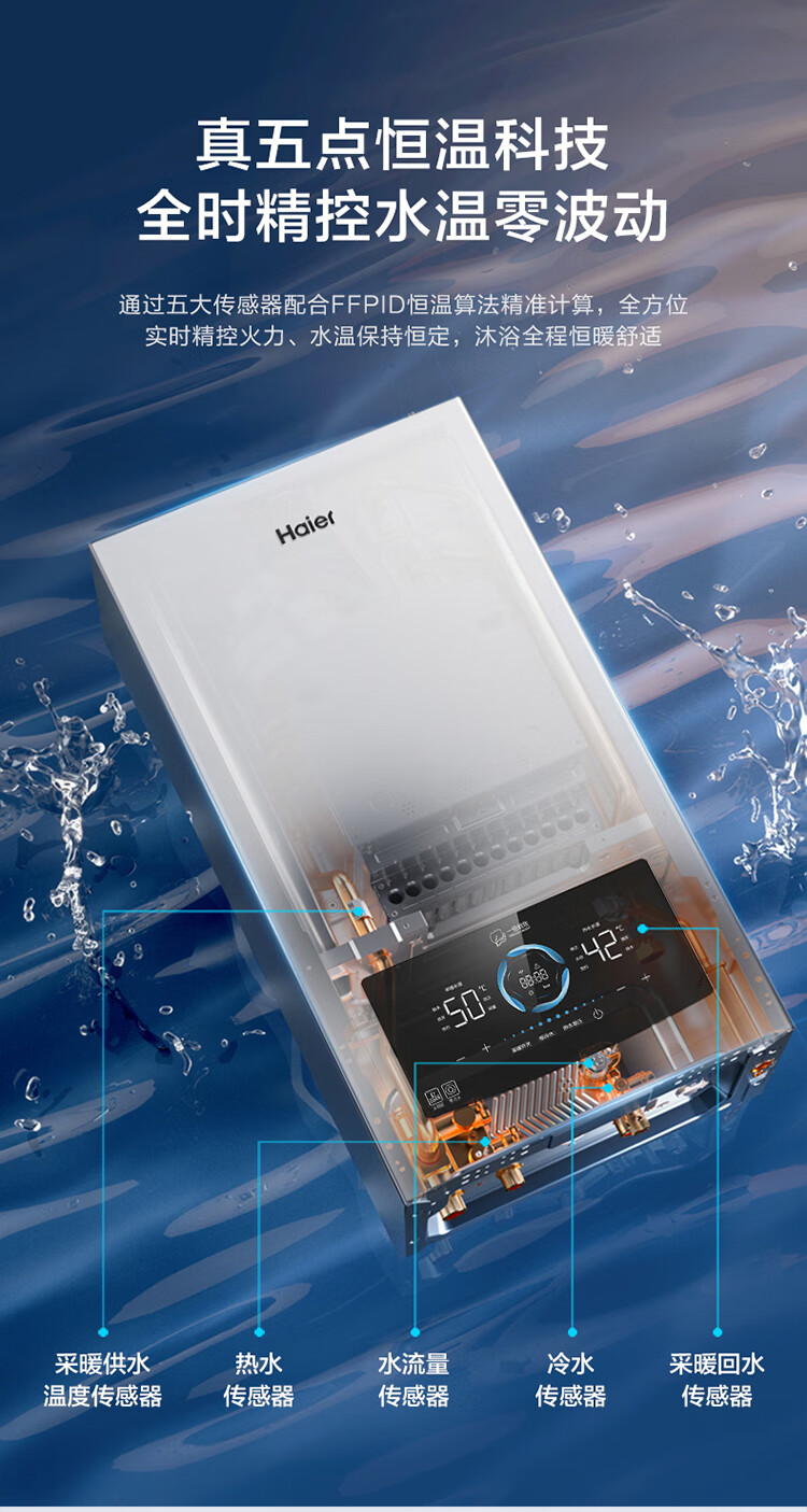 海尔(Haier)超一级能效无级双变频水伺服零冷水平衡式燃气壁挂炉天然气 LL1PBD26-JN7PLUSNRPCU1