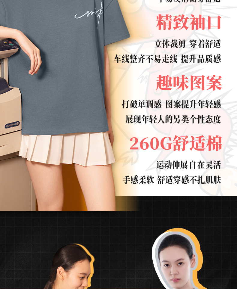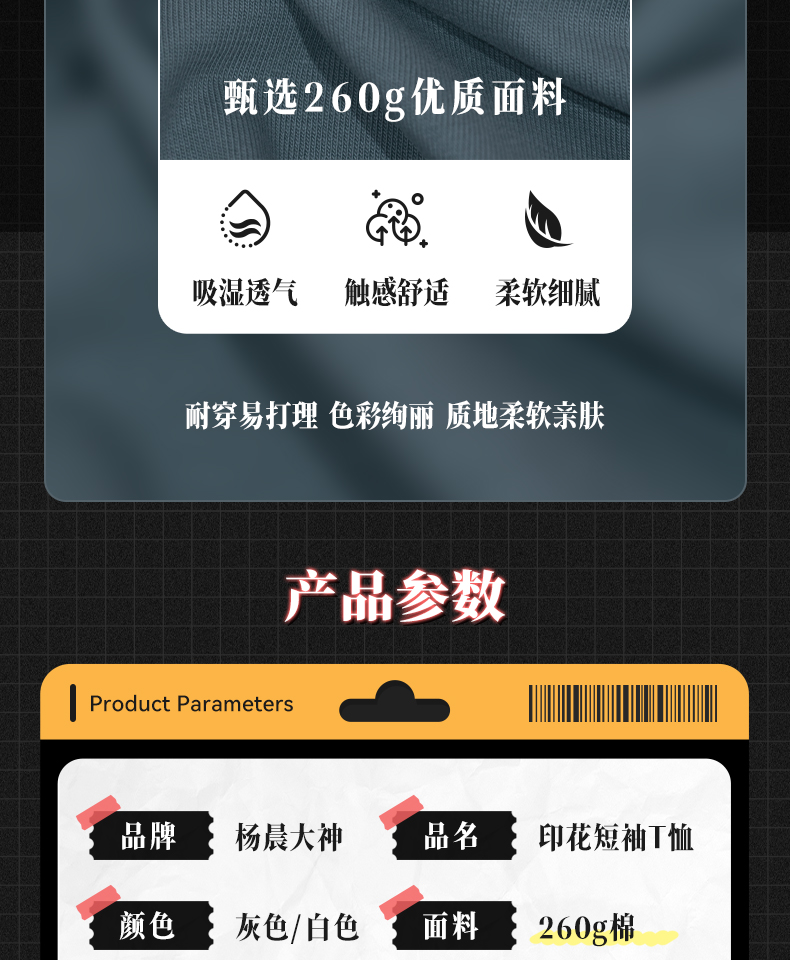 的幸杨晨大神奈斯一天260g棉质潮流印花国潮青少年文化衫