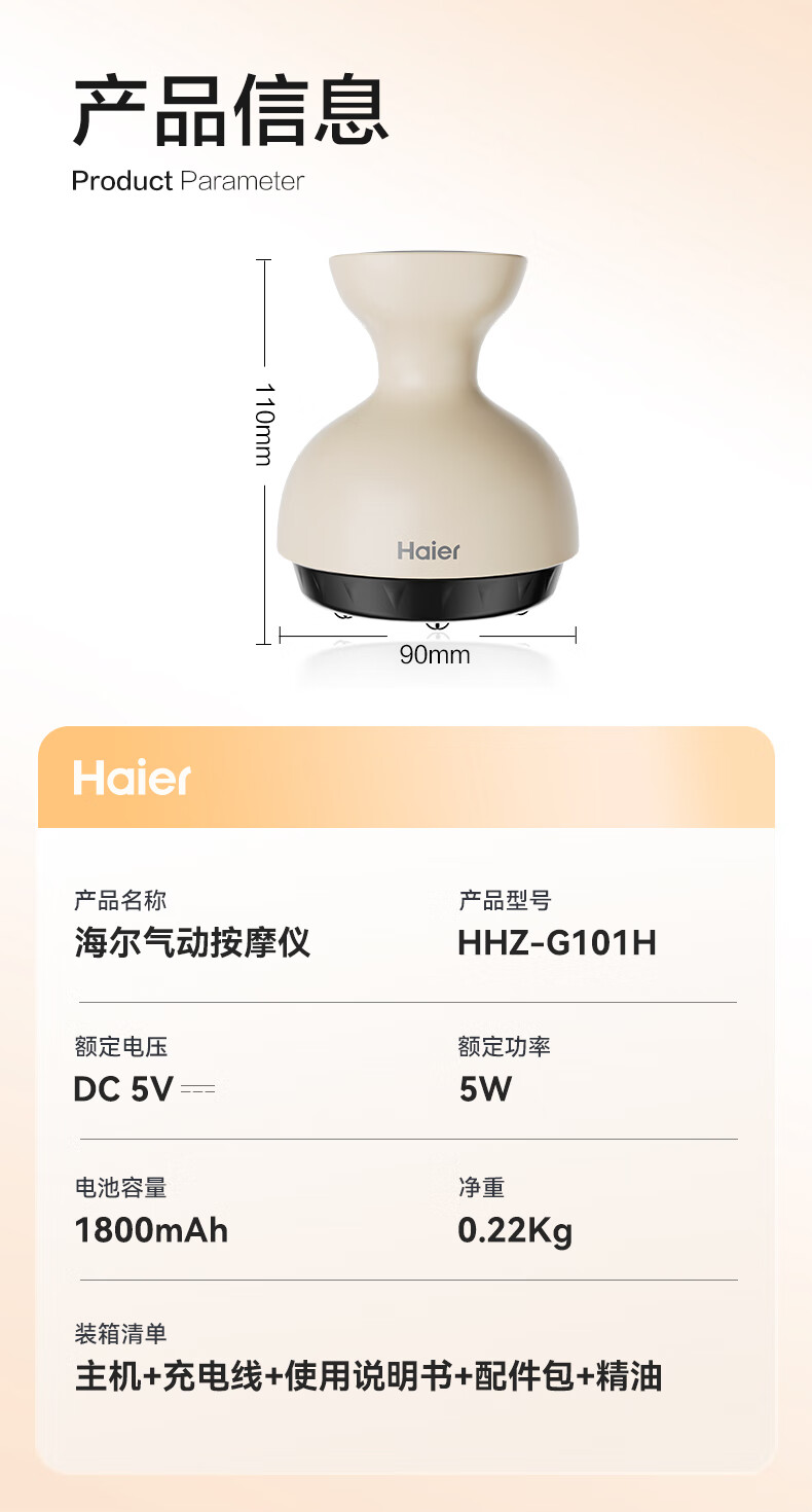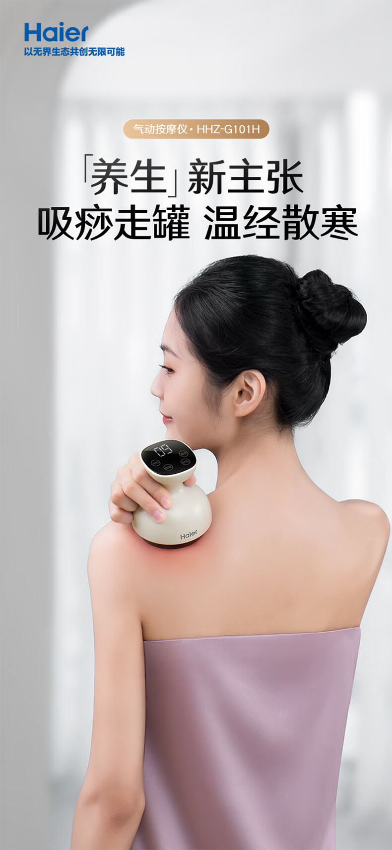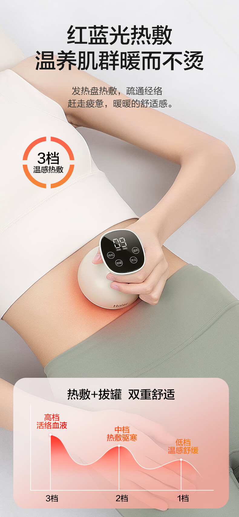 海尔(Haier)刮痧仪器电动刮痧仪拔罐器家用经络疏通板刷一体机热敷全身按摩仪节日生日礼物送男女友HHZ-G101H