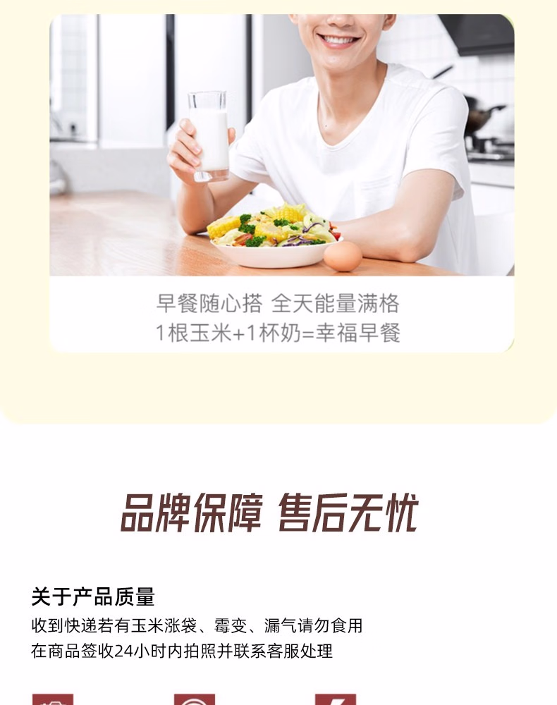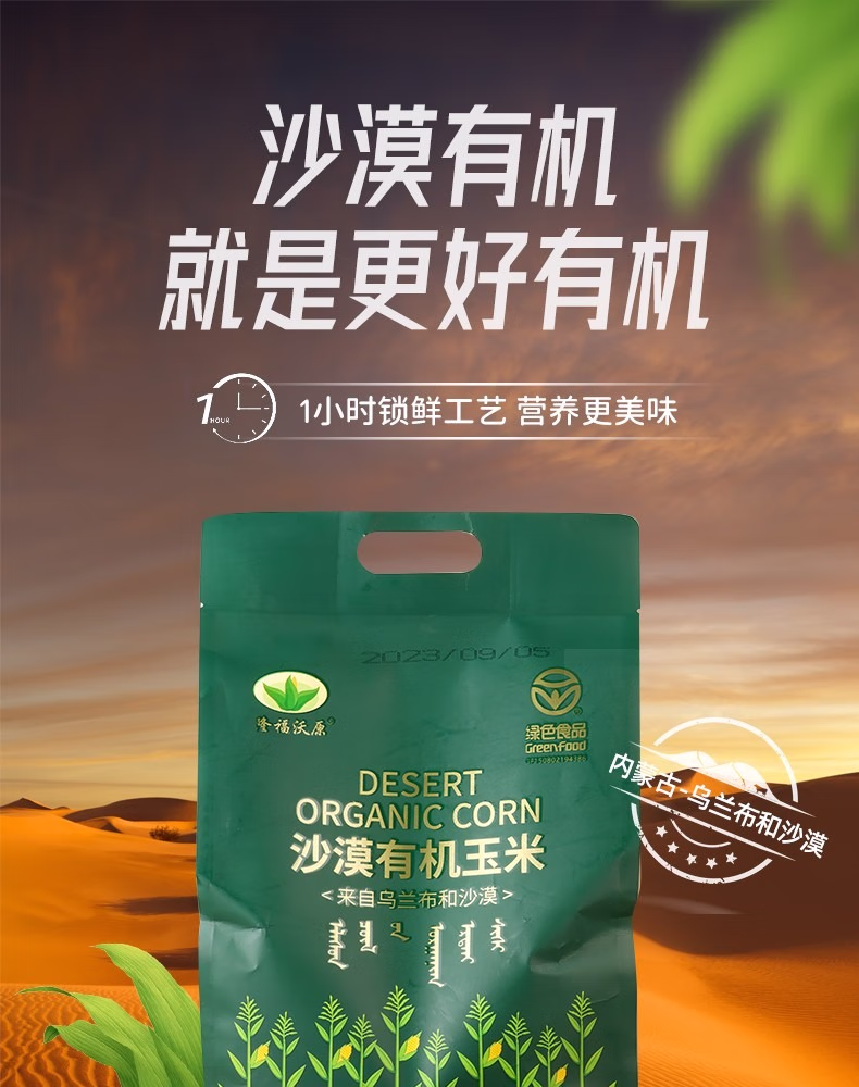 【品牌】隆福沃原 【品名】沙漠玉米 【规格】1.85KG/袋 【保质期】12个月 【发货地】内蒙古巴彦淖尔 【发货快递】极兔 【不发货区域】港澳台、新疆、西藏、青海、海南 【发货时效】48小时,周末节假日顺延 【特别说明】 1、玉米为熟制生鲜产品,不接受7天无理由退换货,一经发出不接受退货; 2、若遇涨袋或者漏气请勿食用,并在签收12小时内提供照片,联系客服按比例索赔。 3、玉米在仓库存放过程中,会有挤压变色现象,不影响食用,不接受以此理由申请售后,介意者慎拍! |